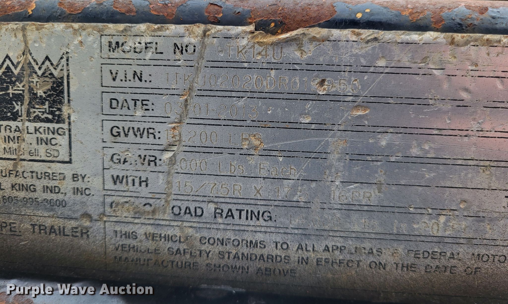 Purple Wave is selling a used Equip. Trailer in Missouri. This item is a 2013 Trail King TK14U equipment trailer with the following: VIN: 1TKU02020DR019950, Unit #: TL-146