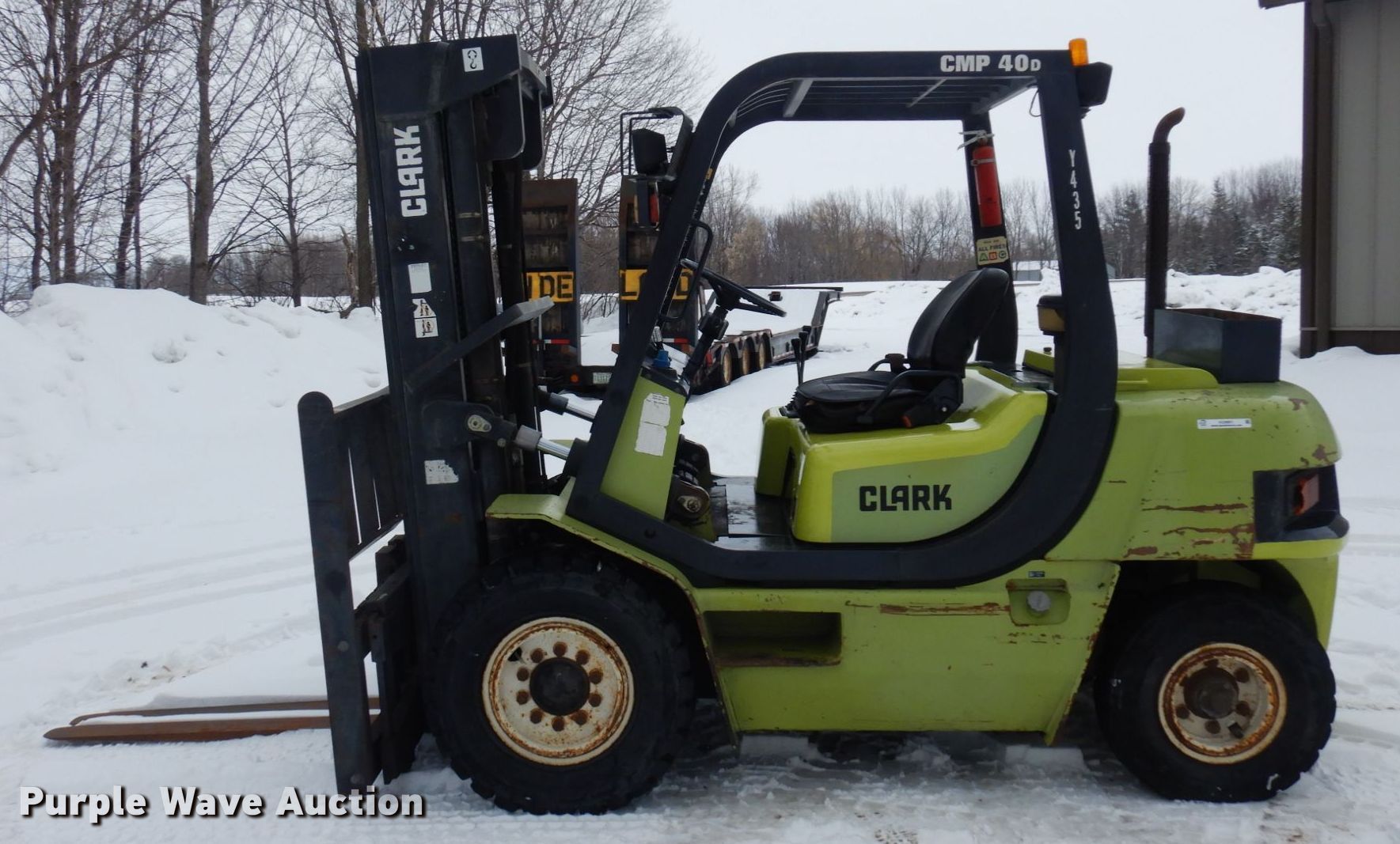 Purple Wave is selling a used Cushion Tire or Pneumatic Forklift in Minnesota. This item is a Clark CMP450D forklift with the following: Hours: 238 on meter