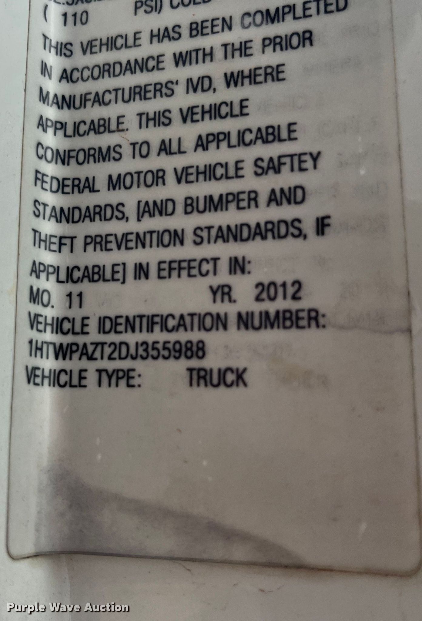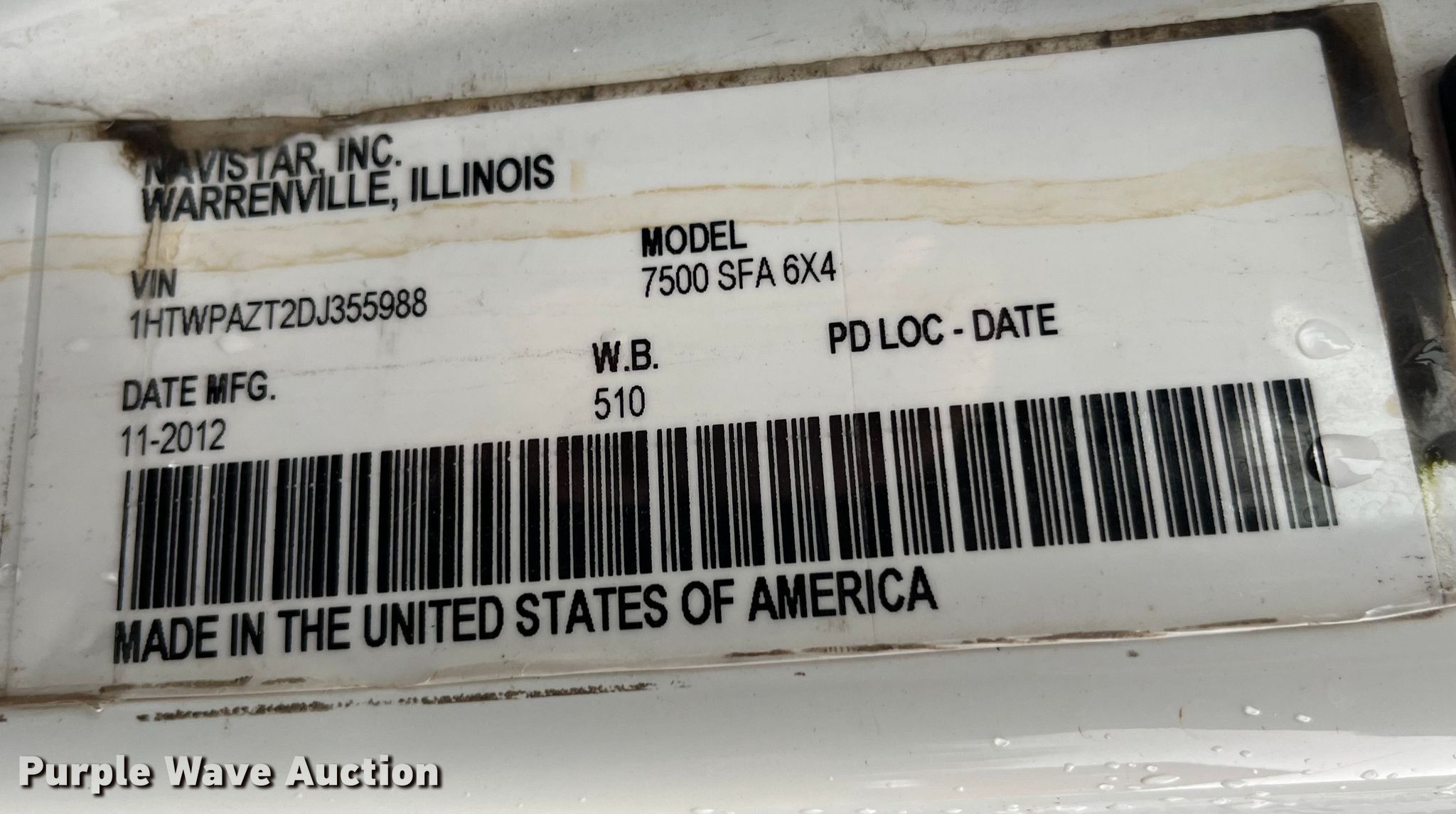 - VIN: 1HTWPAZT2DJ355988