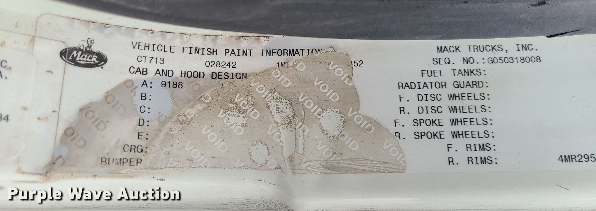 Purple Wave is selling a used Construction Dump Truck in Missouri. This item is a 2006 Mack CT713 dump truck with the following: Miles: 490,021 on odometer, Hours: 25,241 on meter, VIN: 1M2AL02C16M001352