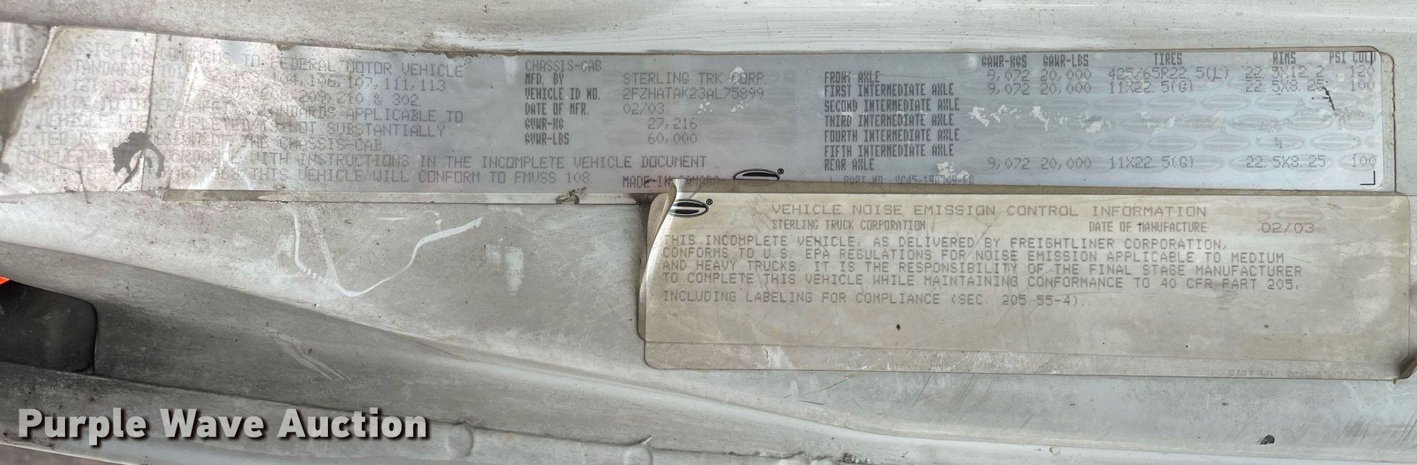 Purple Wave is selling a used Vacuum Truck in Ohio. This item is a 2003 Sterling LT7500 sewer jetter truck with the following: Miles: 384,976 on odometer, Hours: 22,076 on meter, VIN: 2FZHATAK23AL75899, Unit #: 10