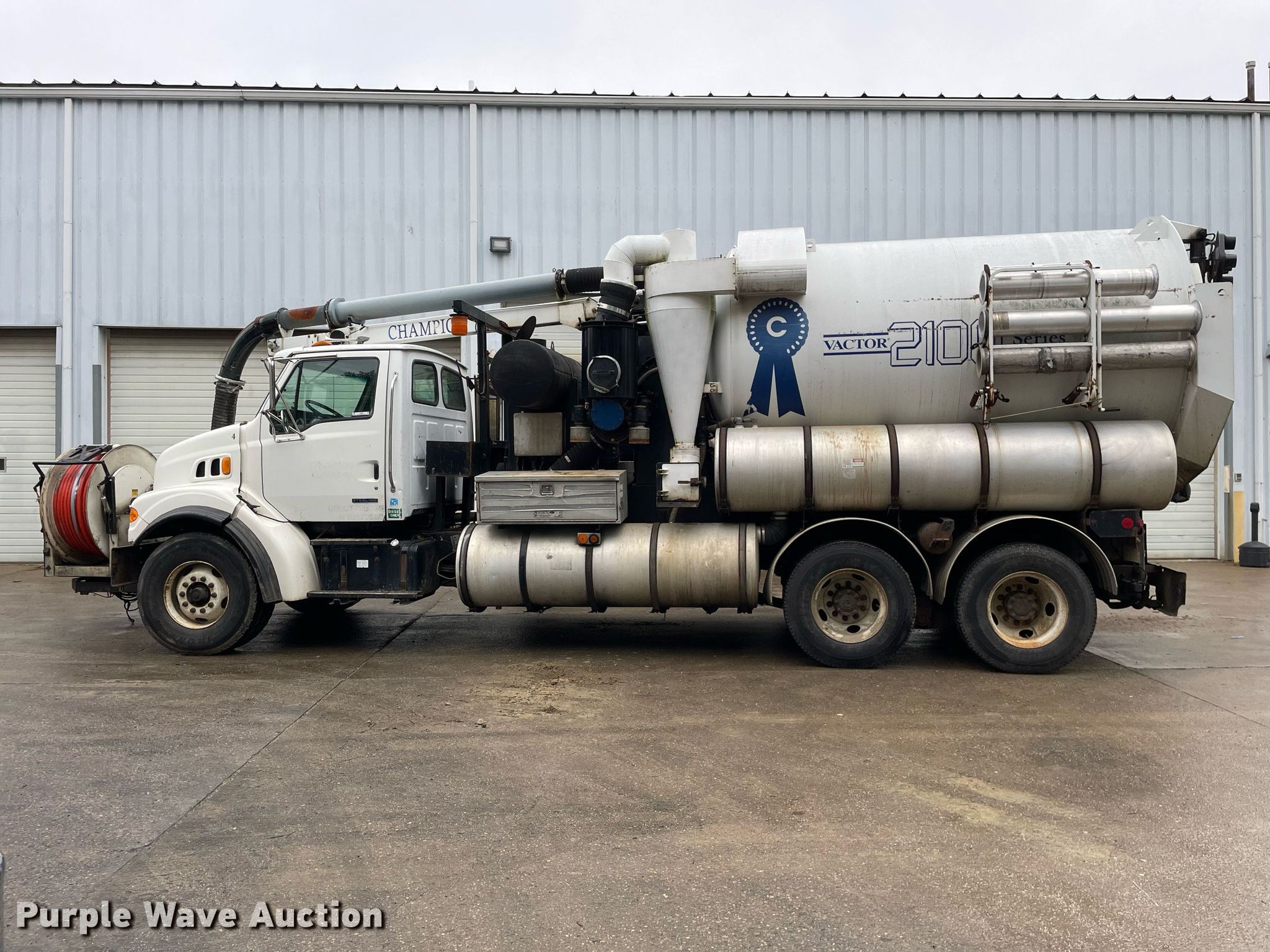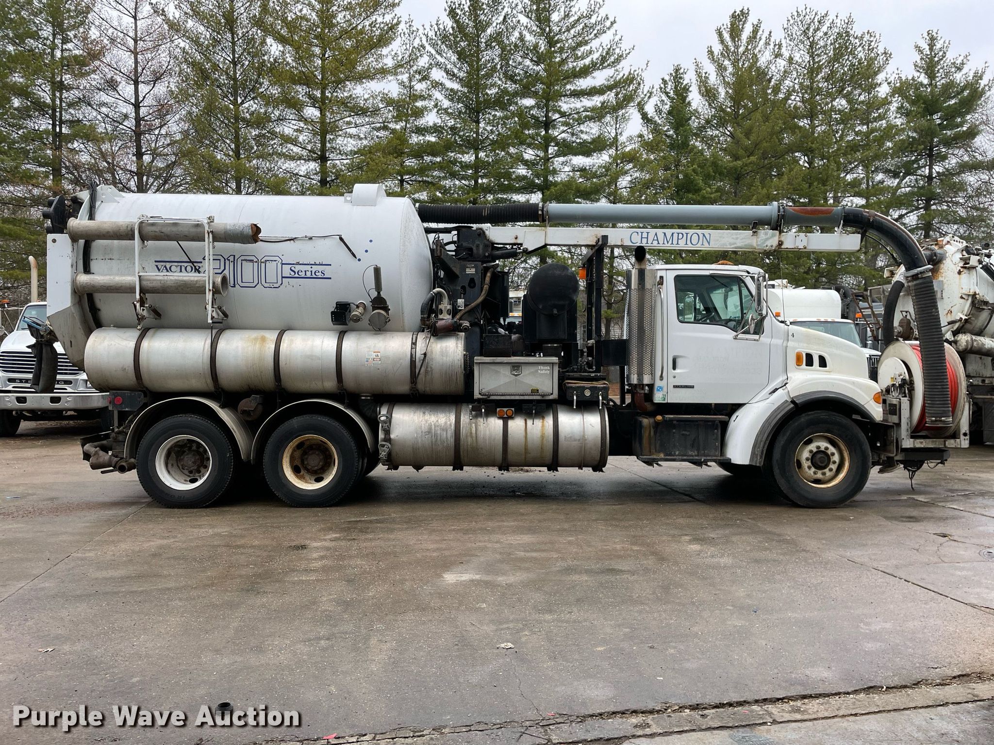 2003 Sterling LT7500 sewer jetter truck. Miles: 366,980 on odometer, Hours: 21,243 on meter, VIN: 2FZHATAK73AK40885, Unit #: 4. Engine Caterpillar 3126, Displacement: 7.2L L6, Cylinders: 6, Fuel type: Diesel. Transmission Automatic. Chassis Axles: Tandem, Suspension: Spring over walking beam, Brakes: Air, PTO, GVWR: 60,000 lbs. Interior AC, Heat, Cruise control, Auxiliary controls. Features Tank bed Vactor 2115-824-18, Serial: 03-02V-8472, Capacity: 2,000 gallons, Rear outlet: 8", Water pump Vactor, PSI: 2000, GPM: 80, Vacuum pump Roots 824 RCSV 18, Serial: 1411996420, Hose reel Front, Hydraulic, Diameter: 1", Length: 600', Telescopic boom Diameter: 8".. Tires Front: 425/65R22.5, Rear: 11R22.5. Notes Arrow board. Ohio title. Title distribution may be delayed up to 14 days from verification of funds. Champion Cleaning Specialists. 8391 Blue Ash Road. Cincinnati, OH 45236