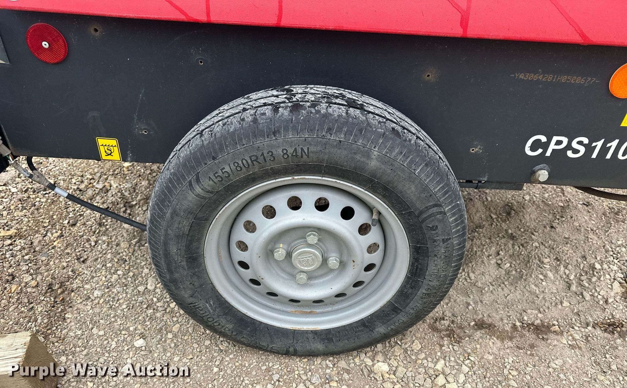 2017 Atlas Copco CPS110 air compressor. Hours: 515 on meter, Serial: YA3064281H0500677. Engine Kubota D902-EF01, Displacement: 0.898L, Cylinders: 3, Fuel type: Diesel. Trailer 8' L x 46" W, Ball hitch size: 2", Axles: Single, Tire size: 155/80R13. Reece Construction. 1240 West North Street. Salina, KS 67401