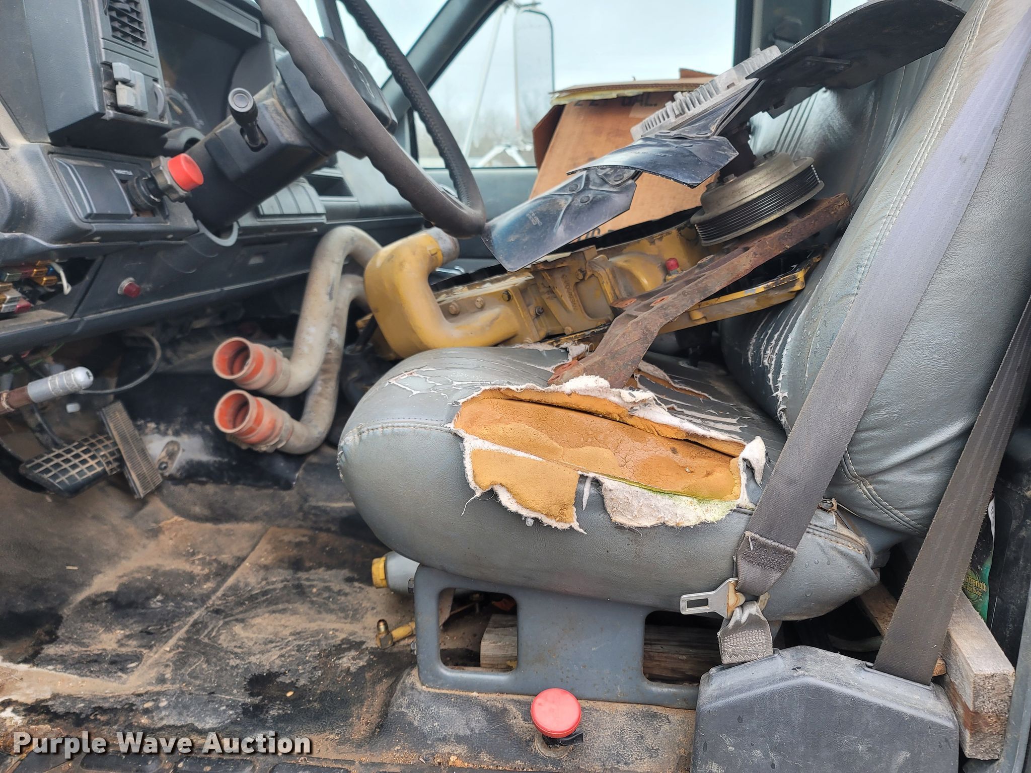 1996 Chevrolet Kodiak C6500 rollback truck. Miles: 108,008 on odometer, VIN: 1GBL7H1J7TJ104082. Engine Caterpillar 3116, Displacement: 6.6L, Cylinders: 6, Fuel type: Diesel. Transmission Manual, Speed: 5, plus 2. Chassis Axles: Single, Suspension: Spring, Brakes: Hydraulic, PTO, GVWR: 32,000 lbs. Interior Heat. Features Rollback bed Amerquip Corporation 932046, Serial: 53996, 21' L x 96" W, Winch, Remote control. Tires Size: 11R22.5. Notes Engine issues, blown head gasket, Windshield chipped or cracked, Dead battery, Non-operational unit. Missouri title. Title distribution may be delayed up to 14 days from verification of funds. Ben Turner Contracting Co. 110 Turner Parkway. Camdenton, MO 65020