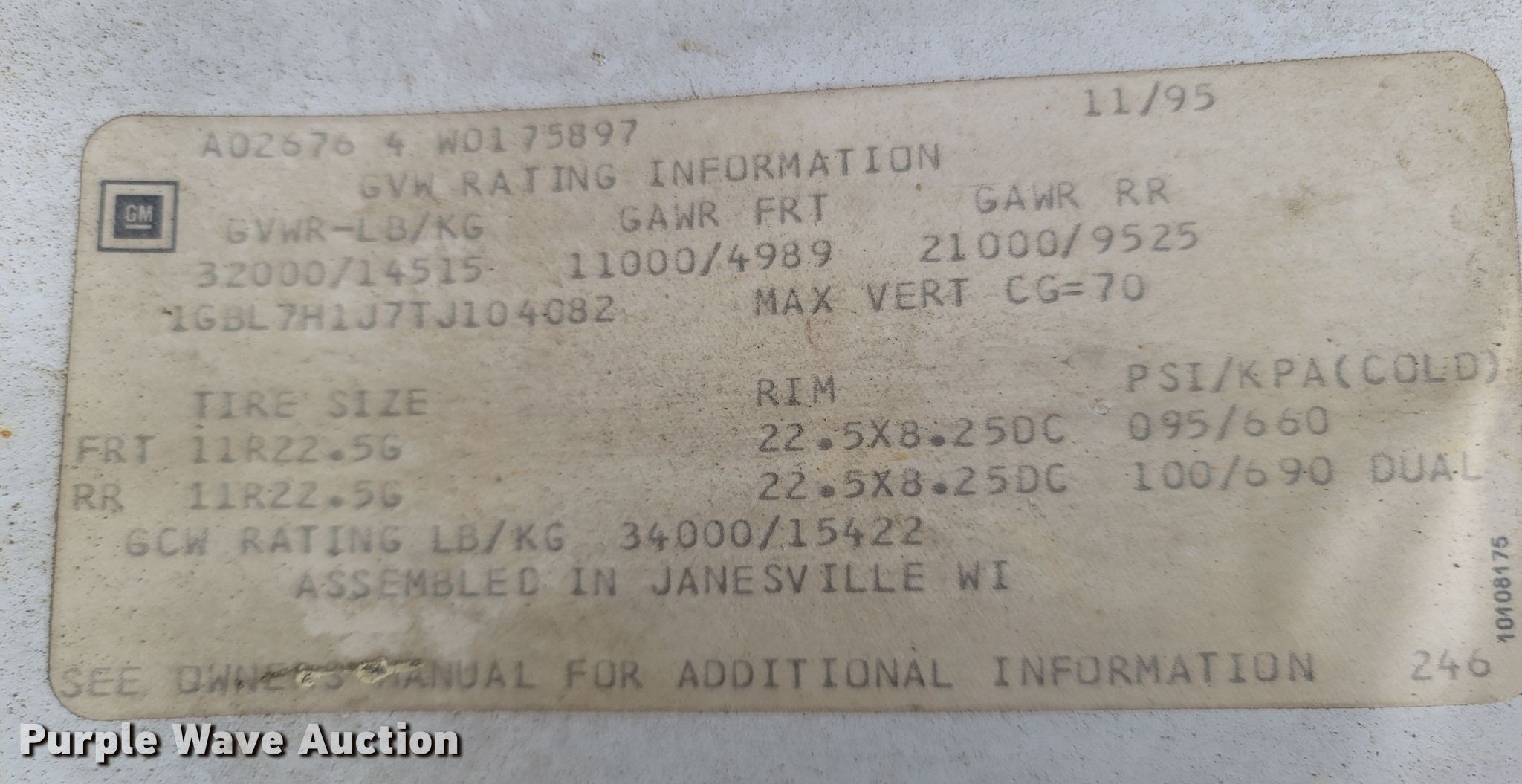 - VIN: 1GBL7H1J7TJ104082