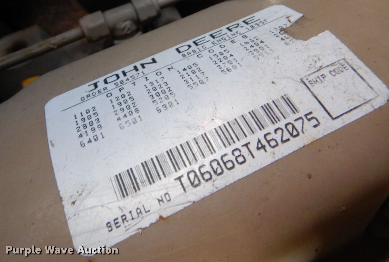 Dickson Road Pro 6180C stripe remover. Hours: 1,091 on meter, Serial: 949535. Engine John Deere, Serial: T06068T462075, Cylinders: 6, Fuel type: Diesel. Transmission Powershift, 5F - 3R. Features Grinder Width: 5", Air Compressor Dayton Model: 3Z241D, Rear wheel steer. Tires Size: 250-15, Solid. Notes Vacuum hose torn. Select Signing, Inc. 5975 16th Avenue Southwest. Cedar Rapids, IA 52404