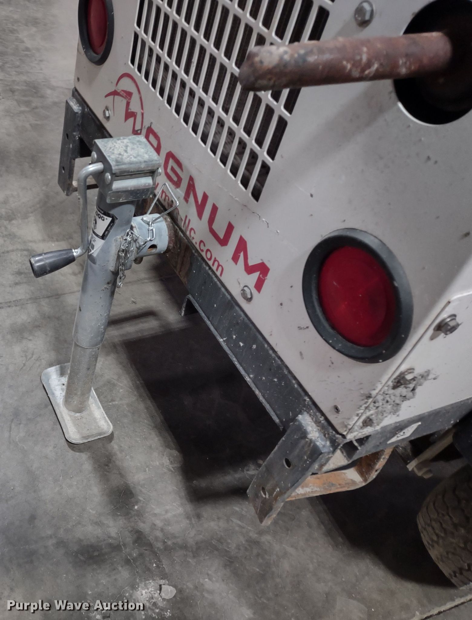 2011 Magnum MLT3060M light plant. Hours: 5,801 on meter, VIN: 5AJLS1610BB000956. Engine Mitsubishi L3E, Displacement: 1.0L, Cylinders: 3, Fuel type: Diesel. Features Light plant Bulbs: 4, Watts: 6,000, Tower height: 30', Hoist: Manual, Stabilizers. Trailer 14' L x 49" W, Suspension: Spring, Axles: Single, Tire size: 175/80D13, GVWR: 1,870 lbs, GAWR: 2,200 lbs. Notes Axle damage, bent, Dead battery. Transfer of ownership documentation will be a bill of sale. Concrete Strategies, Inc.. Lenexa, KS 66227