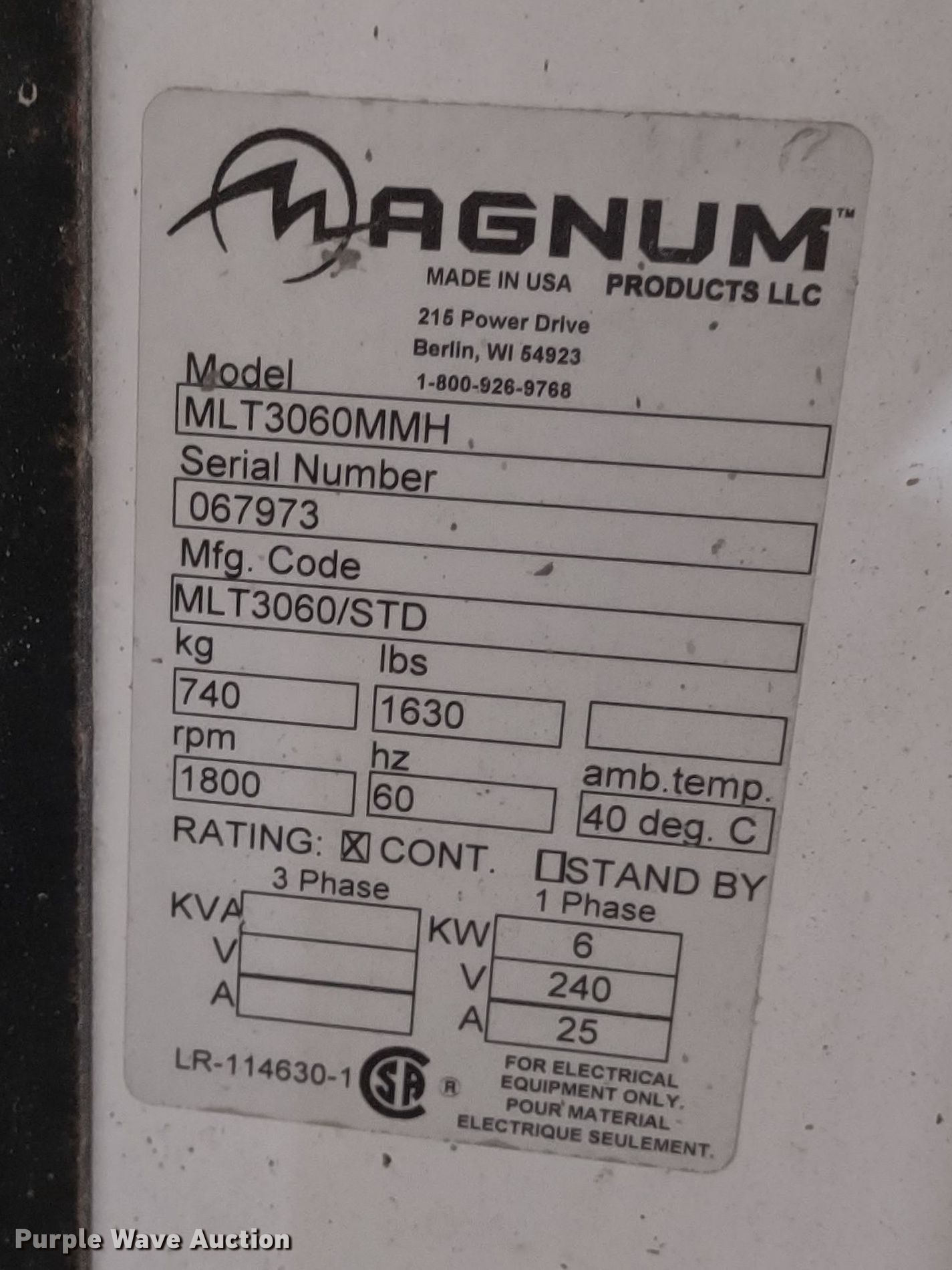 Purple Wave is selling a used Light Plant in Kansas. This item is a Magnum MLT3060MMH light plant with the following: Hours: 6,197 on meter, Serial: 067973