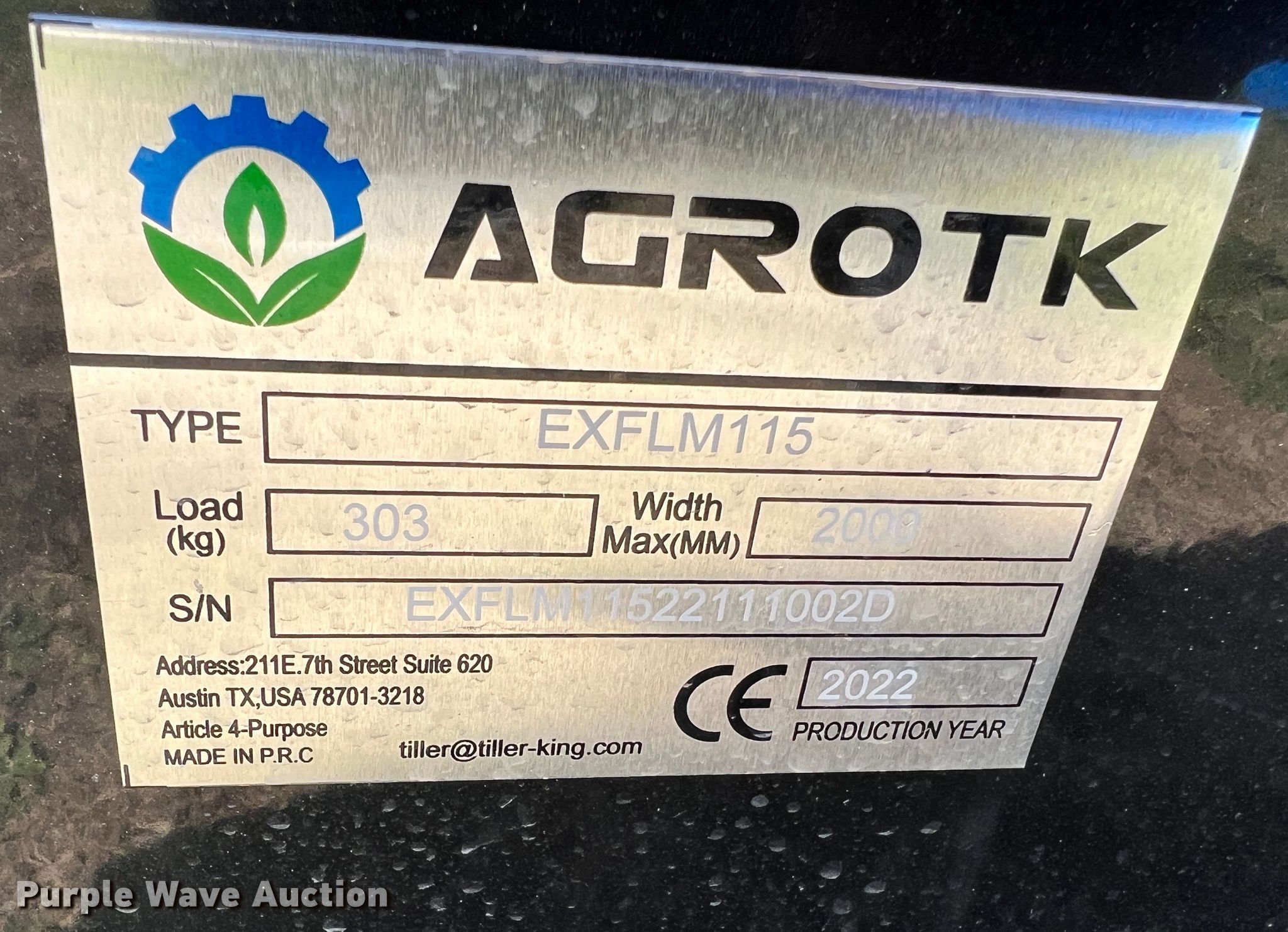 2022 Agrotk EXFLM115 flail mower | SOLD! April 13 Construction Equipment Auction
