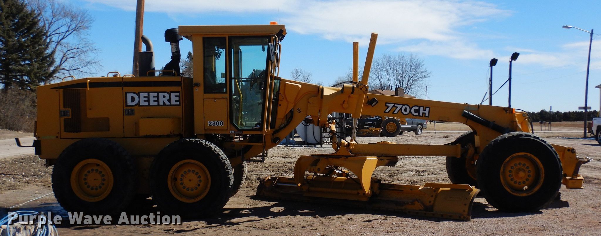 Purple Wave is selling a used Motor Grader in Nebraska. This item is a 2001 John Deere 770CH motor grader with the following: Hours: 571 on meter, Actual hours approximately 20,571, Serial: 578667