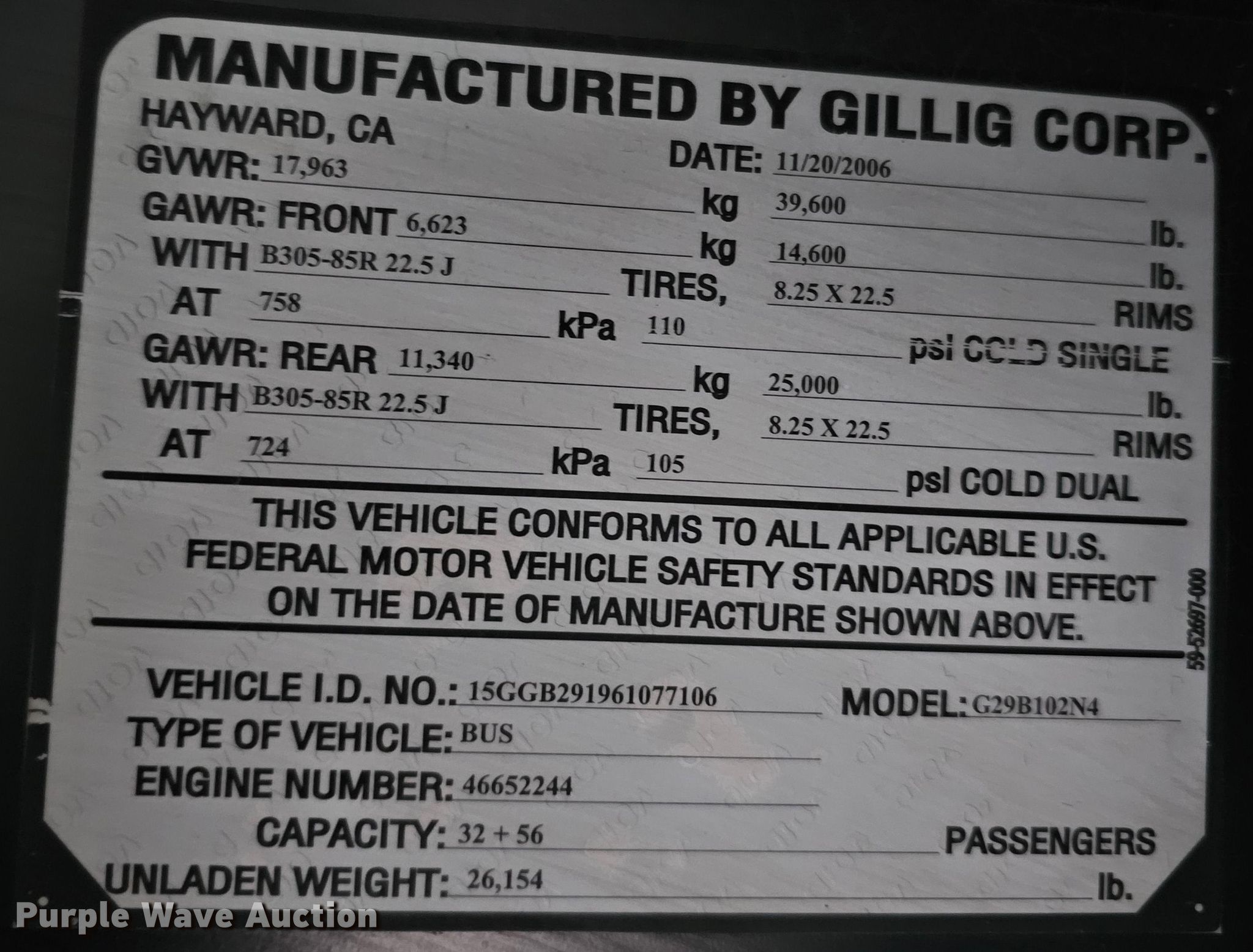 Purple Wave is selling a used Bus in Nebraska. This item is a 2006 Gillig G29B102N4 transit bus with the following: Miles: 187,694 on odometer, Miles or hours may vary, unit still in use, VIN: 15GGB291961077106, Unit #: 686