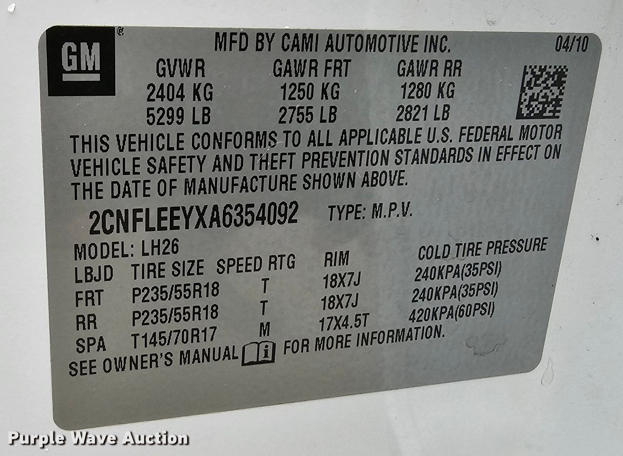 Purple Wave is selling a used Passenger Vehicle in Nebraska. This item is a 2010 Chevrolet Equinox LT SUV with the following: Miles: 84,820 on odometer, VIN: 2CNFLEEYXA6354092, Unit #: 2