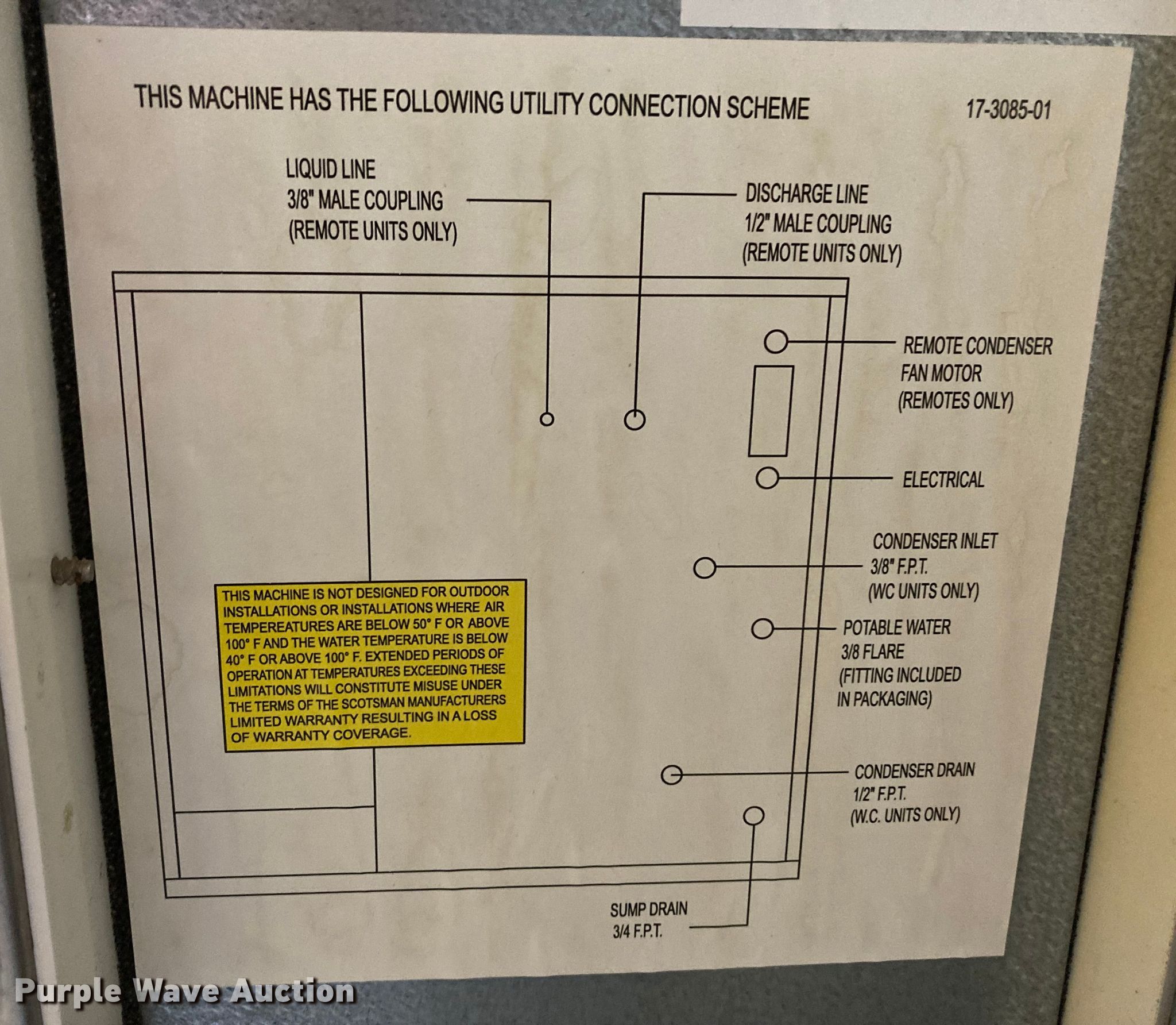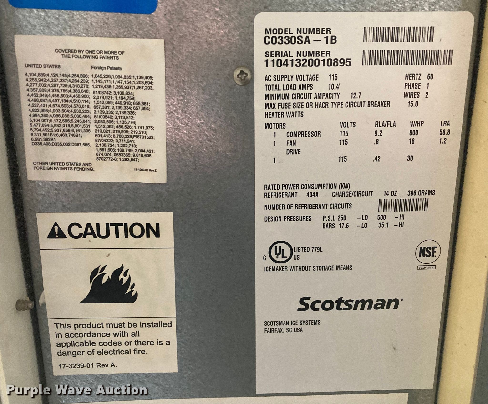 Purple Wave is selling a used Appliances in Kansas. This item is a Scotsman Prodigy ice maker with the following: 115V, Single phase, Unknown operating condition