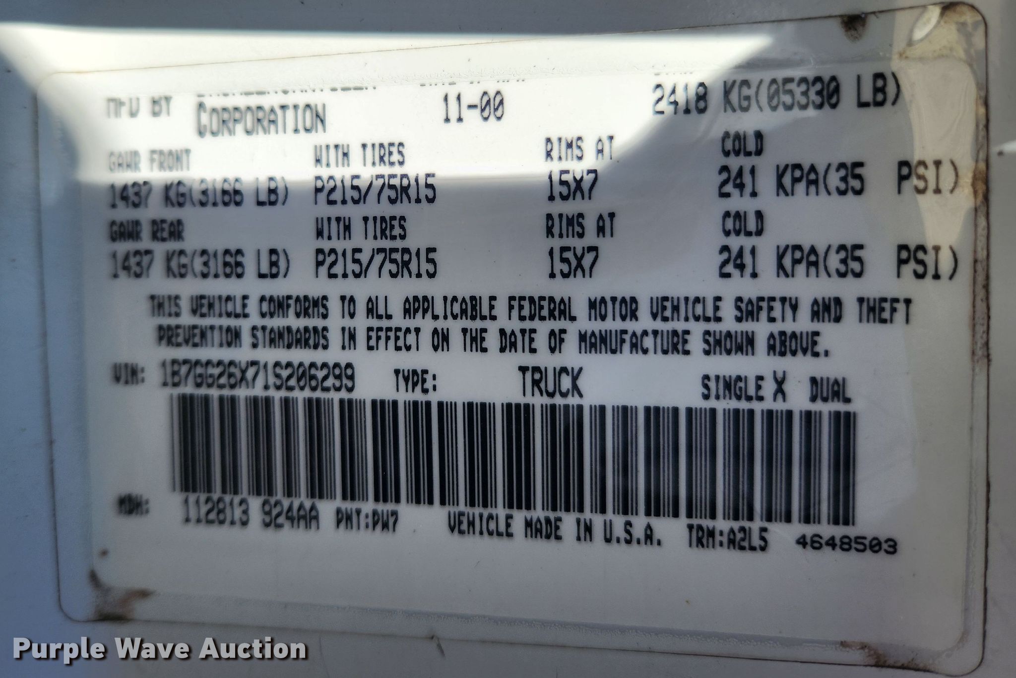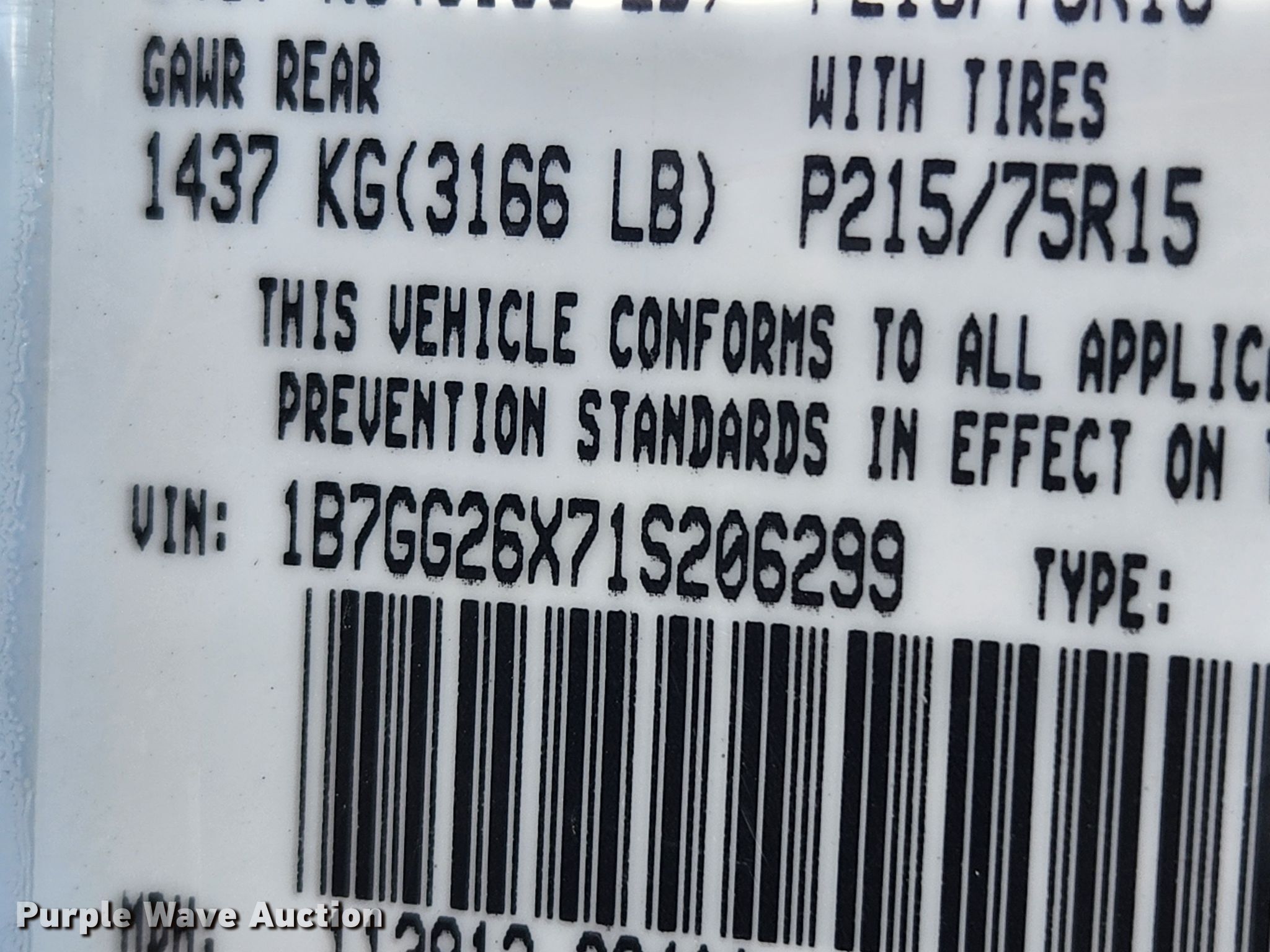 Purple Wave is selling a used Compact Pickup or Van in Missouri. This item is a 2001 Dodge Dakota pickup truck with the following: Miles: 57,262 on odometer, VIN: 1B7GG26X71S206299