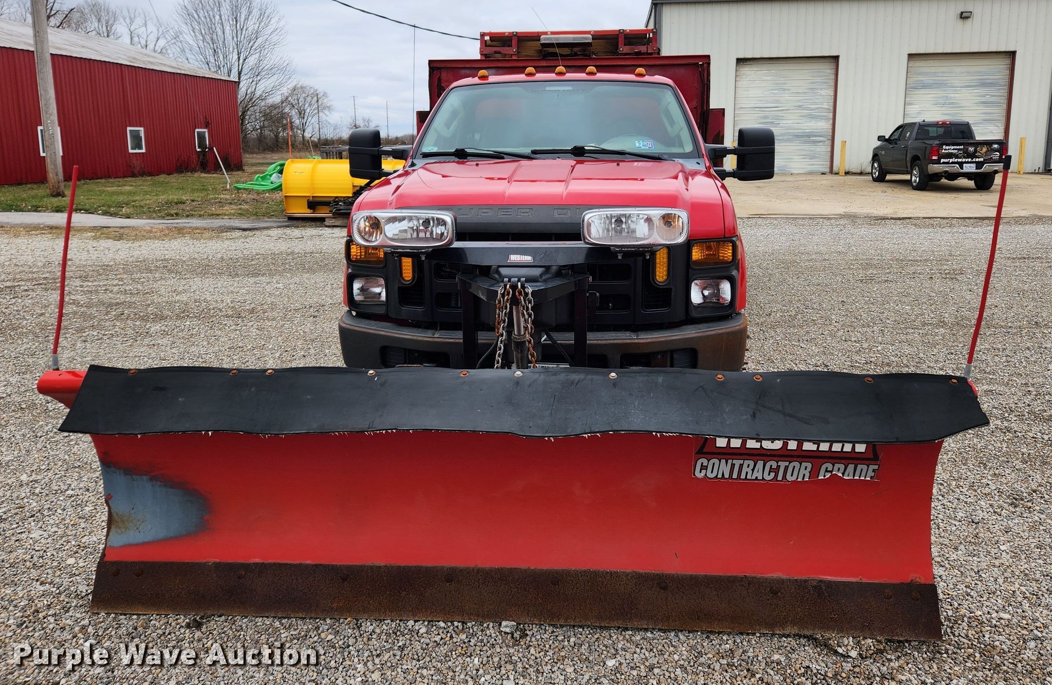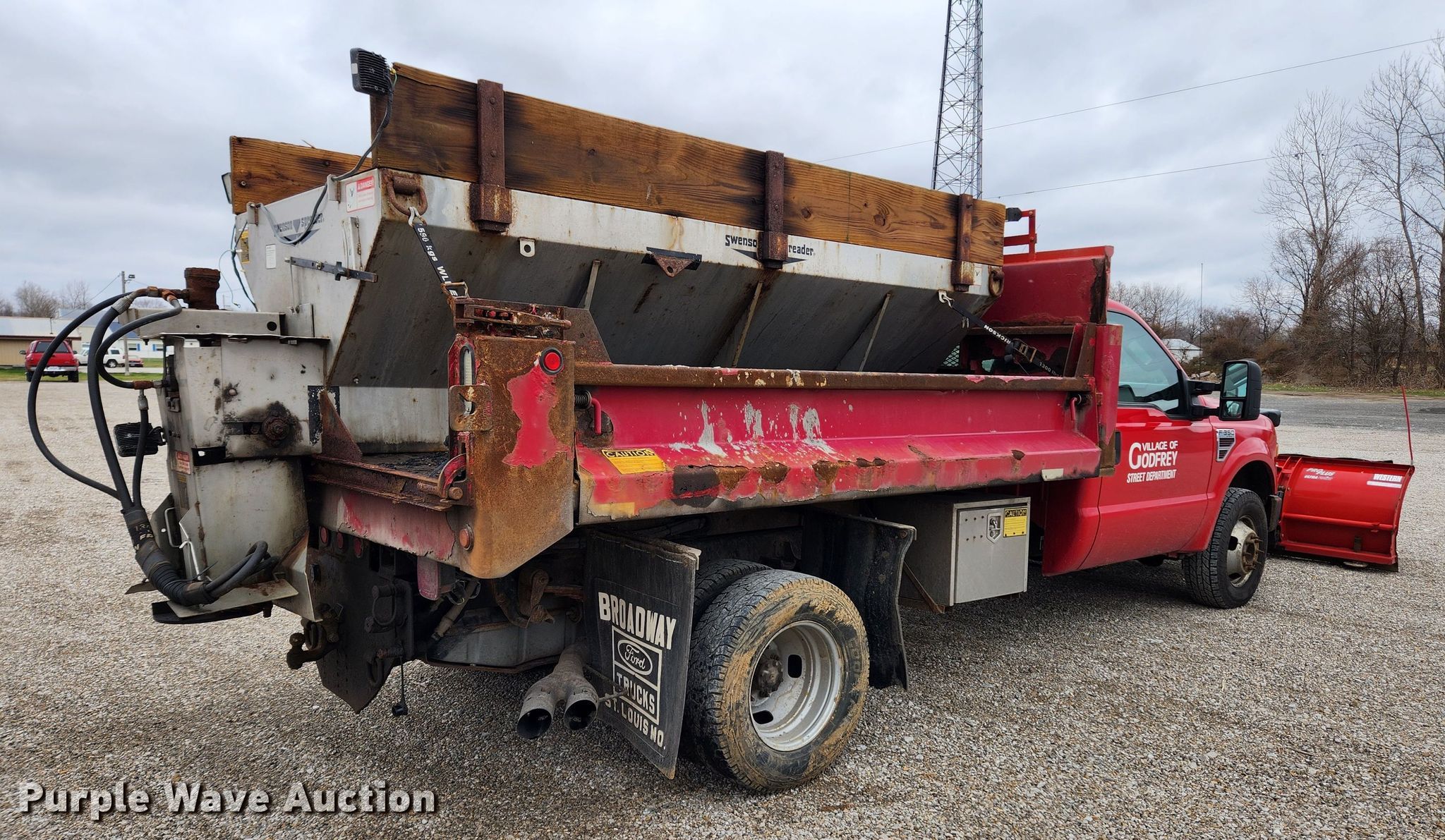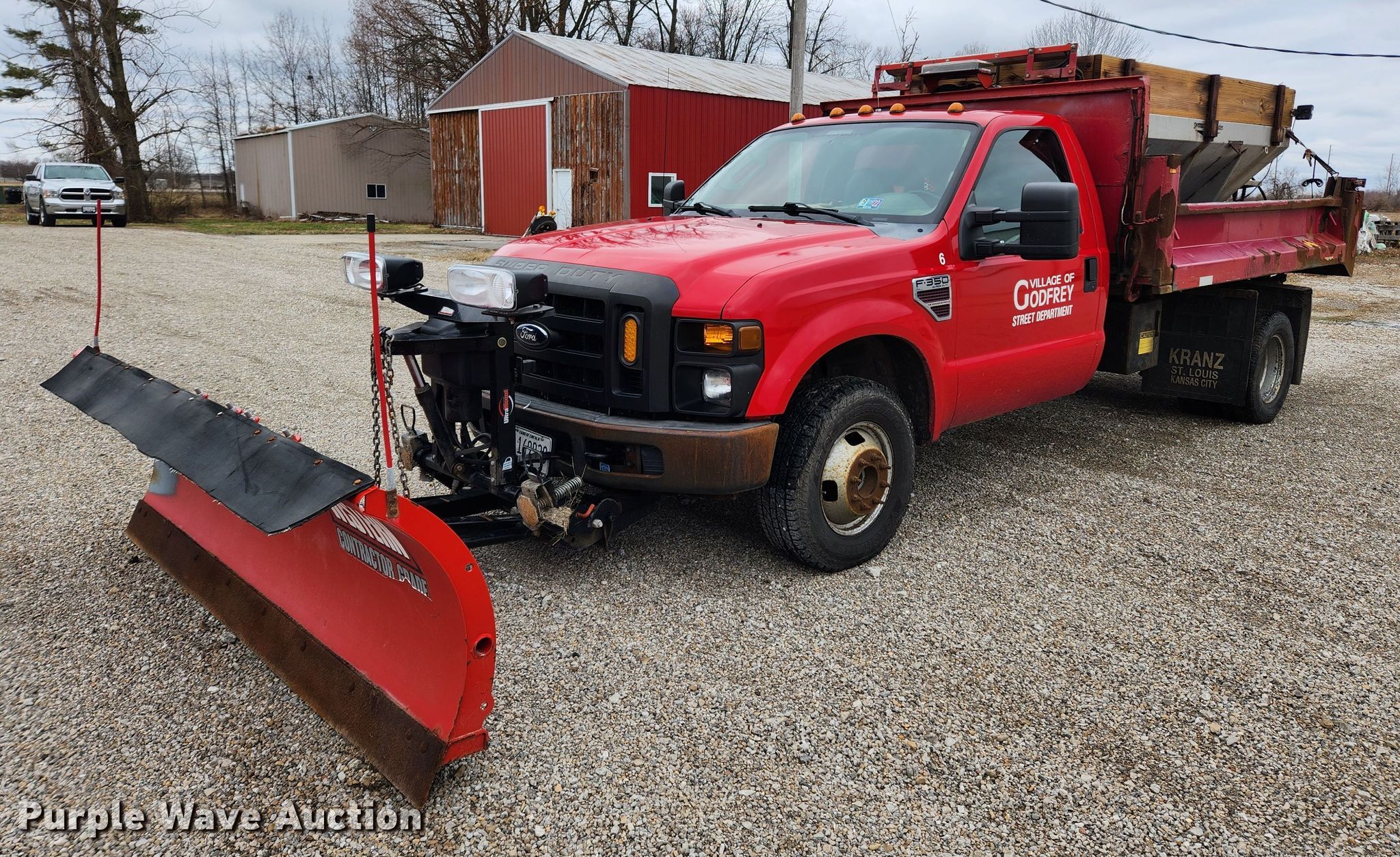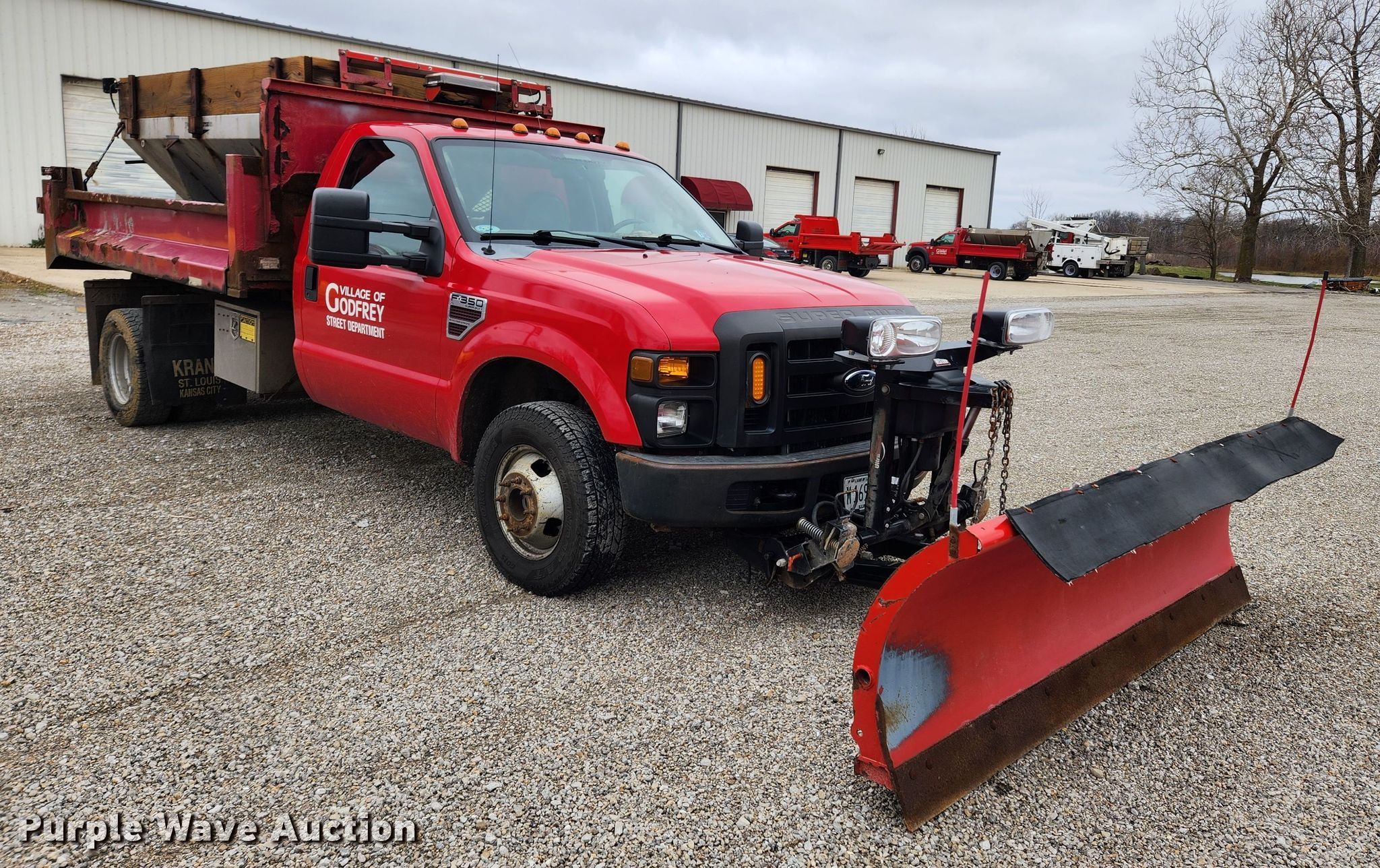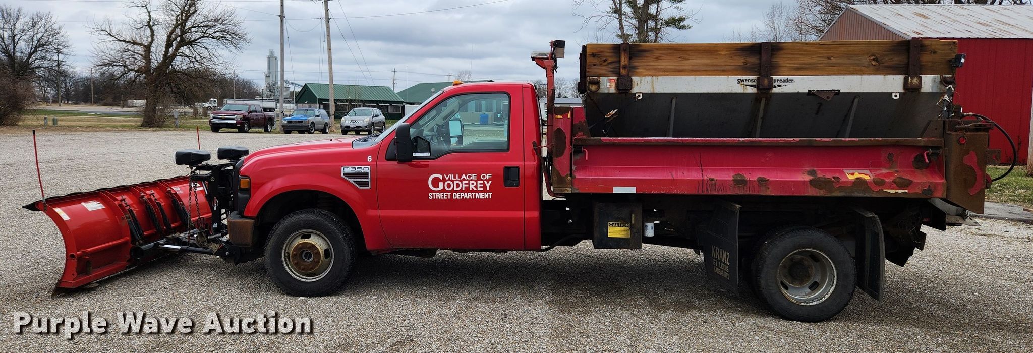 2009 Ford F350 Super Duty XL dump bed pickup truck. Miles: 129,724 on odometer, VIN: 1FDWF37R49EA10282. Engine Displacement: 6.4L V8 OHV, Cylinders: 8, Fuel type: Diesel. Transmission Automatic, Four wheel drive. Interior AC, Heat. Features Dump bed Galion-Godwin 100USD11, 11' L x 93" W, Chelsea PTO, Swenson spreader Length: 10', Western Pro Plus Ultra Finish snow plow Width: 102". Tires Size: LT245/75R17 NHS. Illinois title. Title distribution may be delayed up to 14 days from verification of funds. Village of Godfrey. Godfrey, IL 62035