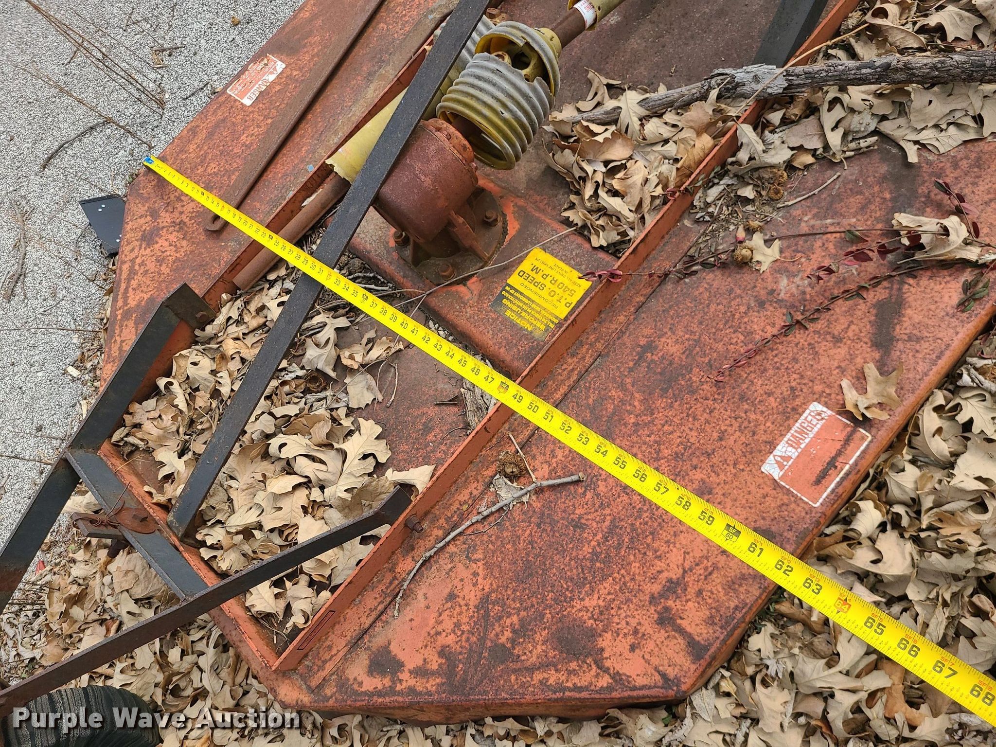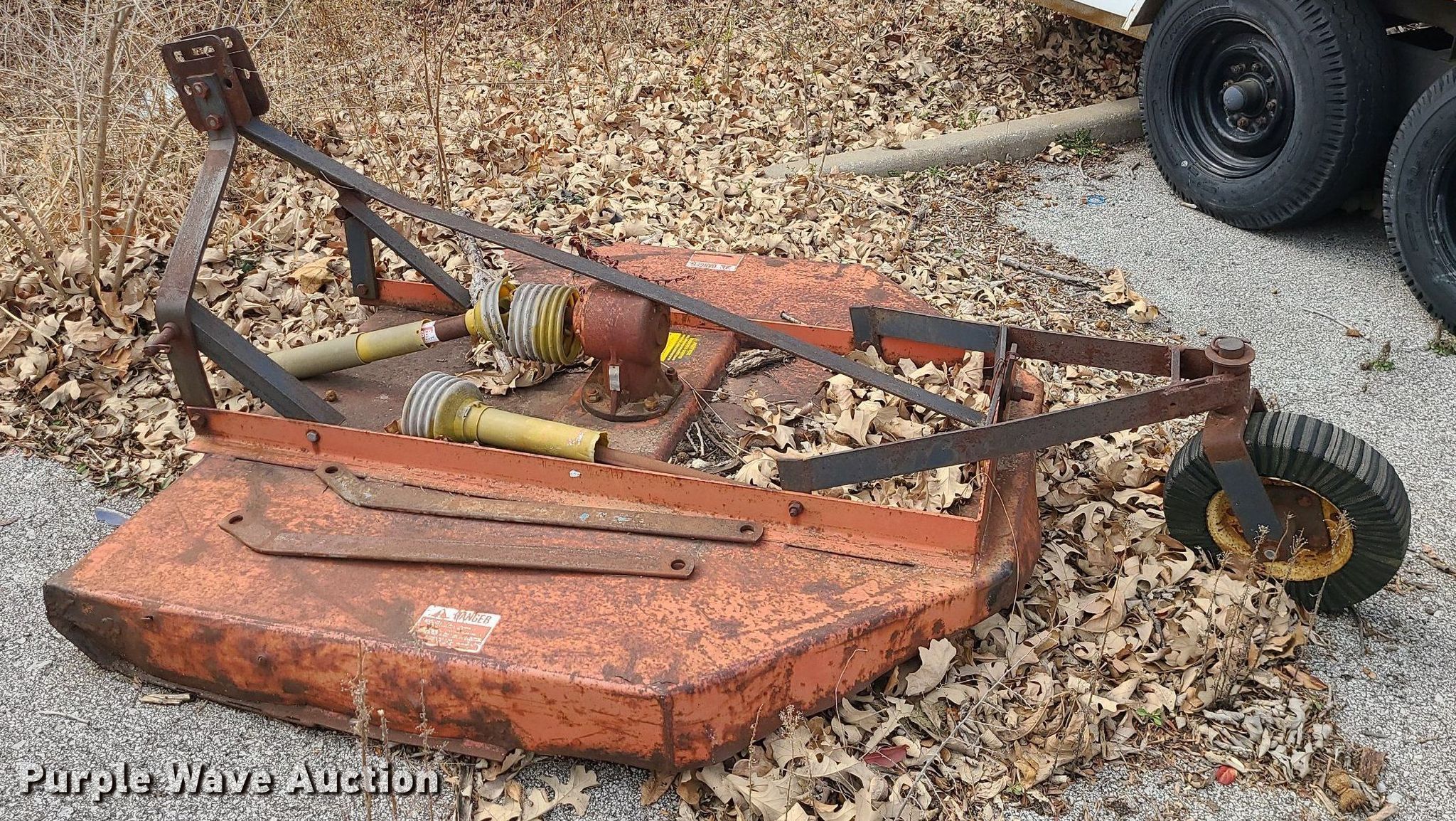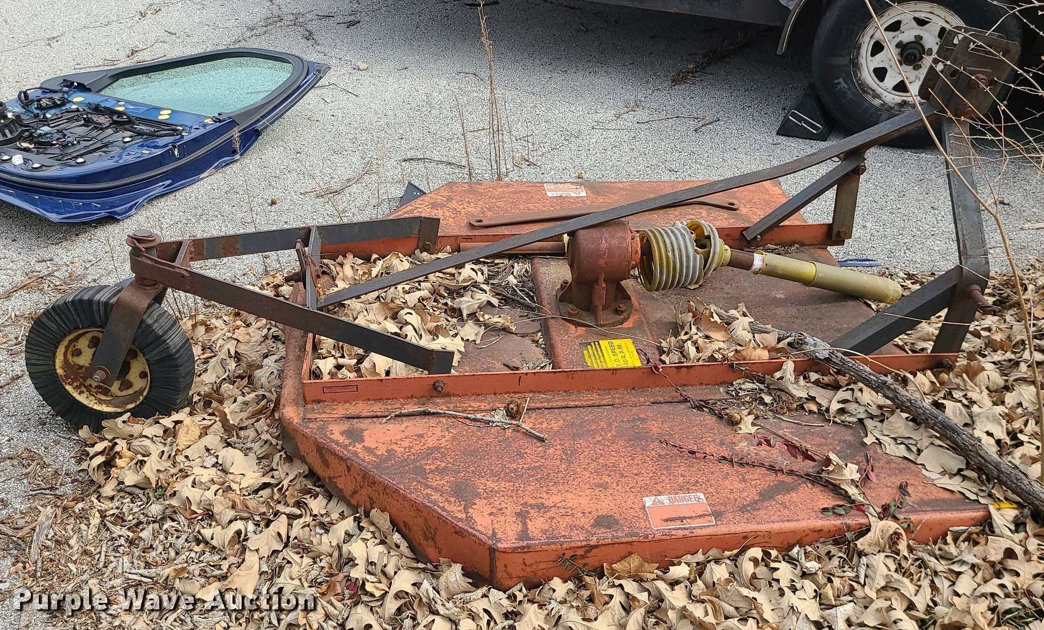 1970 Ford 2000 tractor. Hours: 1,268 on meter, Serial: C279339. Engine Displacement: 2.6L, Cylinders: 3, Fuel type: Gas. Transmission Manual, 6F - 2R. Features PTO: 540, Three point Top link. Tires Front: 6.50-16, Rear: 13.6-28. Brush Hog rotary mower. Features Width: 5', PTO: 540, Hitch: Three point. Tires Solid. Board of Police Commissioners. 5215 E 27th St. Kansas City, MO 64127