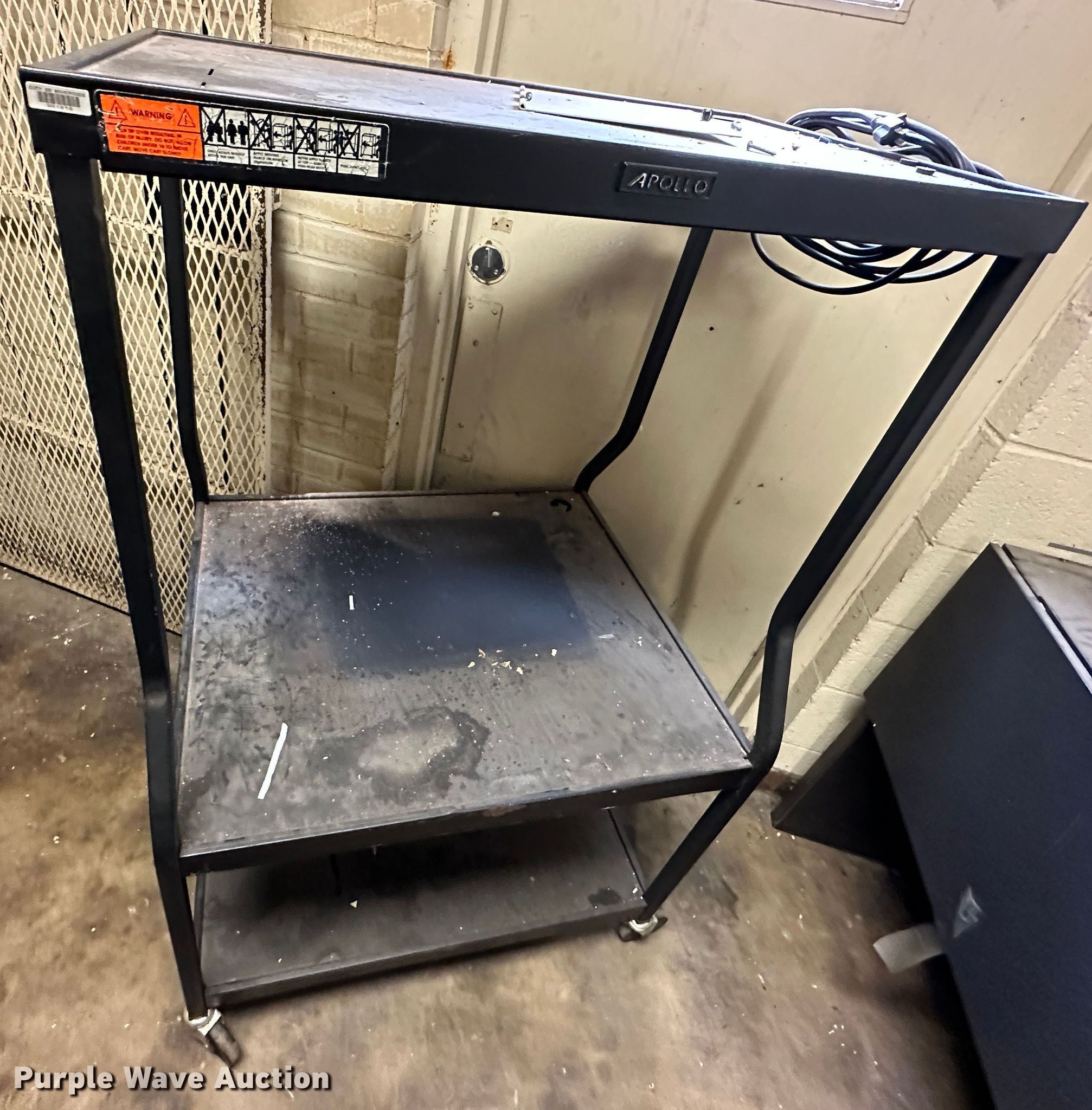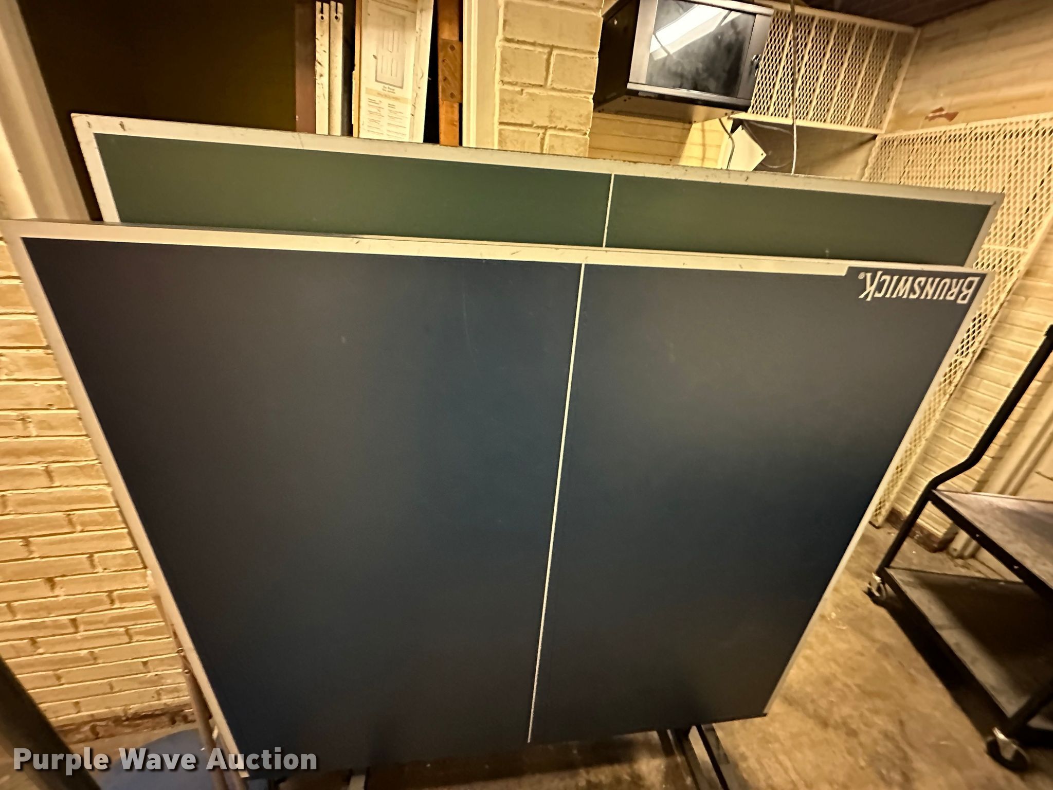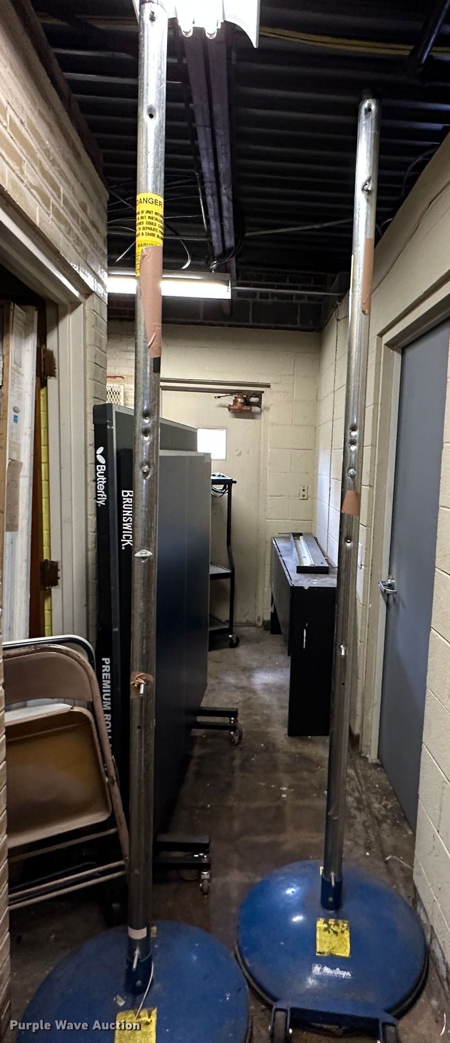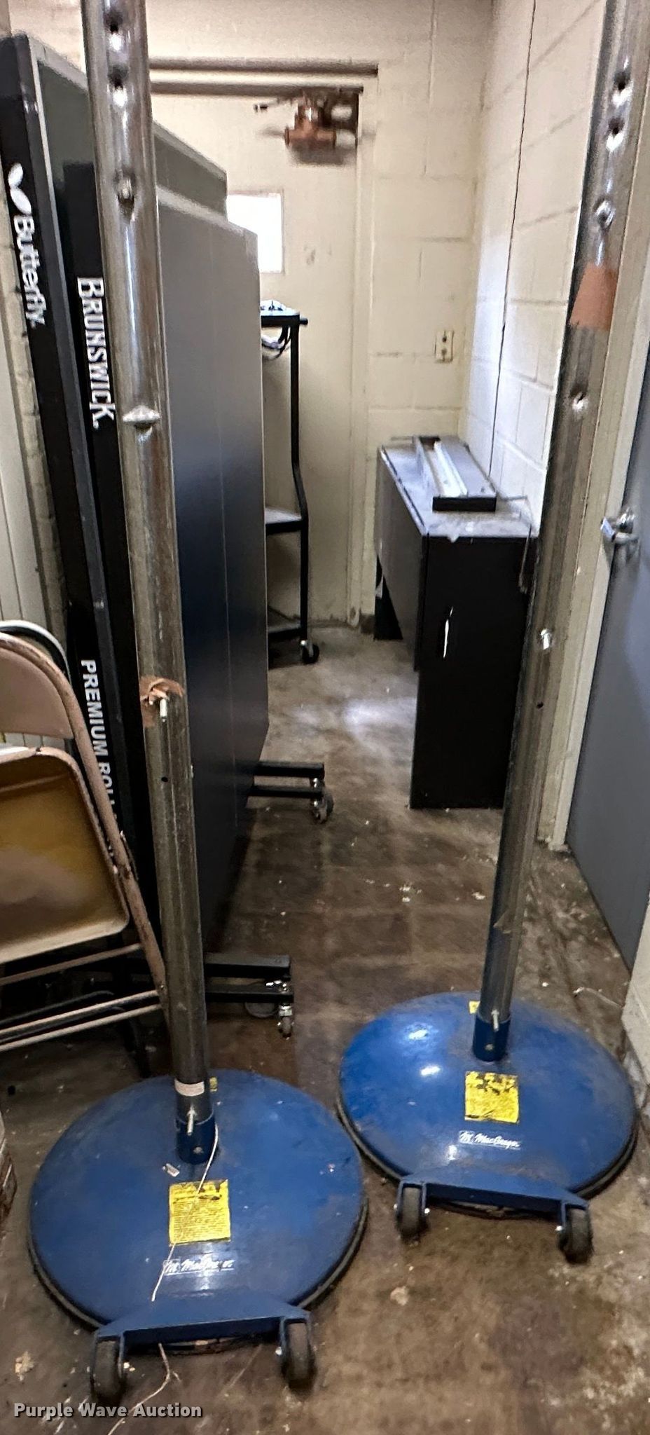 Purple Wave is selling a used Sporting Goods in Missouri. This item is a Sporting goods with the following: (2) ping-pong tables, (2) volley ball poles, Cart, Cabinet, Contents not included
