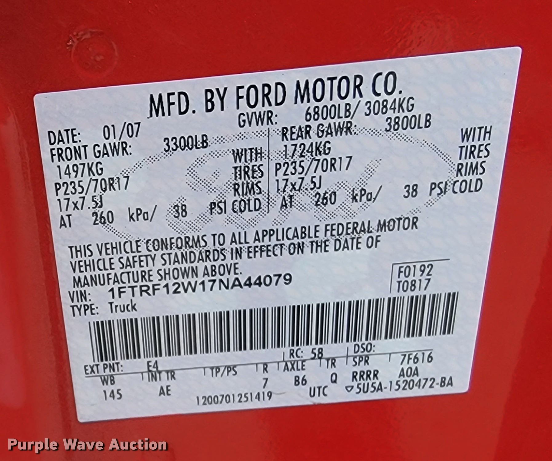 Purple Wave is selling a used 1/2 Ton Pickup or Van in South Dakota. This item is a 2007 Ford F150 XL pickup truck with the following: Miles: 60,904 on odometer, VIN: 1FTRF12W17NA44079