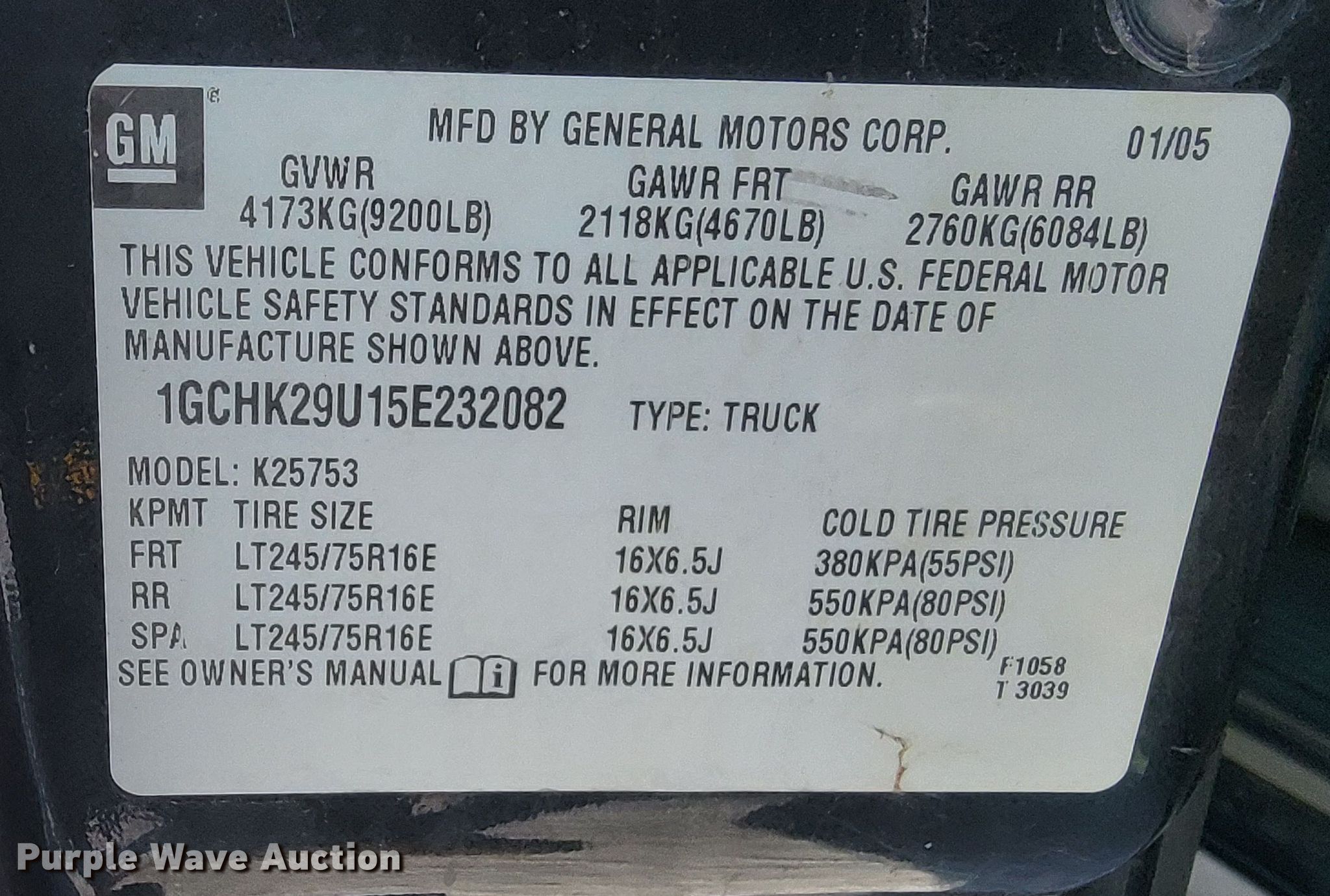 - VIN: 1GCHK29U15E232082