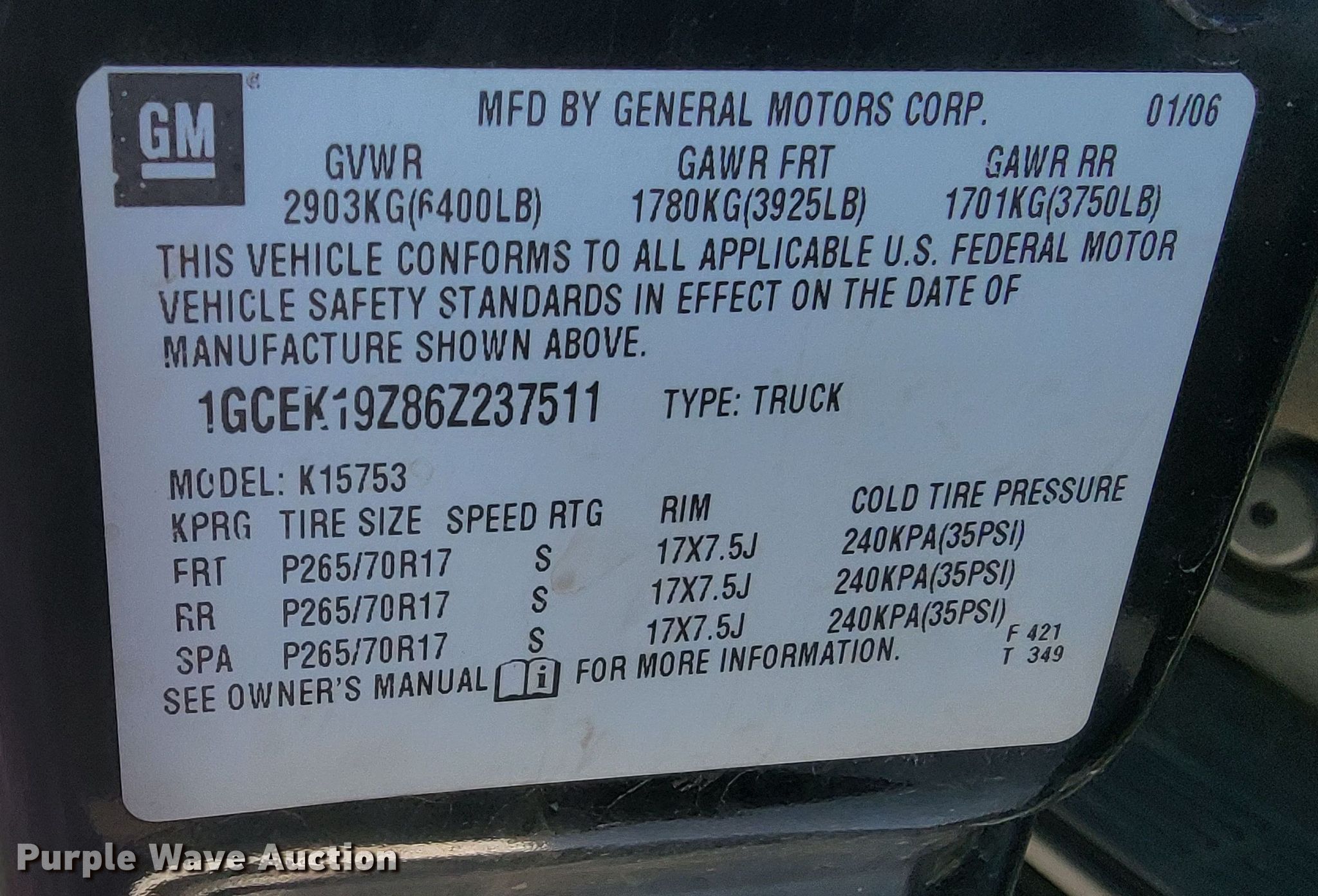 - VIN: 1GCEK19Z86Z237511