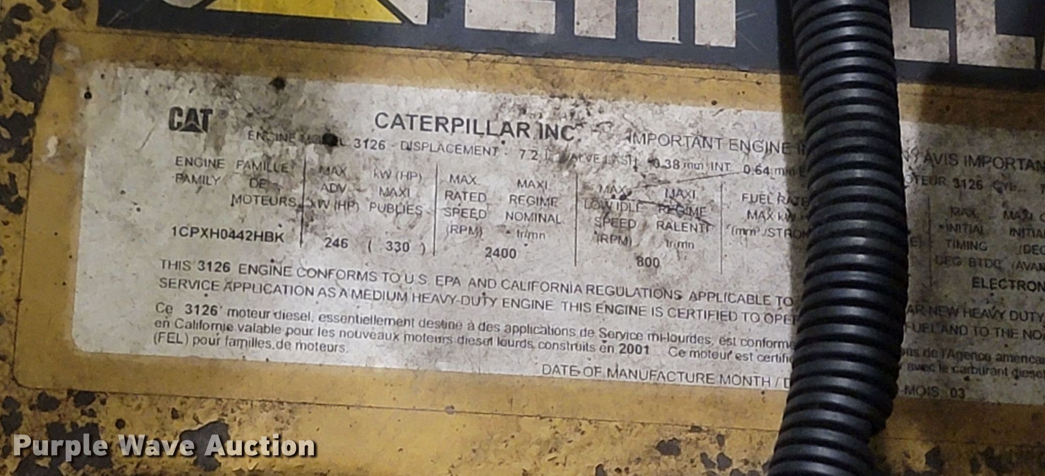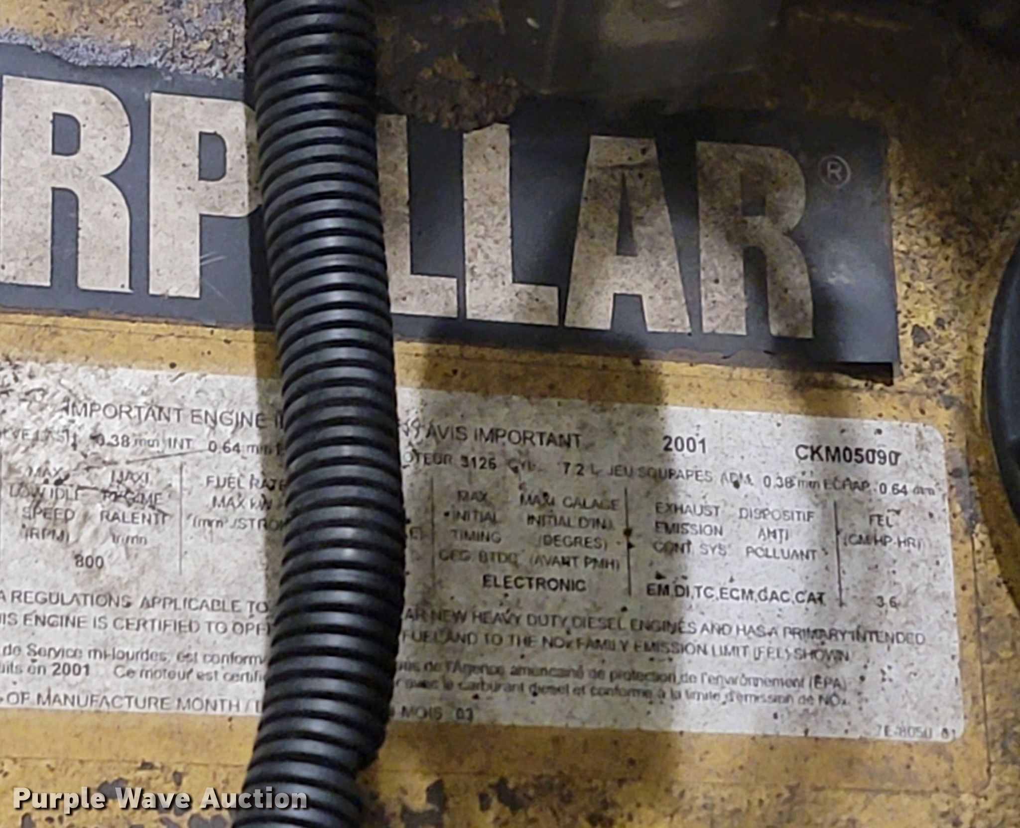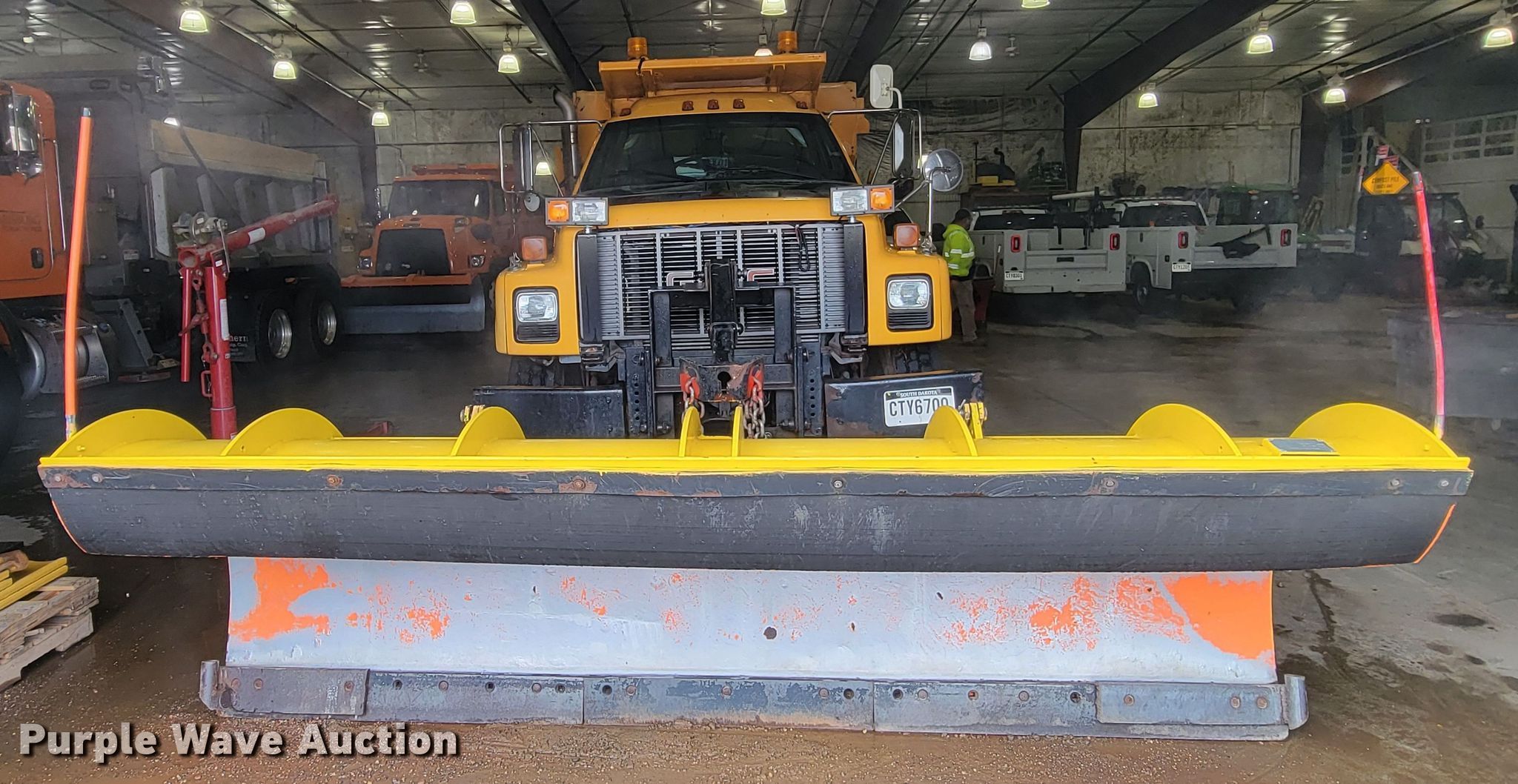 2001 GMC C8500 dump truck. Miles: 81,347 on odometer, Hours: 5,913 on meter, VIN: 1GDS7H4C11J509402. Engine Caterpillar 3126, Displacement: 7.2L, Cylinders: 6, Fuel type: Diesel. Transmission Automatic. Chassis Double frame, Axles: Tandem, Differential lock: Inter-axle, Suspension: Spring over walking beam, Brakes: Air, PTO. Interior AC, Heat. Features Dump bed 13' 4" L x 8' W, Bed type: Steel, Ram: Single , End gate: Manual, Plow Width: 132". Tires Front: 12R22.5, Rear: 11R22.5. Notes Two way radio not included, Conveyor chain and spreader removed. South Dakota title. Title distribution may be delayed up to 14 days from verification of funds. City of Harrisburg. 801 Perry Lane. Harrisburg, SD 57032