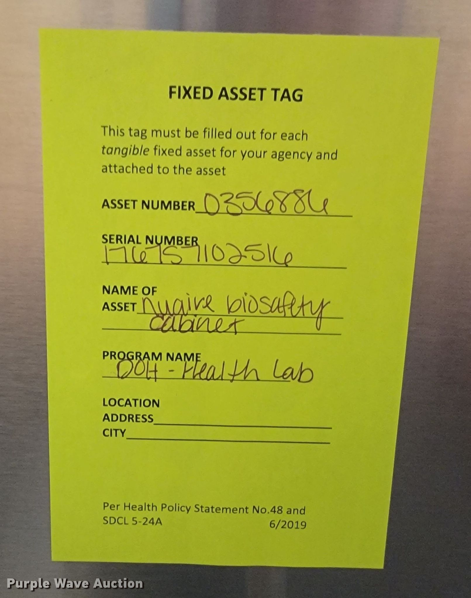 Purple Wave is selling a used Medical Equip. in South Dakota. This item is a Nuarie biosafety cabinet with the following: Unit #: 356886