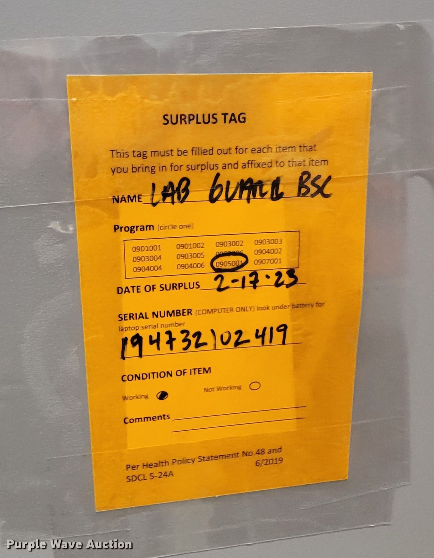 Nuaire NU-565-600 biological safety cabinet. 115V, Single phase, Class II. 1320 East Sioux Avenue. Pierre, SD 57501