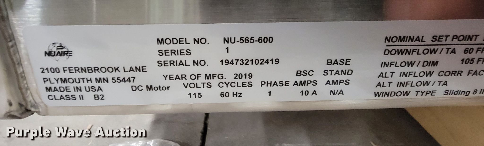 Purple Wave is selling a used Medical Equip. in South Dakota. This item is a Nuaire NU-565-600 biological safety cabinet with the following: 115V, Single phase, Class II