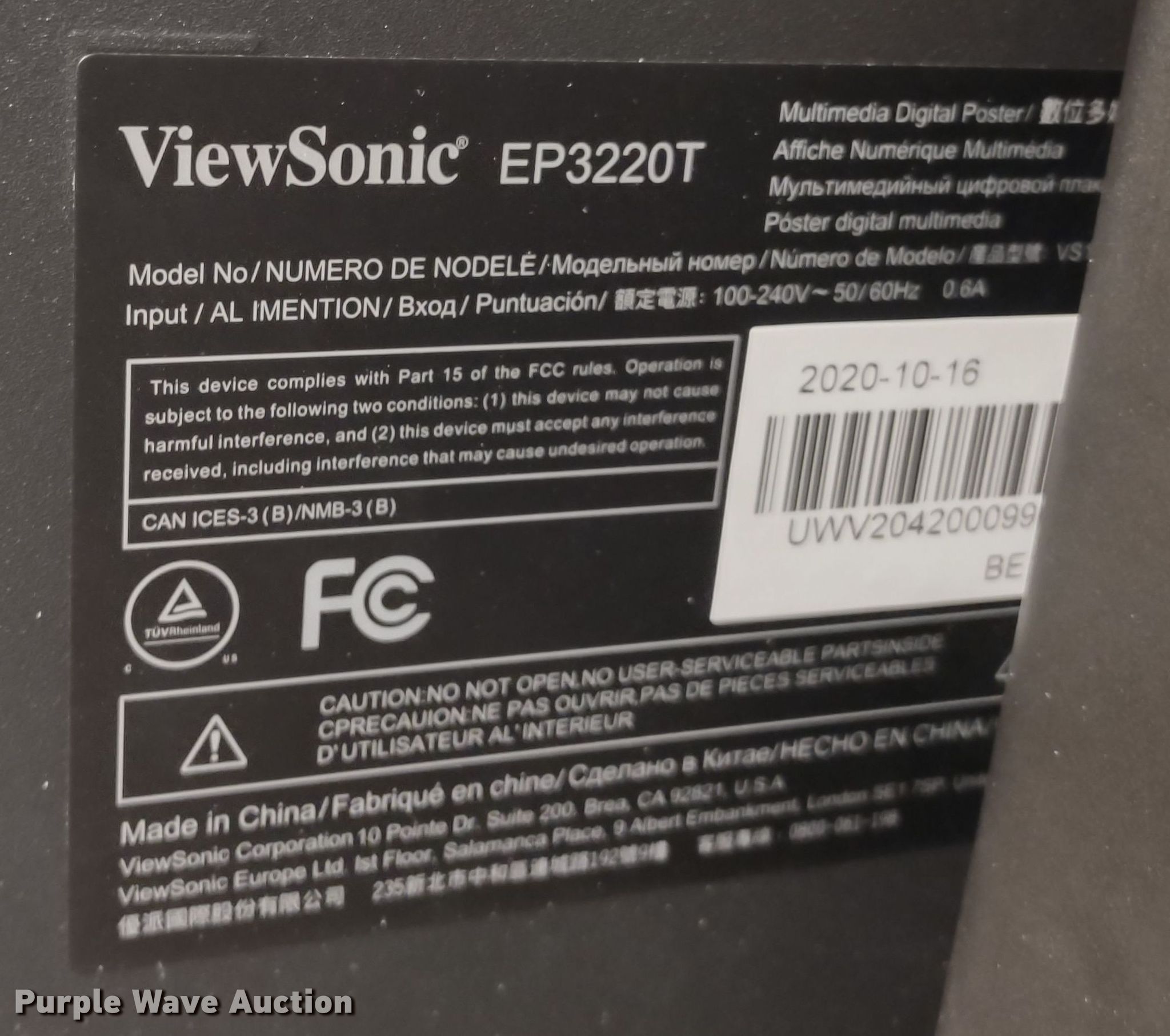 (3) ViewSonic EP3220T/VS16769 interactive display systems | SOLD! April 18 Government Auction