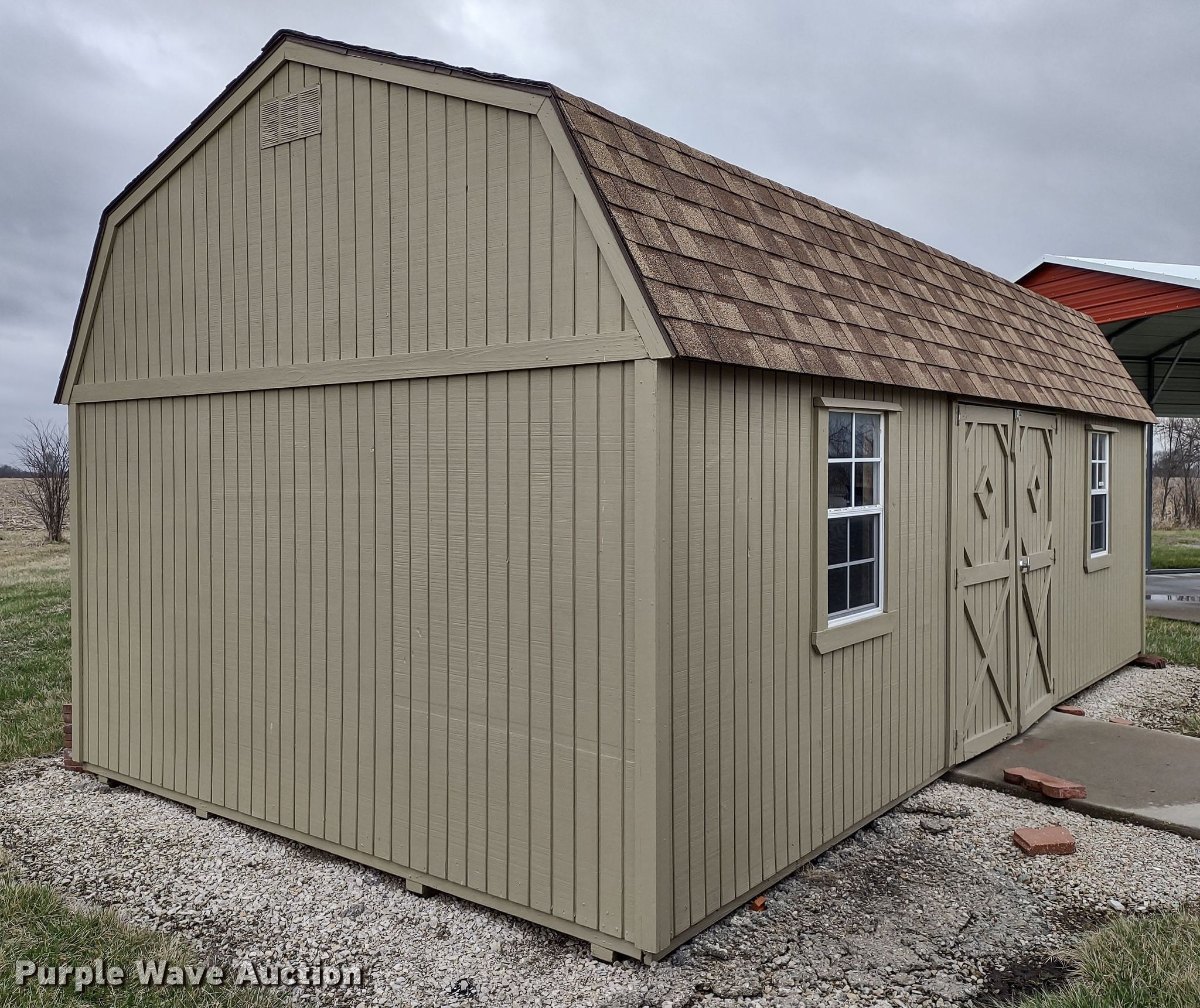Purple Wave is selling a used Building Materials in Kansas. This item is a Storage shed with the following: 12 x 24, Contents not included