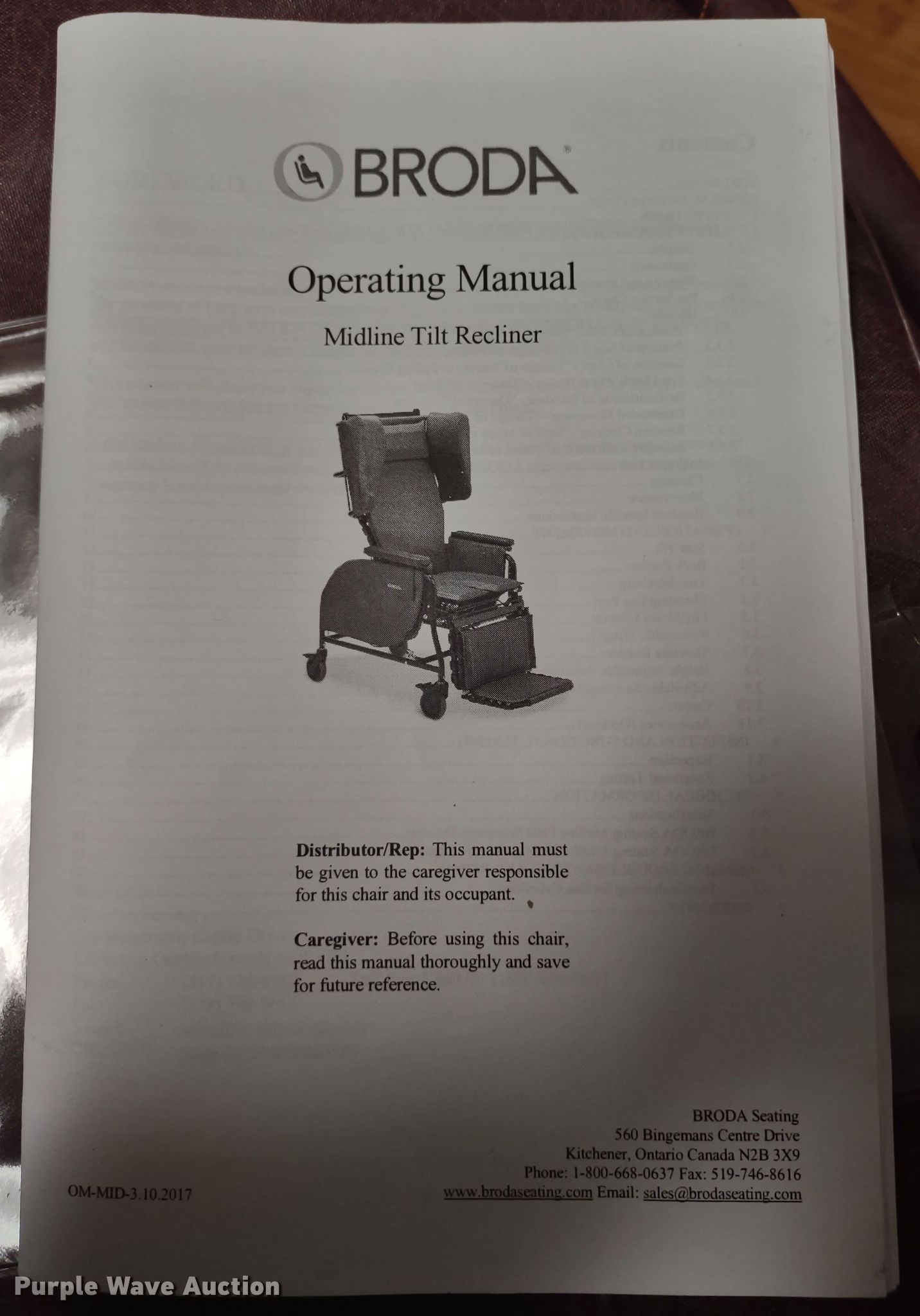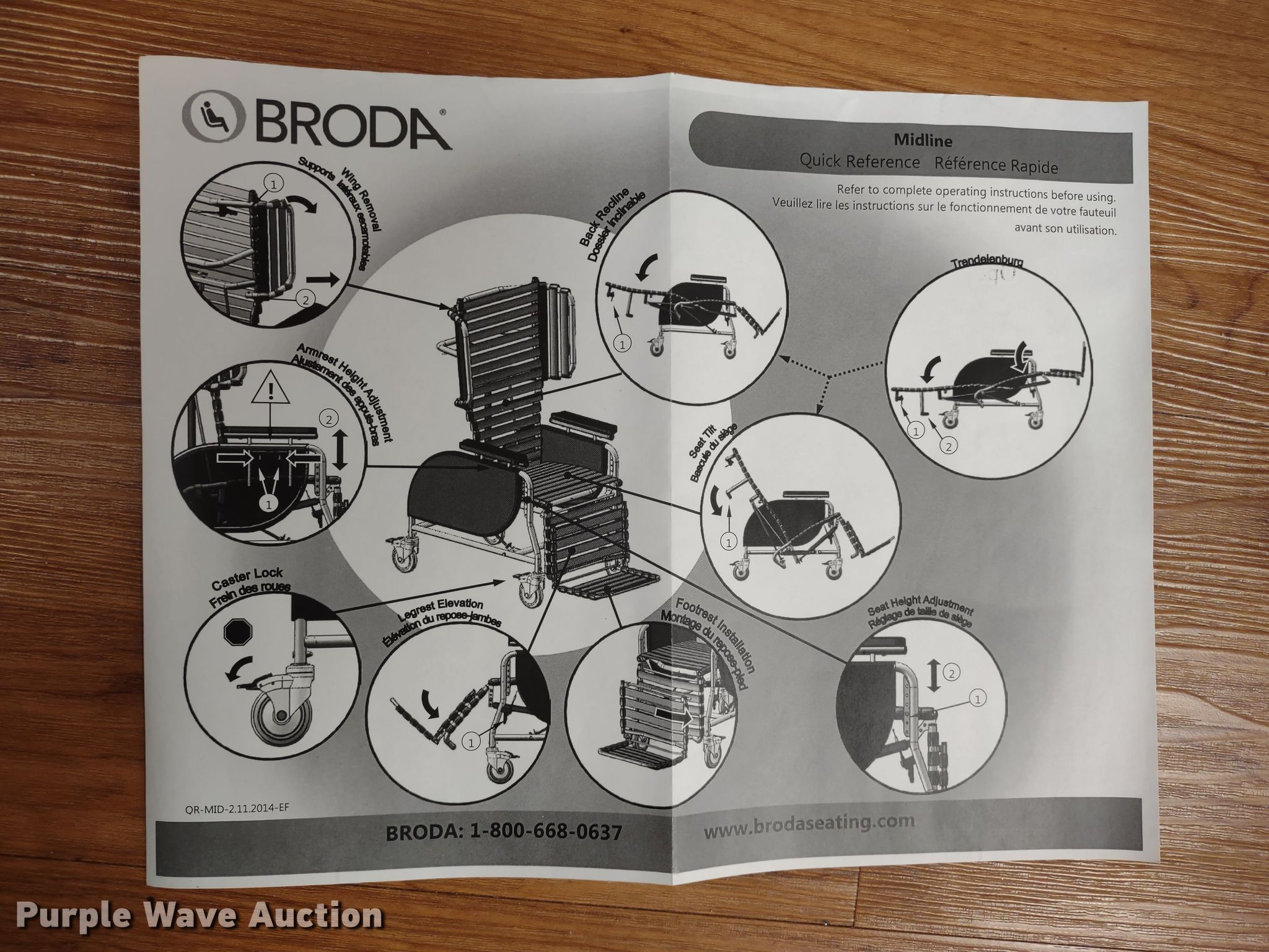 Purple Wave is selling a used Medical Equip. in Kansas. This item is a (5) Broda Midline tilt wheelchairs with the following: (5) Broda Midline tilt wheelchairs. Coffey County Hospital. 128 South Pearson Avenue. Waverly, KS 66871