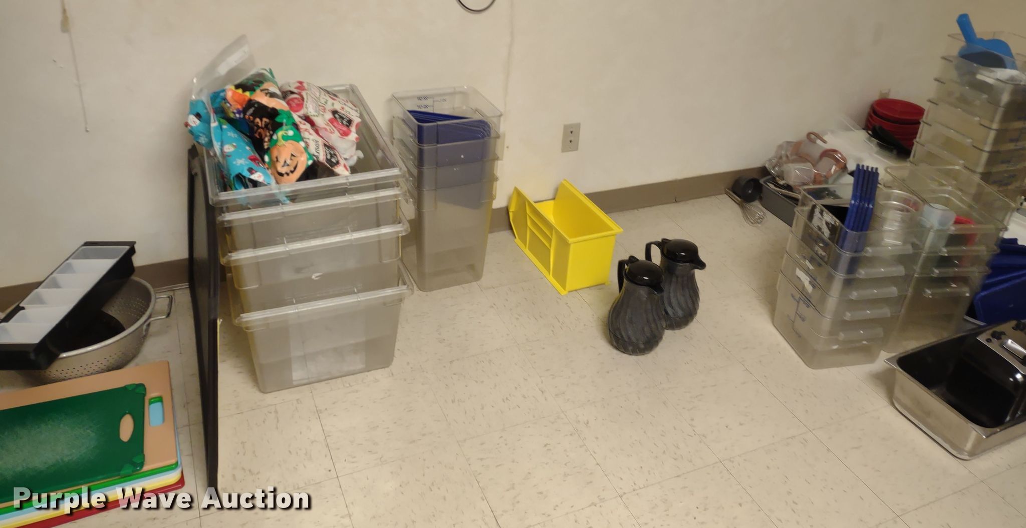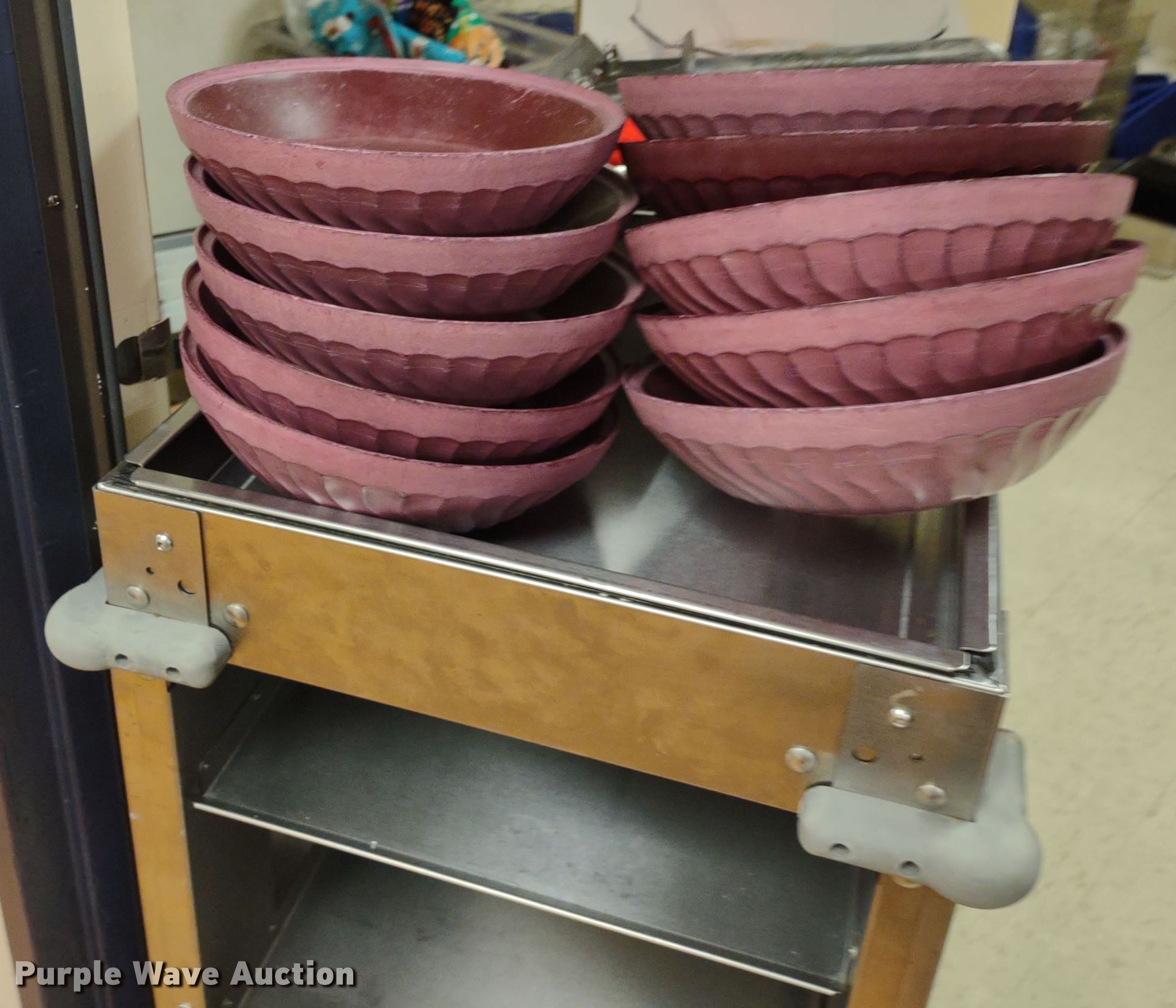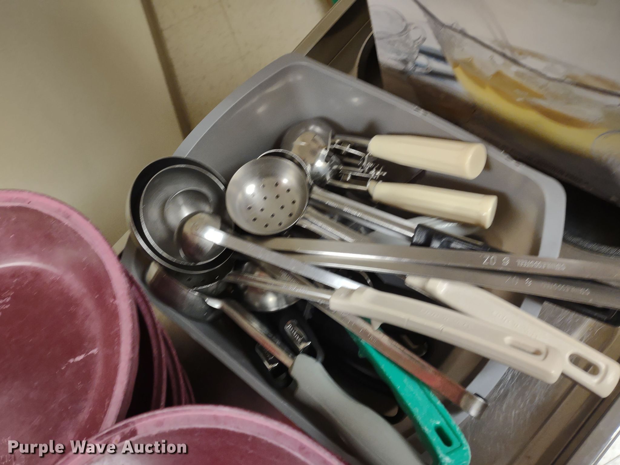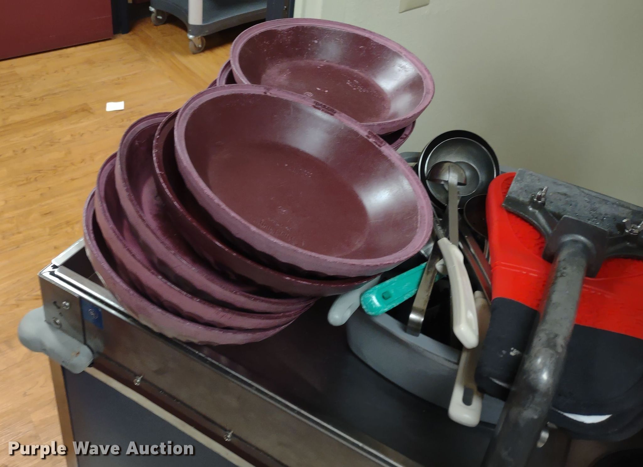 Purple Wave is selling a used All Other Household Items in Kansas. This item is a Kitchen appliances with the following: Hobart mixer, Ninja blender, Roaster pans, (3) Anchor cake platters, (2) Anchor punch sets, (3) carts, Meat slicer and more
