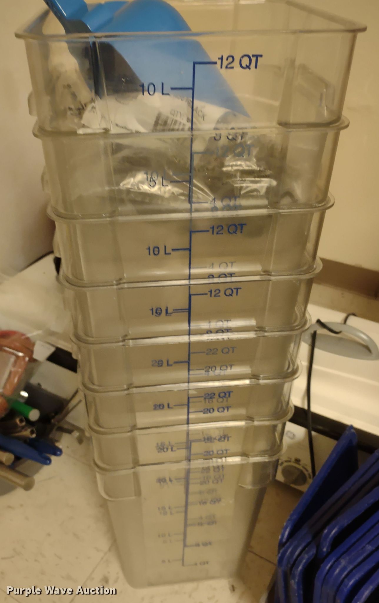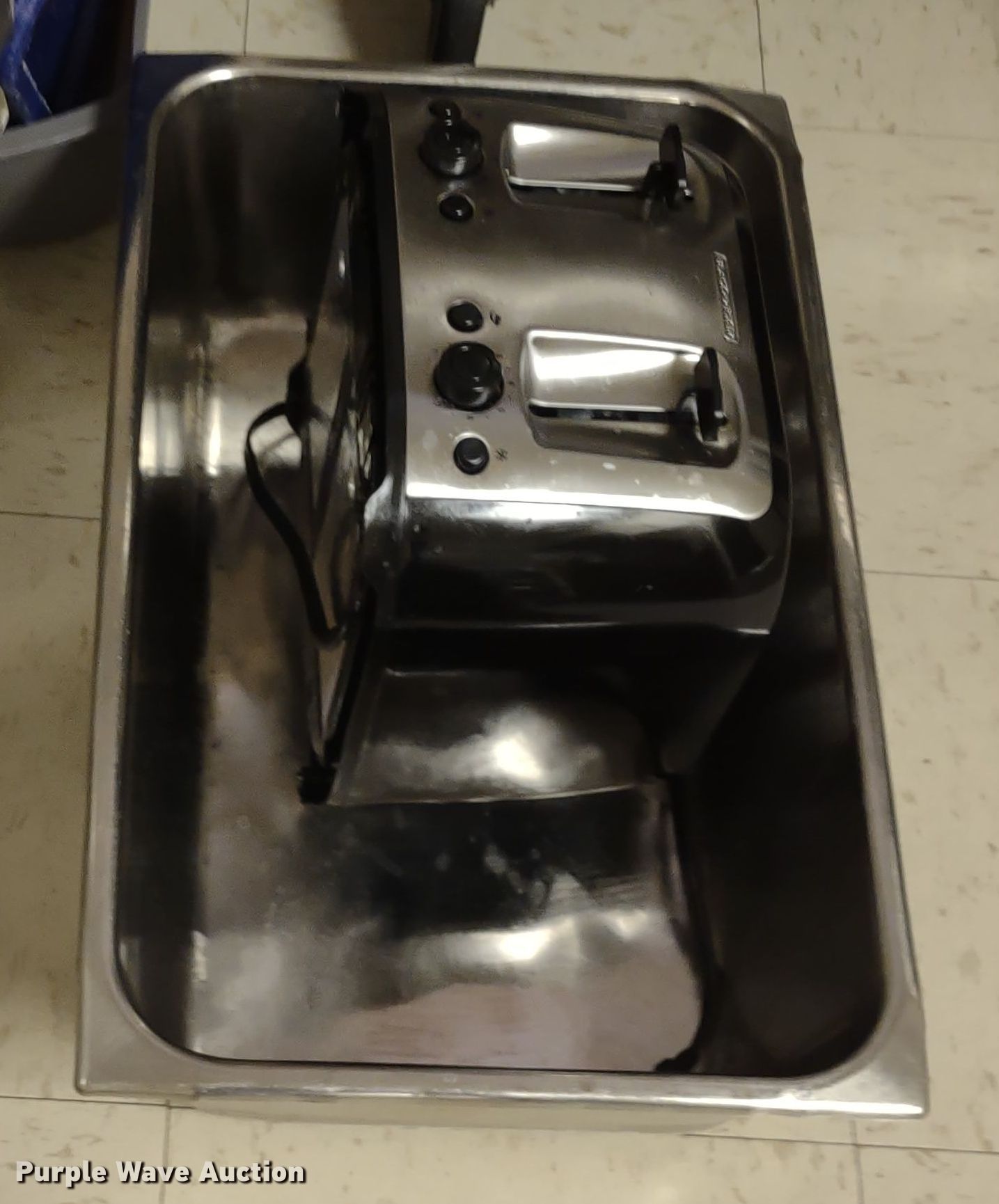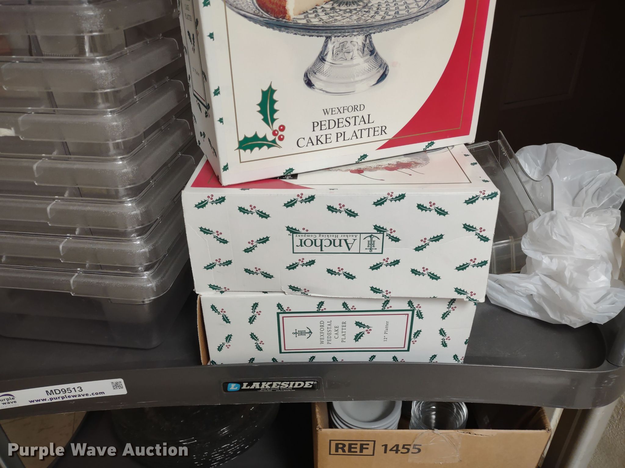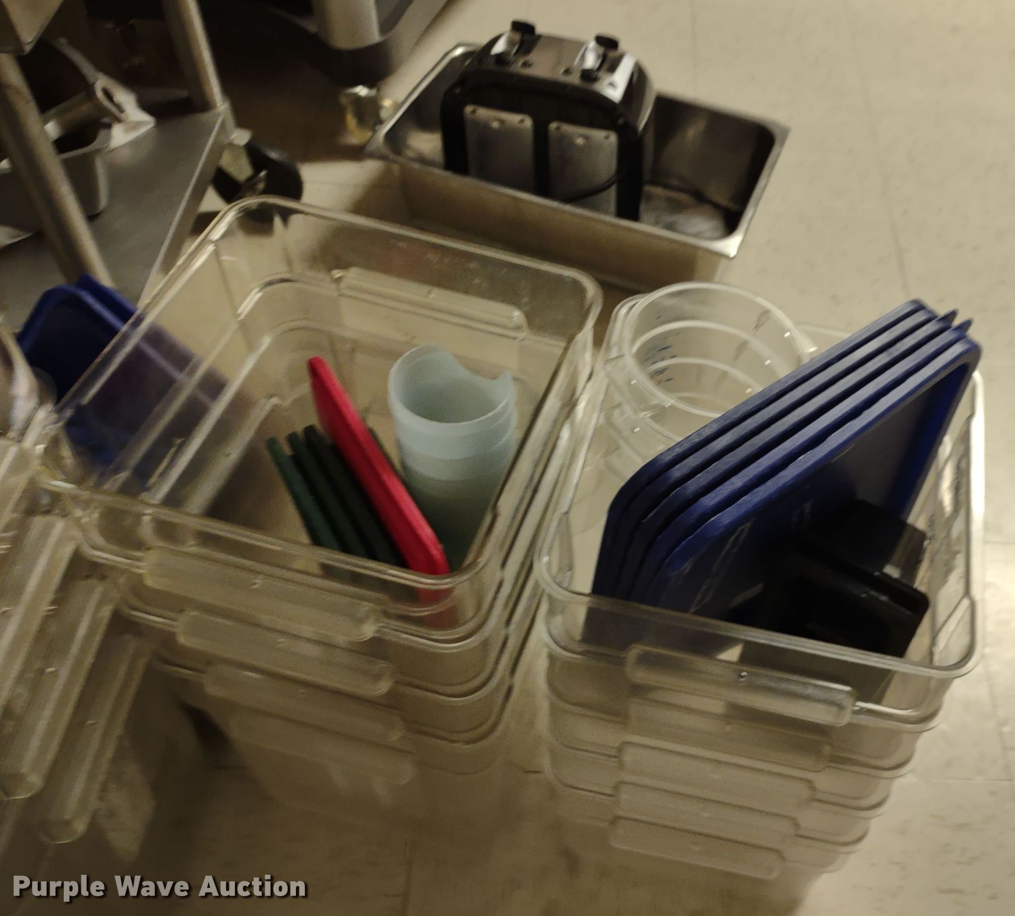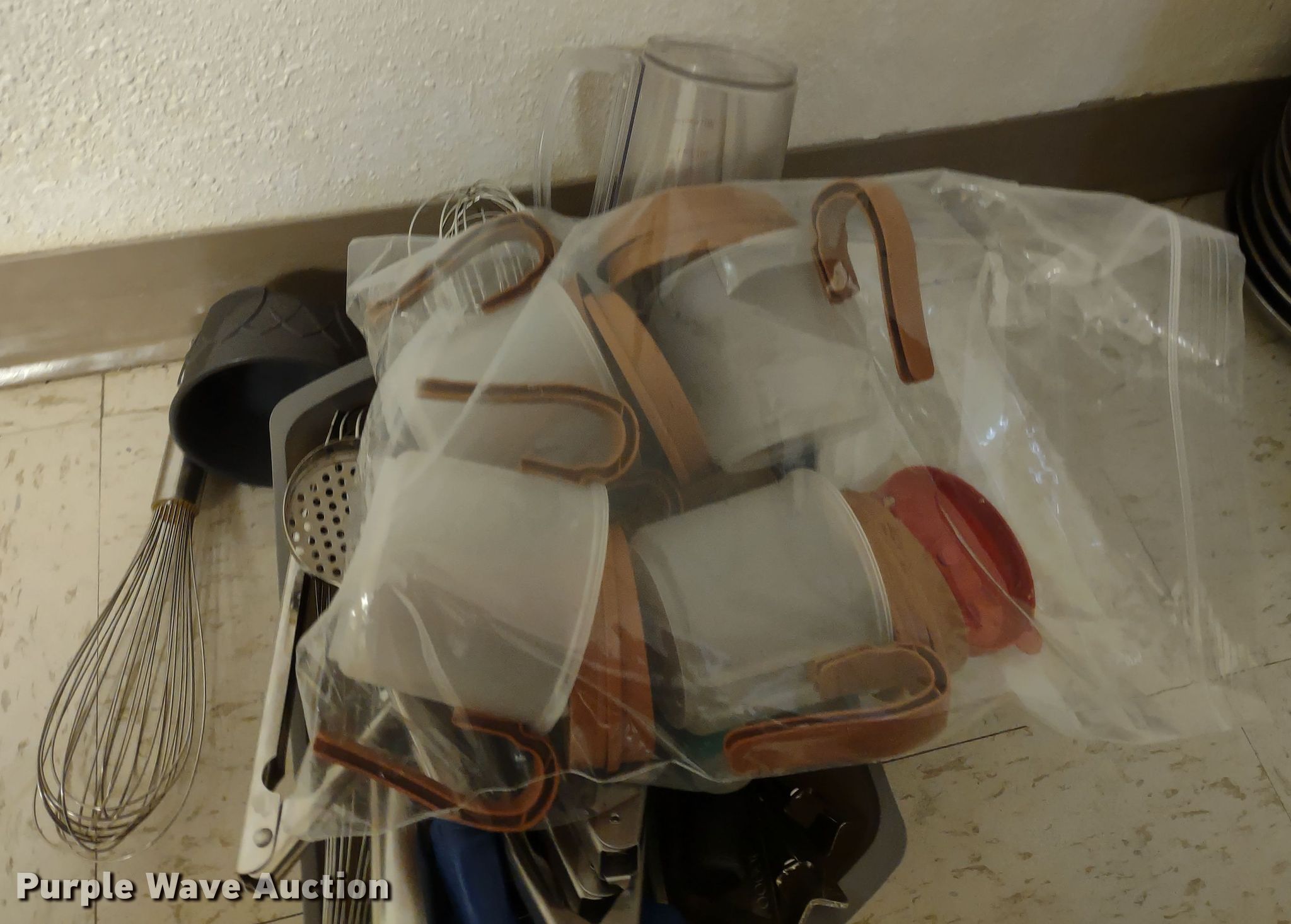 Purple Wave is selling a used All Other Household Items in Kansas. This item is a Kitchen appliances with the following: Hobart mixer, Ninja blender, Roaster pans, (3) Anchor cake platters, (2) Anchor punch sets, (3) carts, Meat slicer and more