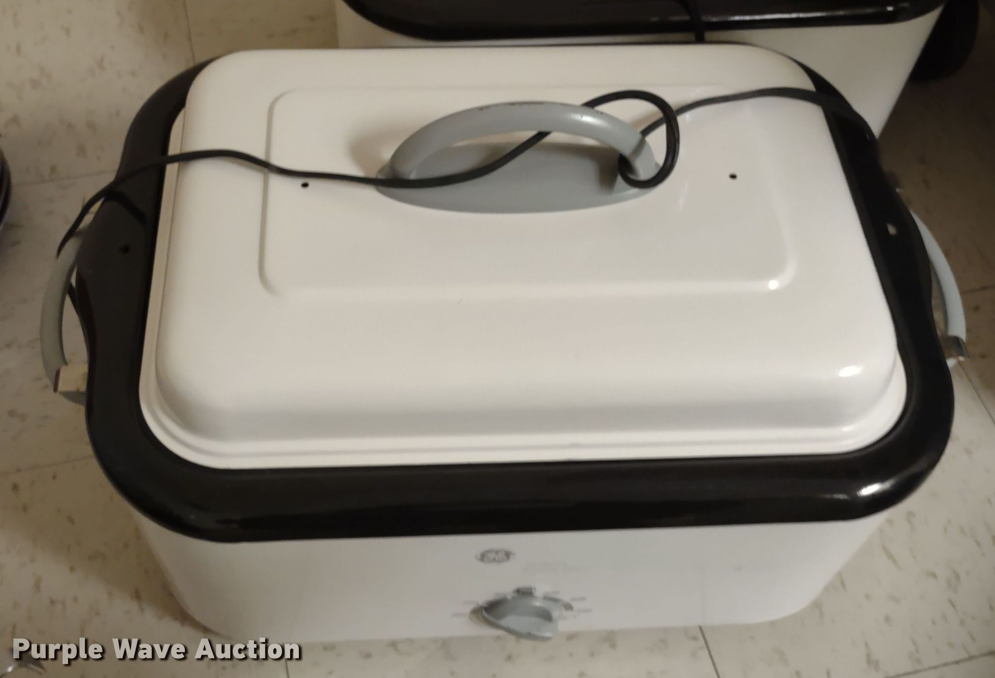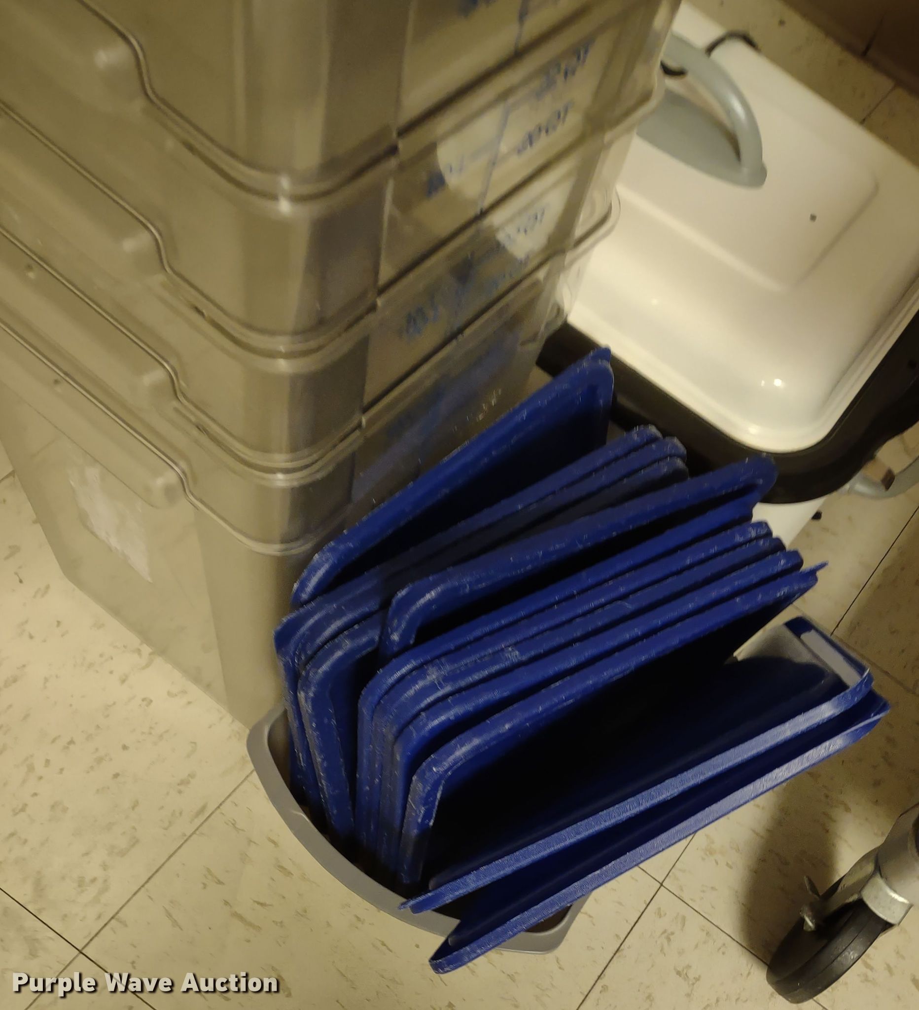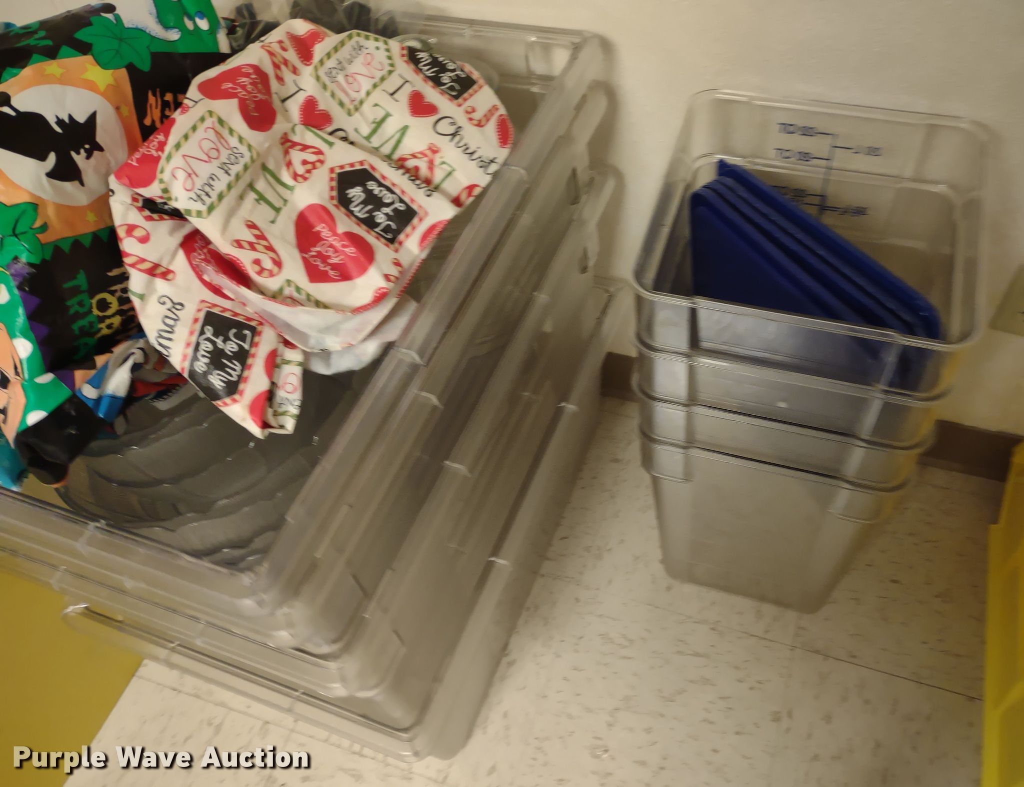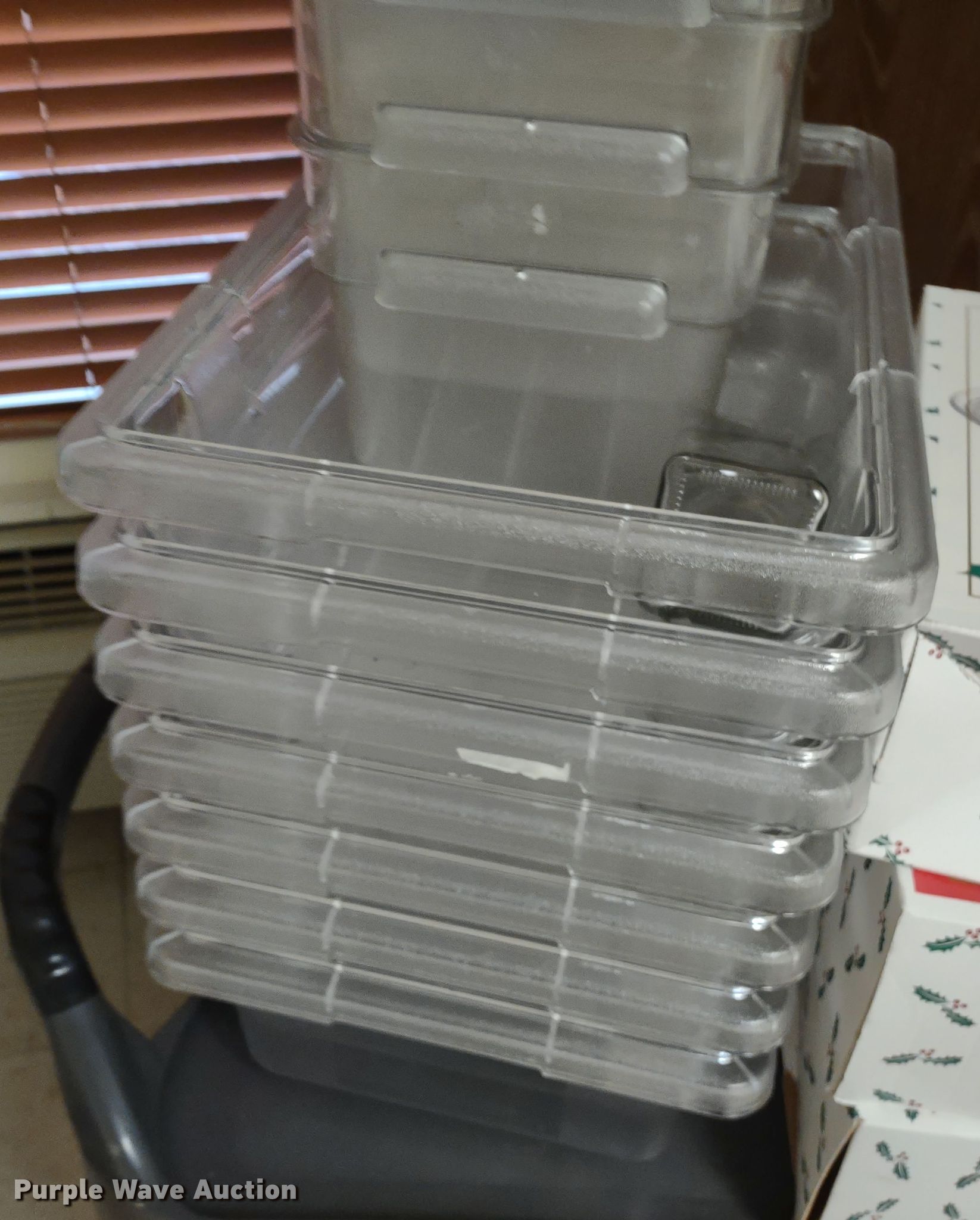 Purple Wave is selling a used All Other Household Items in Kansas. This item is a Kitchen appliances with the following: Hobart mixer, Ninja blender, Roaster pans, (3) Anchor cake platters, (2) Anchor punch sets, (3) carts, Meat slicer and more