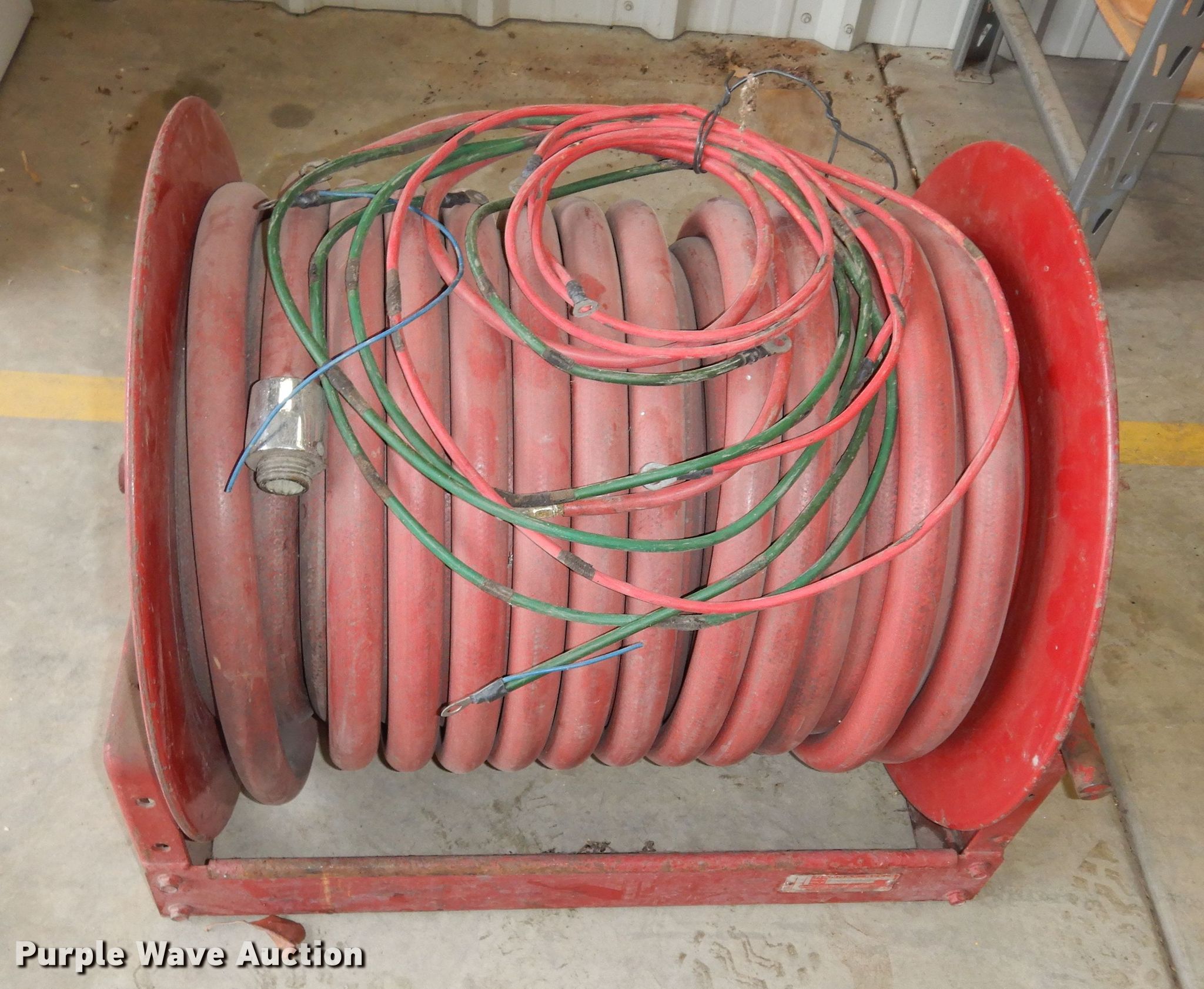 Purple Wave is selling a used Tools in Kansas. This item is a Hose reel with the following: Approx. 150'L hose