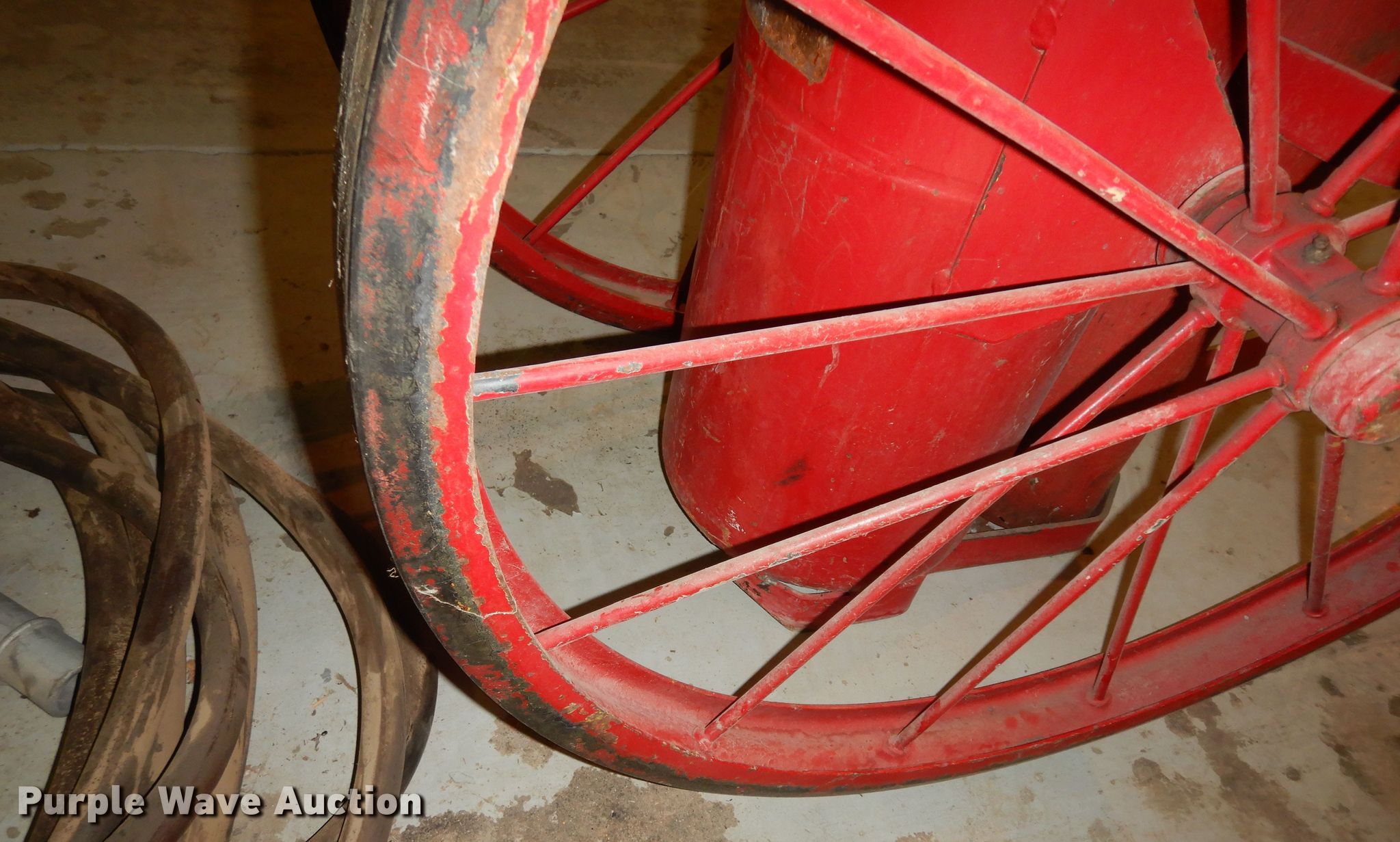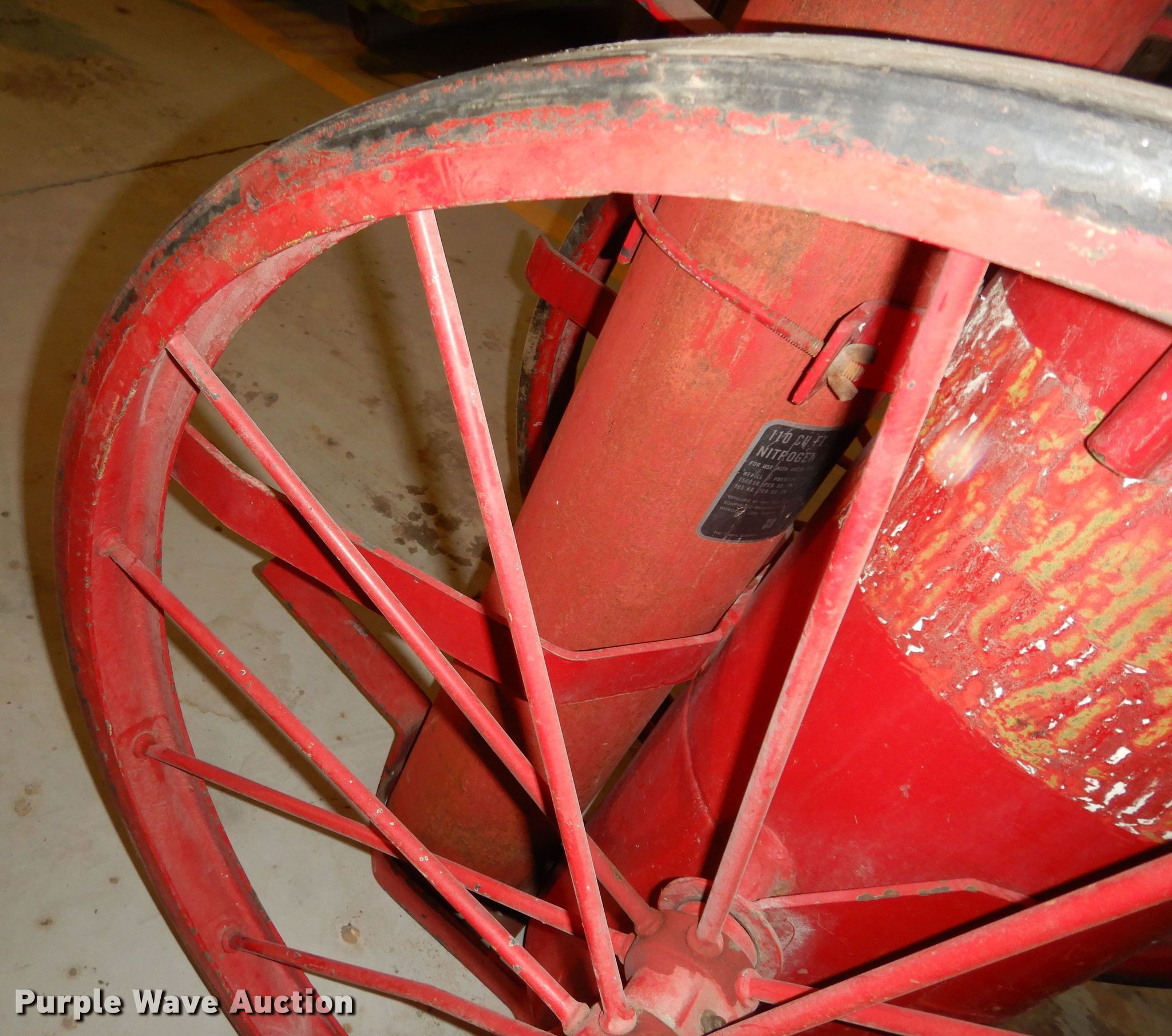 Dry chemical cart. Dry chemical tank, Nitrogen tank, 38" diameter wheels. City of Solomon. Solomon, KS 67480