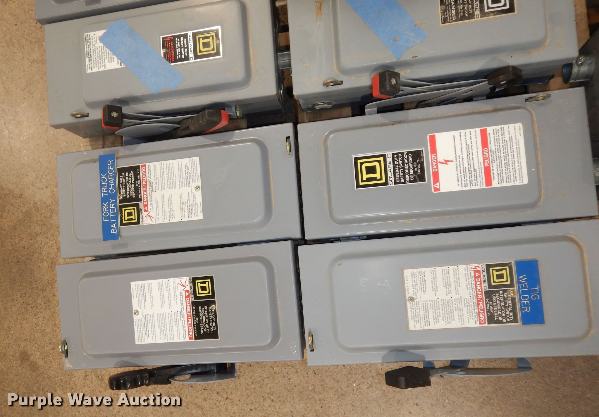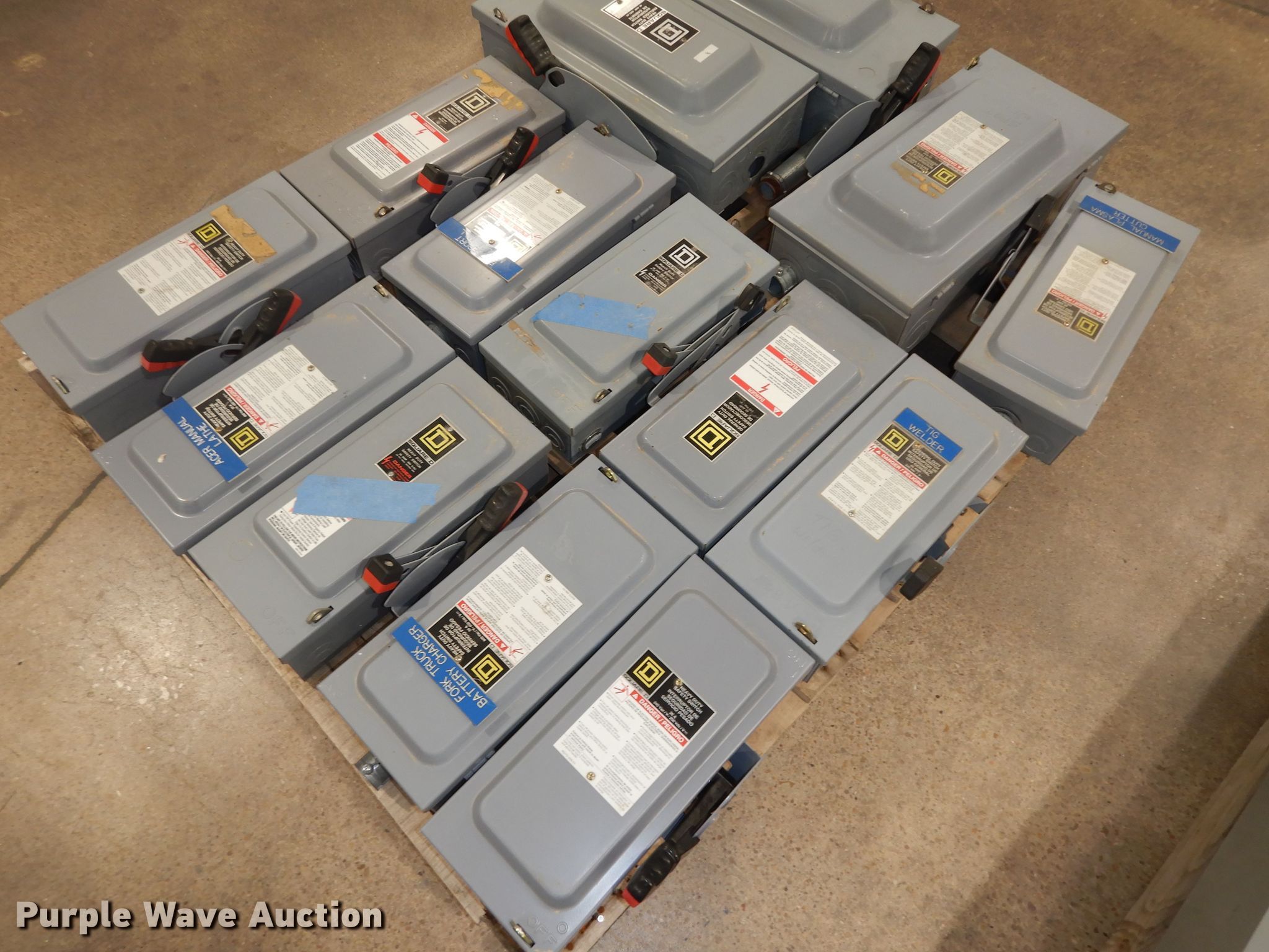 This (34) Square D safety switches will sell to the highest bidder regardless of price.