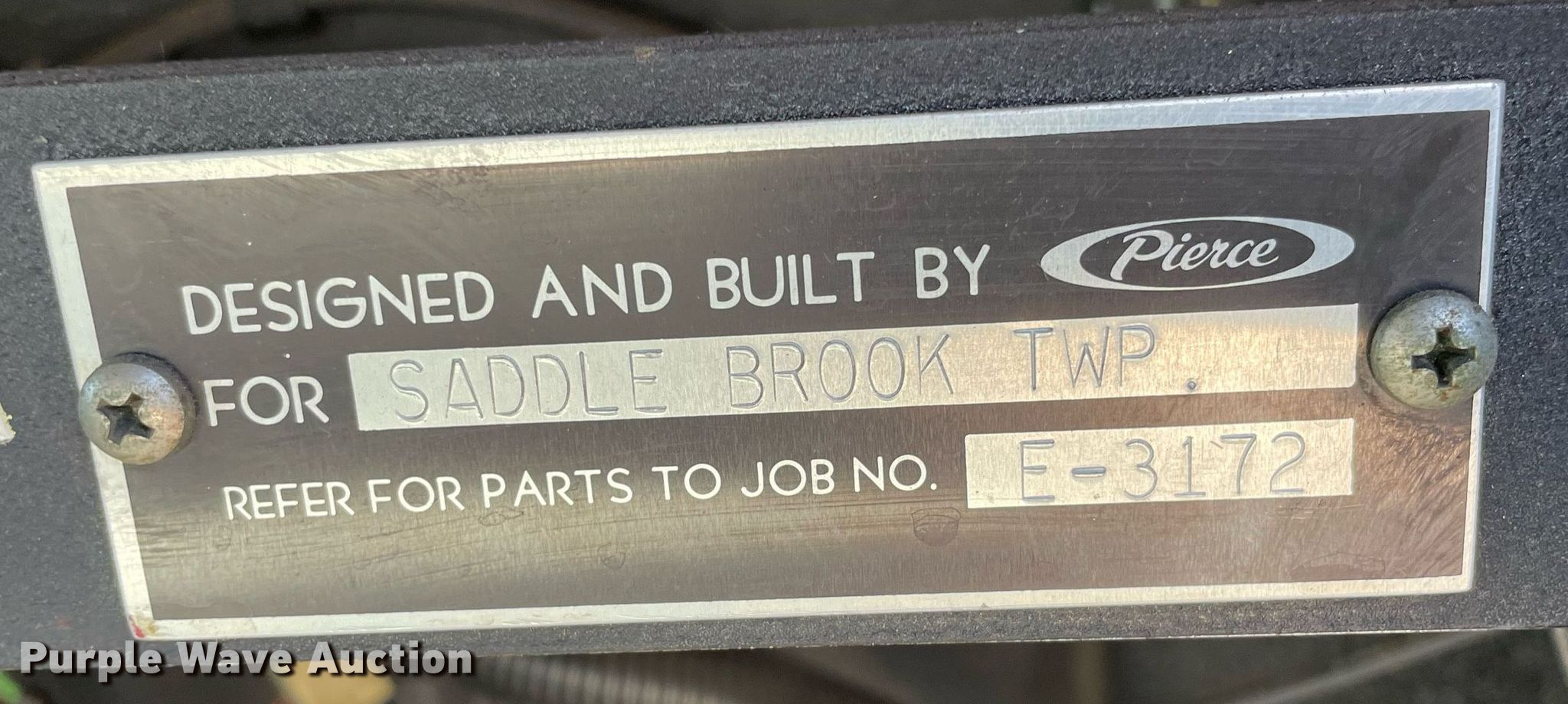 1986 Pierce E3172 fire truck. Miles: 31,779 on odometer, VIN: 1P9CA01D6GA040525. Engine Detroit Diesel, Cylinders: 6, Fuel type: Diesel. Transmission Automatic. Chassis Axles: Single, Suspension: Spring, Brakes: Air, GVWR: 37,180 lbs. Interior Heat. Features Fire truck body Pump 1,250 gpm, PA/ siren controls. Tires Size: 11.00R20. Kansas title. Title distribution may be delayed up to 14 days from verification of funds. Reno County Rural Fire Dept. Partridge, KS 67566