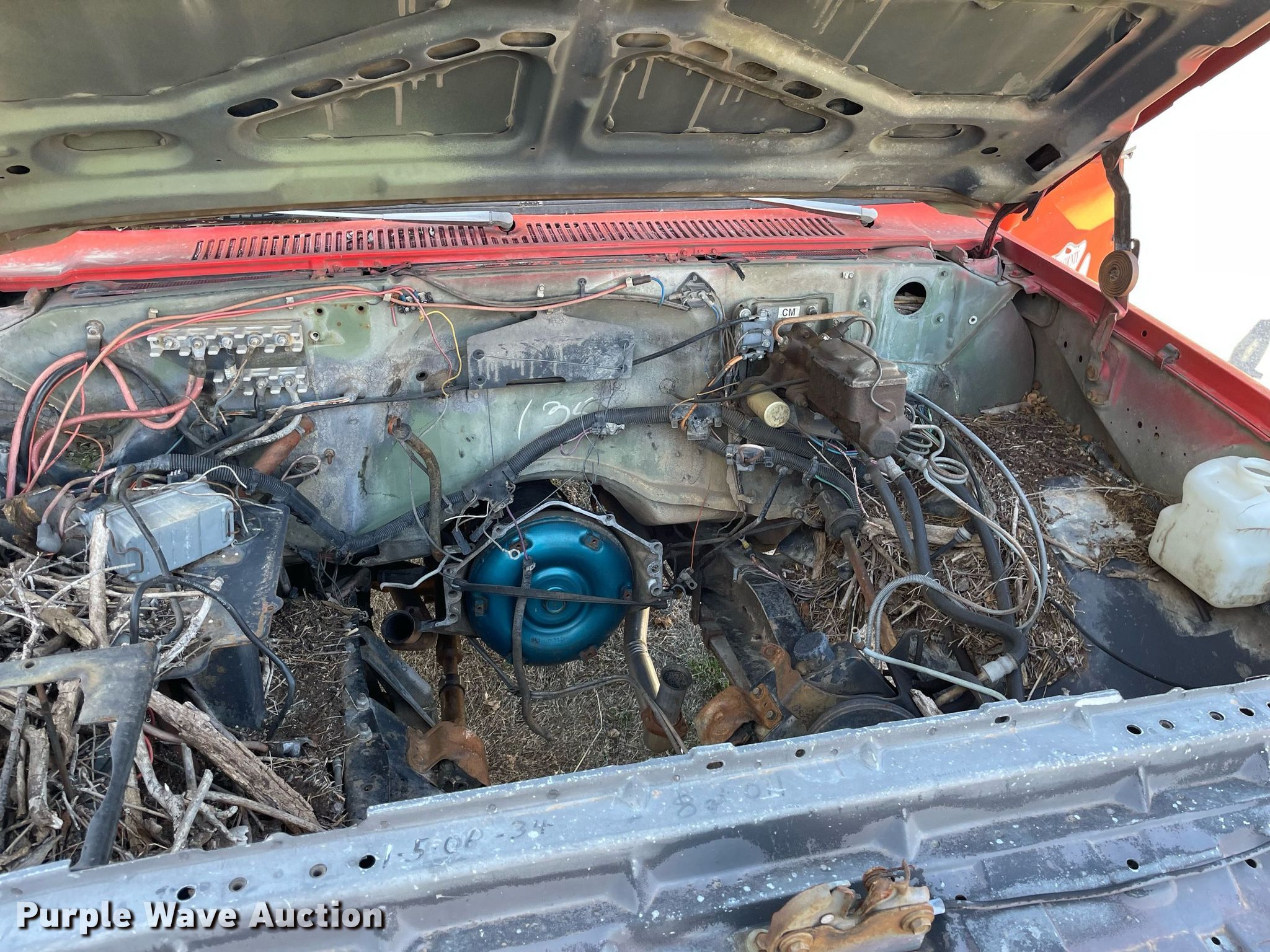 1984 Chevrolet D30 pickup truck. Miles: Unknown, VIN: 1GCGD34J3EF382424. Engine No engine. Transmission Automatic, Four wheel drive. Interior Heat. Tires Front: 235/85R16, Rear: 245/75R16. Notes Parts missing, Windshield chipped or cracked, Non-operational unit. Kansas title. Title distribution may be delayed up to 14 days from verification of funds. Reno CO Dist 4. Arlington, KS 67514
