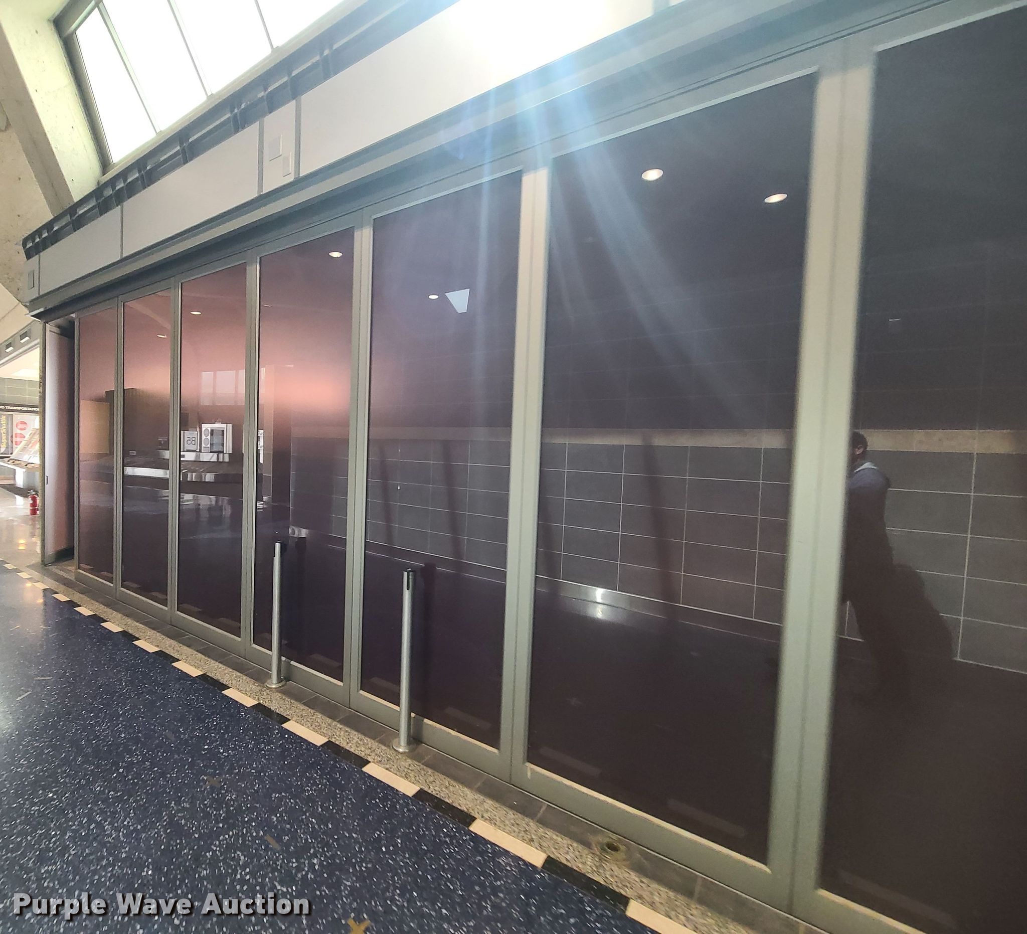 Retractable glass wall. (9) 42" x 9.5' panels, Door. All aspects of disassembly and removal are the sole responsibility of the purchaser. KCI Airport, City of Kansas City. Kansas City, MO 64153