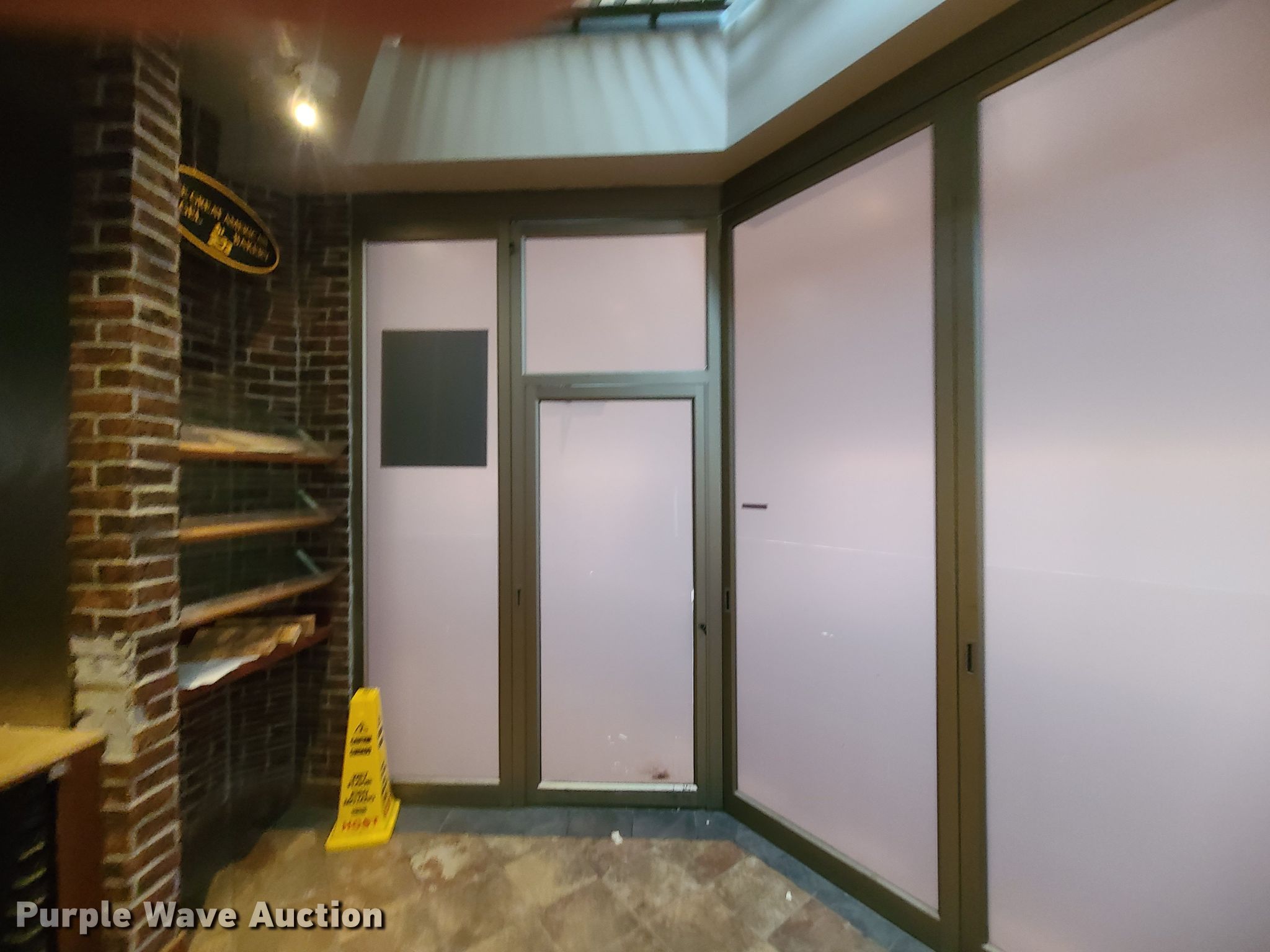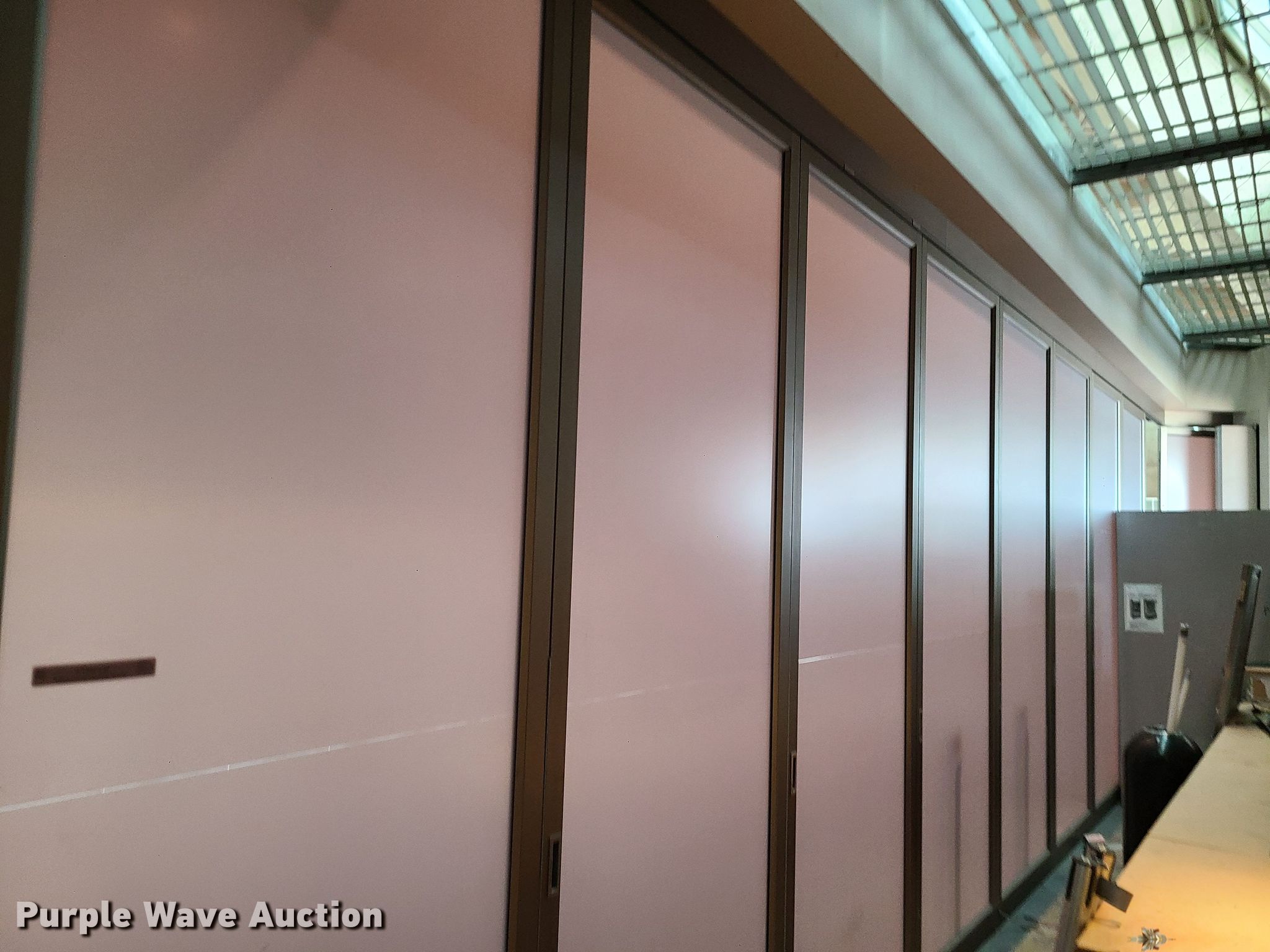 Purple Wave is selling a used Building Materials in Missouri. This item is a Retractable glass wall with the following: (9) 42" x 9.5' panels, Door