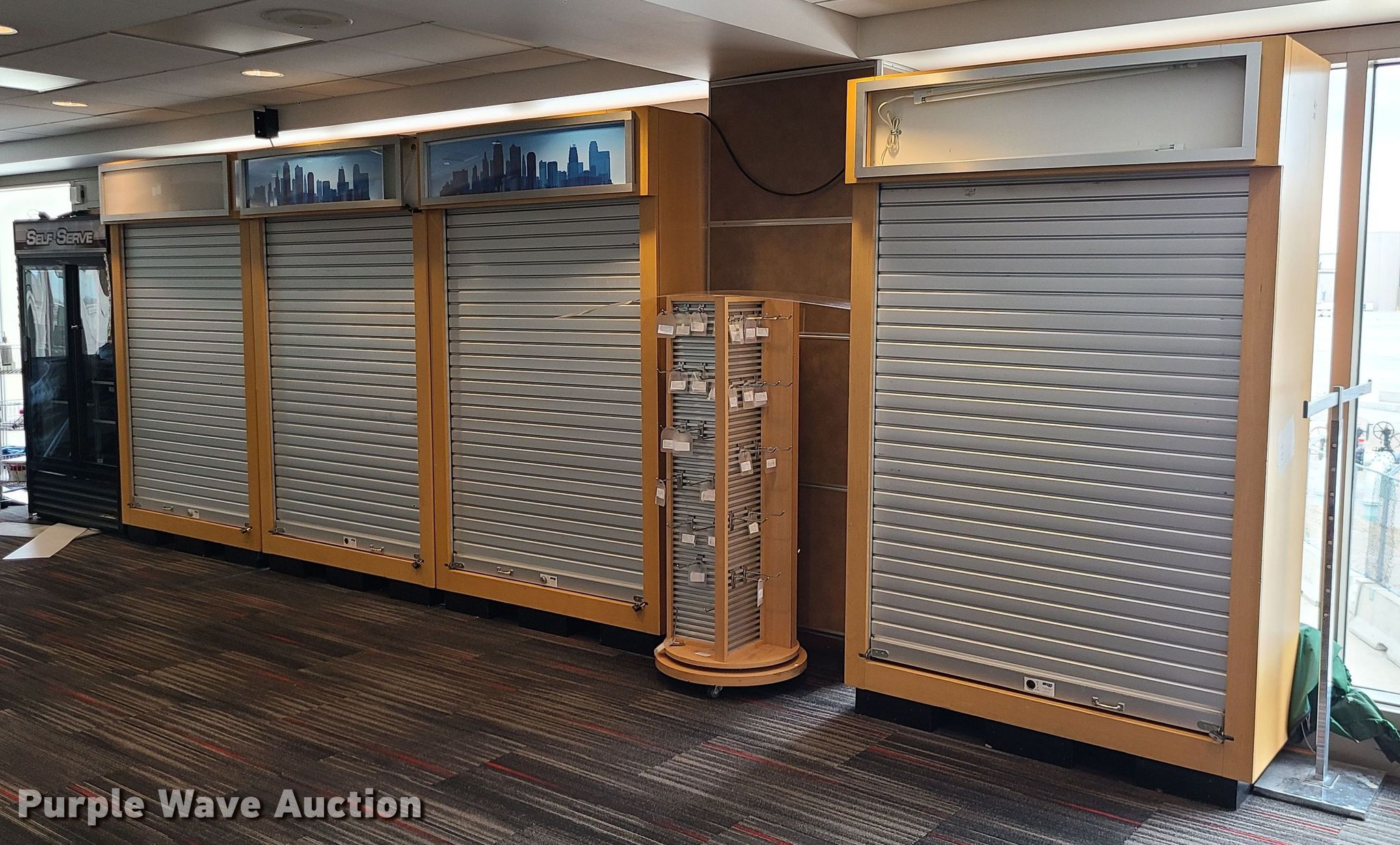 Purple Wave is selling a used Furniture in Missouri. This item is a Furniture with the following: Tables, Shelves, Cabinets, Kitchen areas, Unit #: Gates 34-45