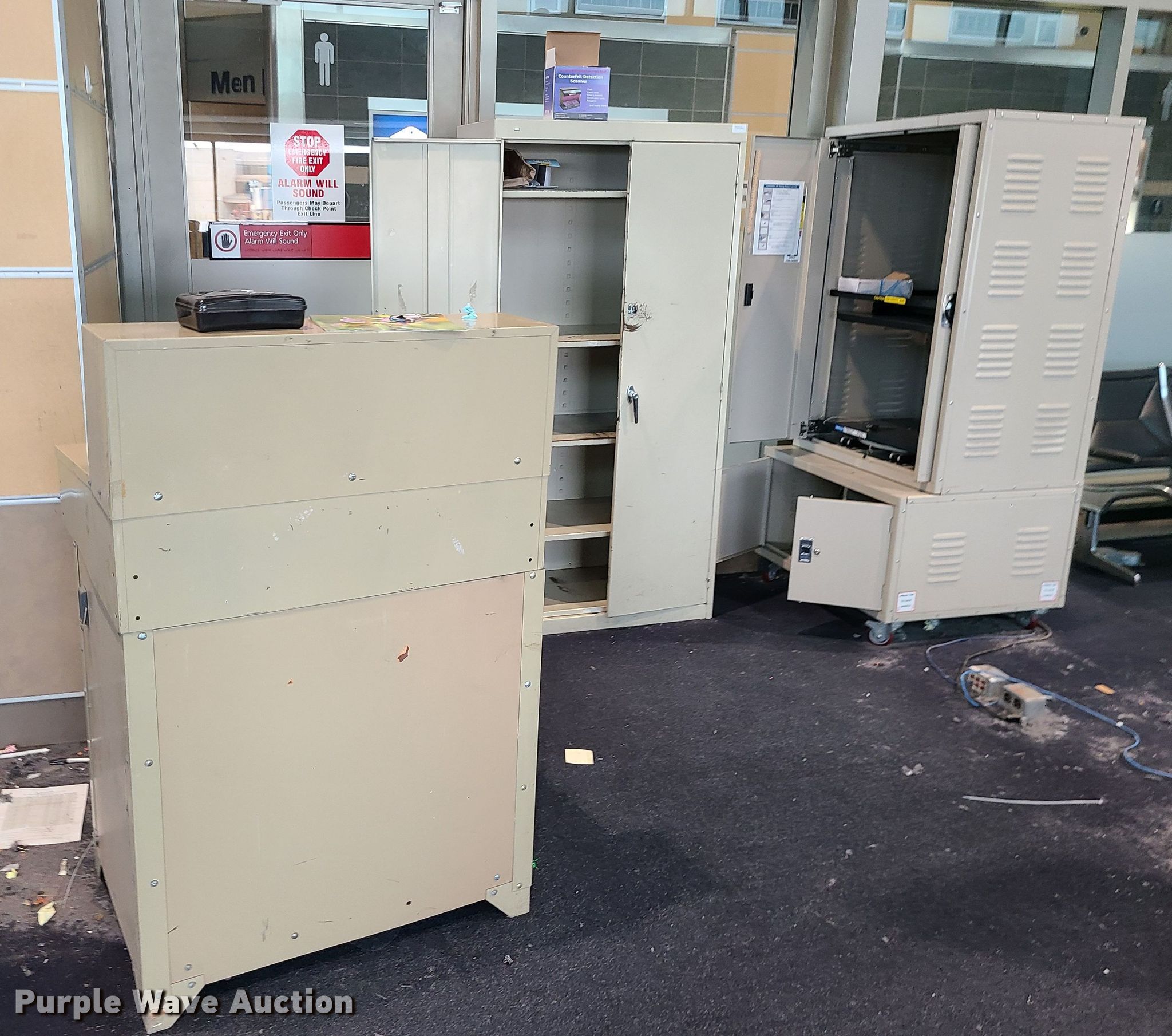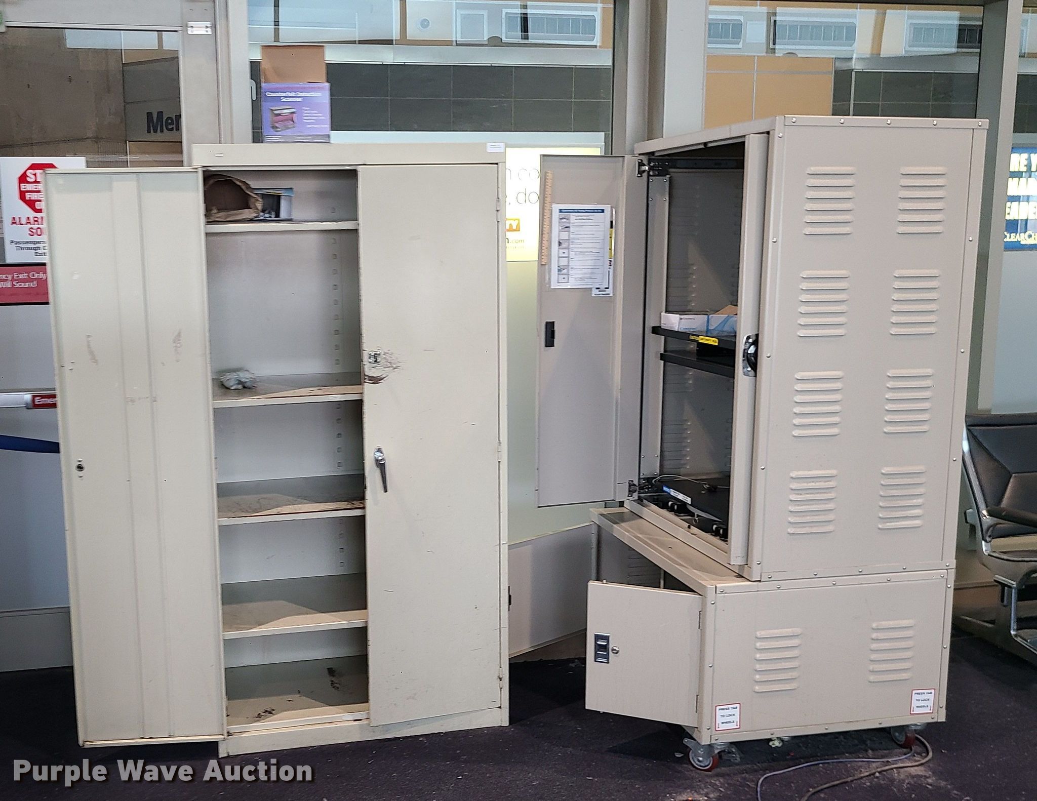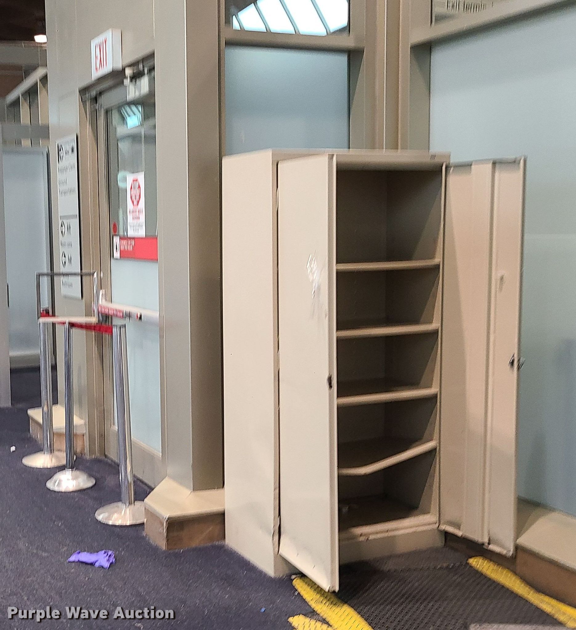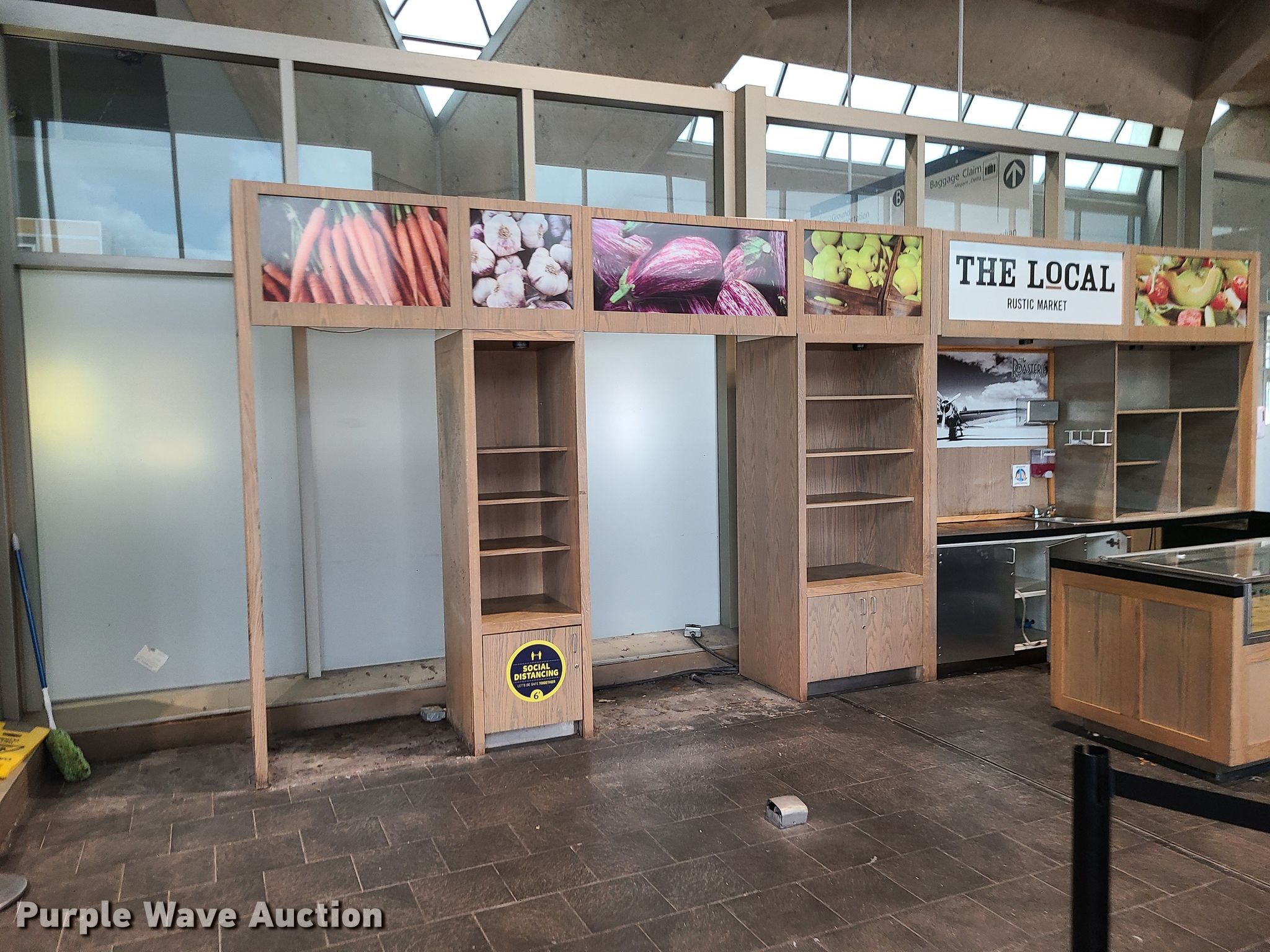 Purple Wave is selling a used Furniture in Missouri. This item is a Furniture with the following: Tables, Cabinets, Displays, Cooler, Kitchen area, Unit #: Gates 56-60