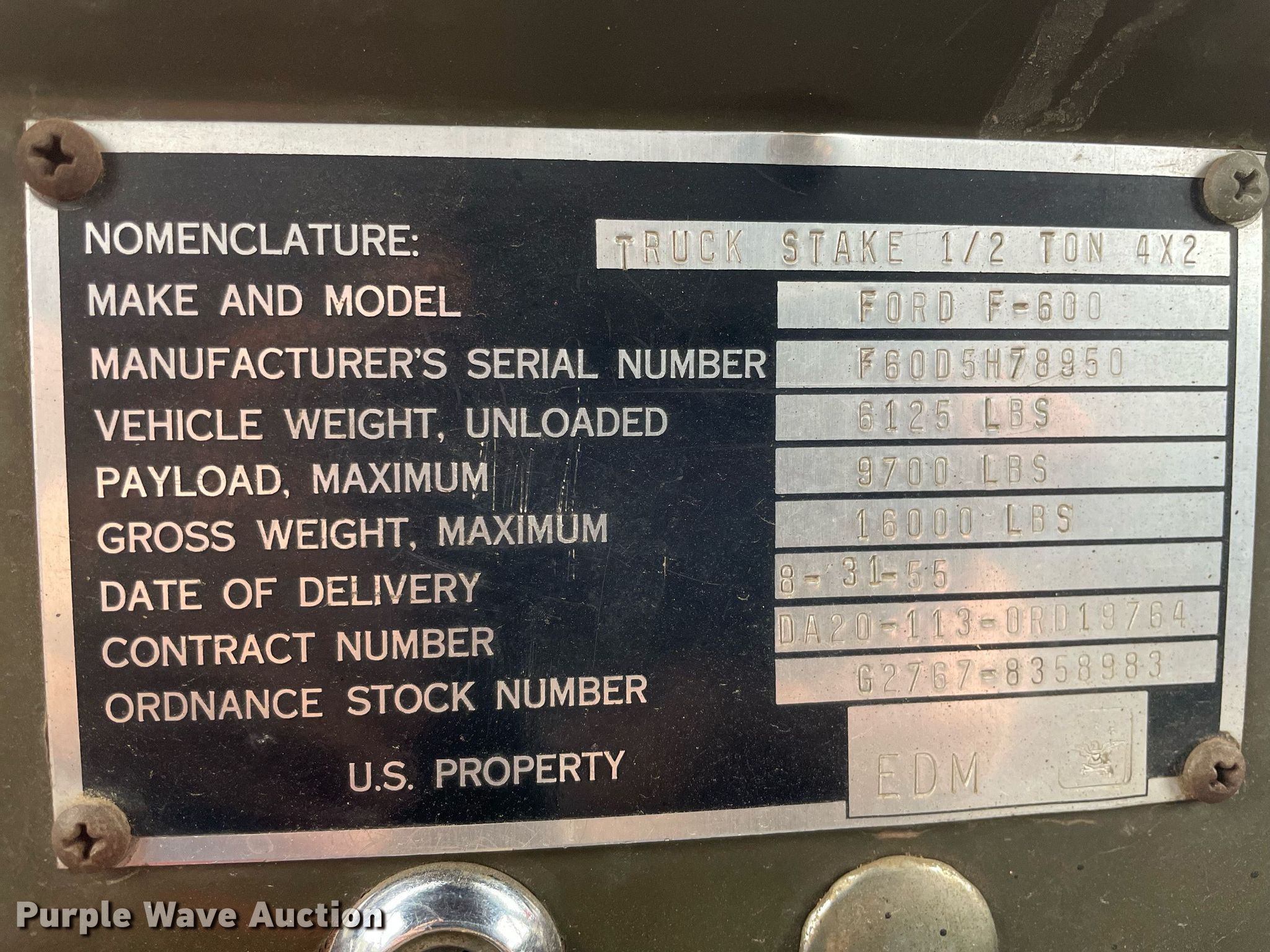 Purple Wave is selling a used Construction Dump Truck in Kansas. This item is a 1955 Ford F600 dump truck with the following: Miles: 73,583 on odometer, VIN: F60D5H78950
