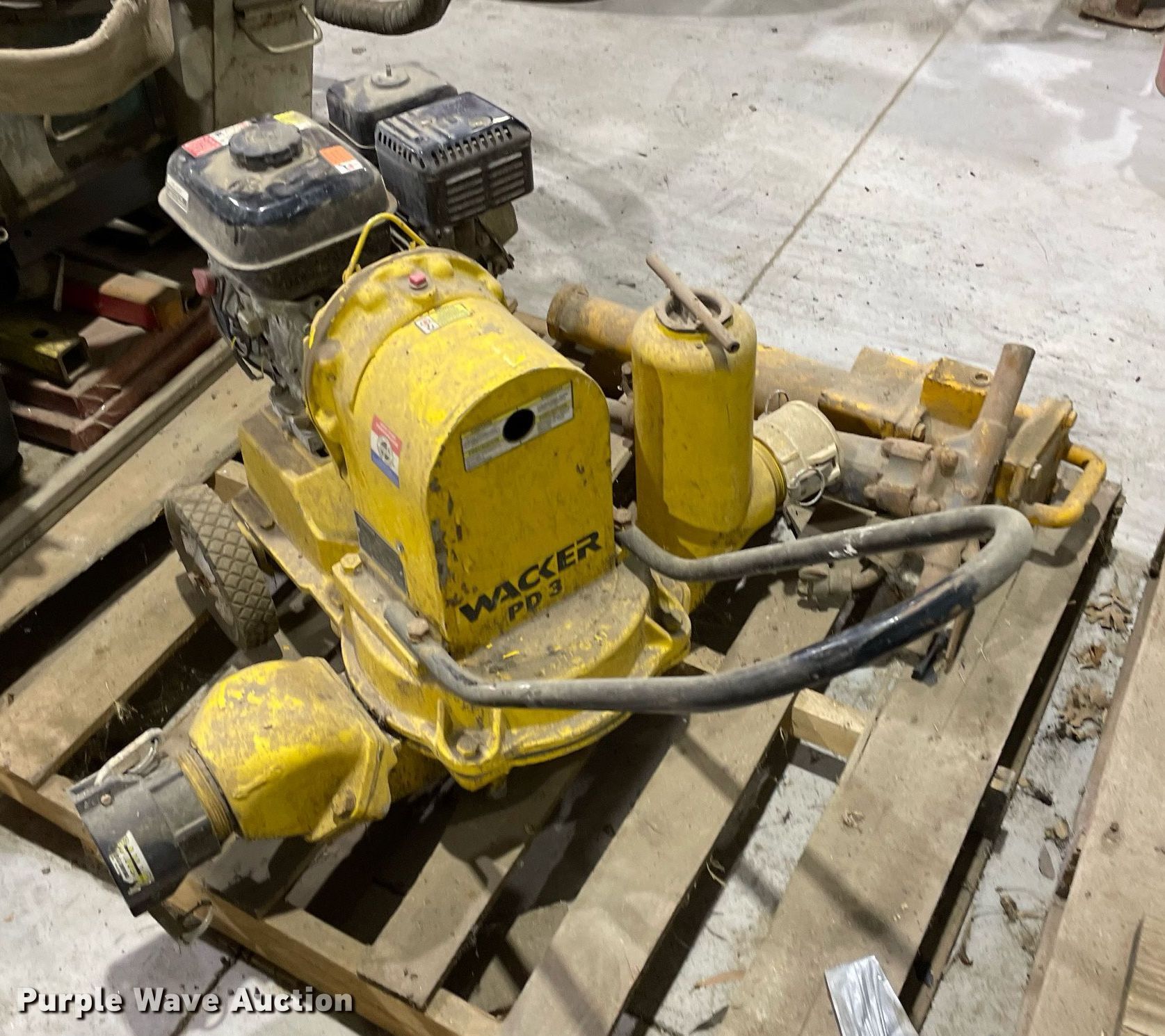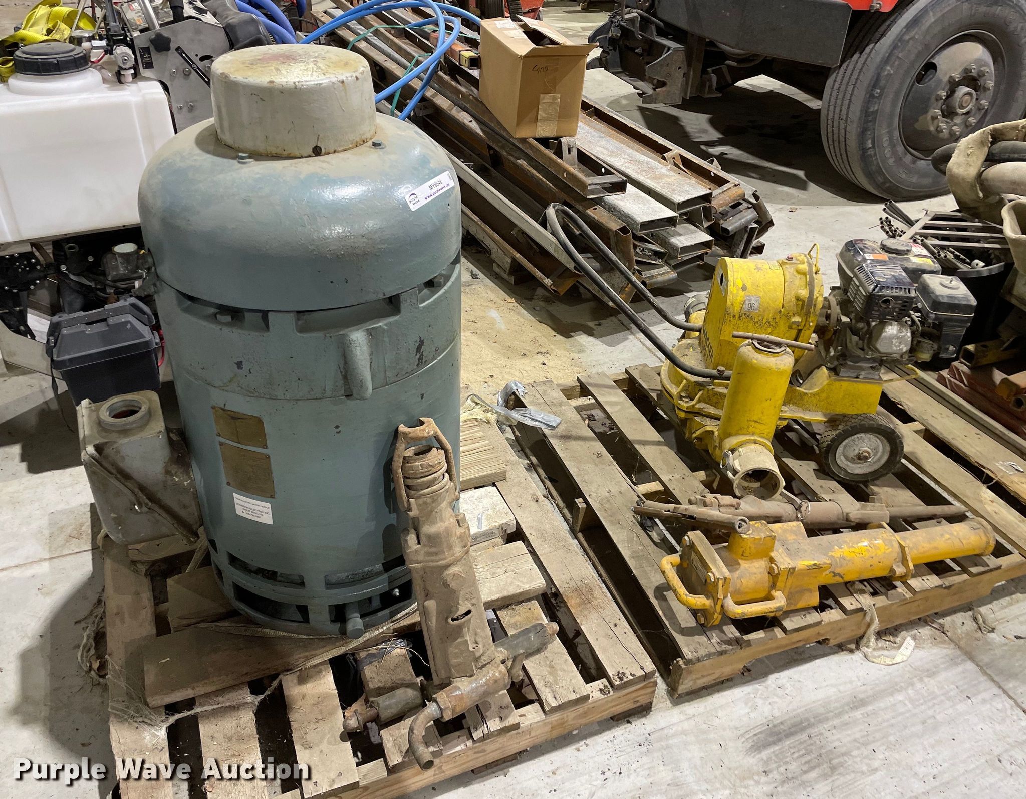 Purple Wave is selling a used Electric Motor in Kansas. This item is a Tools with the following: General Electric 5K445XA91A electric motor, HP: 75, Volts: 440, Phase: Three, Wacker PDT3A pump, 88 GPM, Pull start string missing, (3) jack hammers