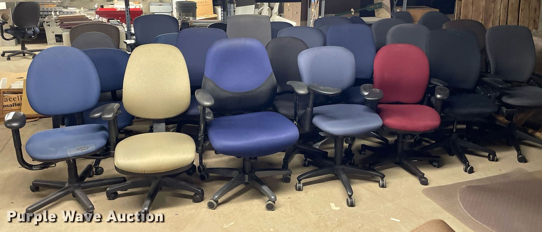 Purple Wave is selling a used Furniture in Kansas. This item is a Approximately 27 chairs with the following: Approximately 27 chairs. Sedgwick County. 525 N Main St. Wichita, KS 67203