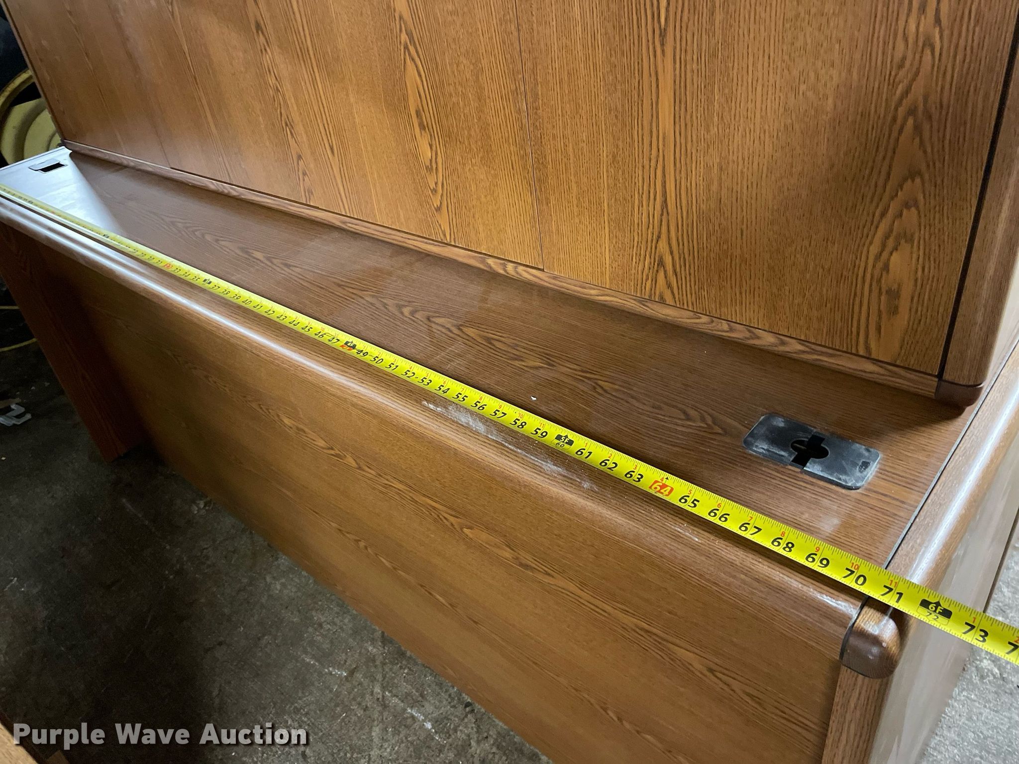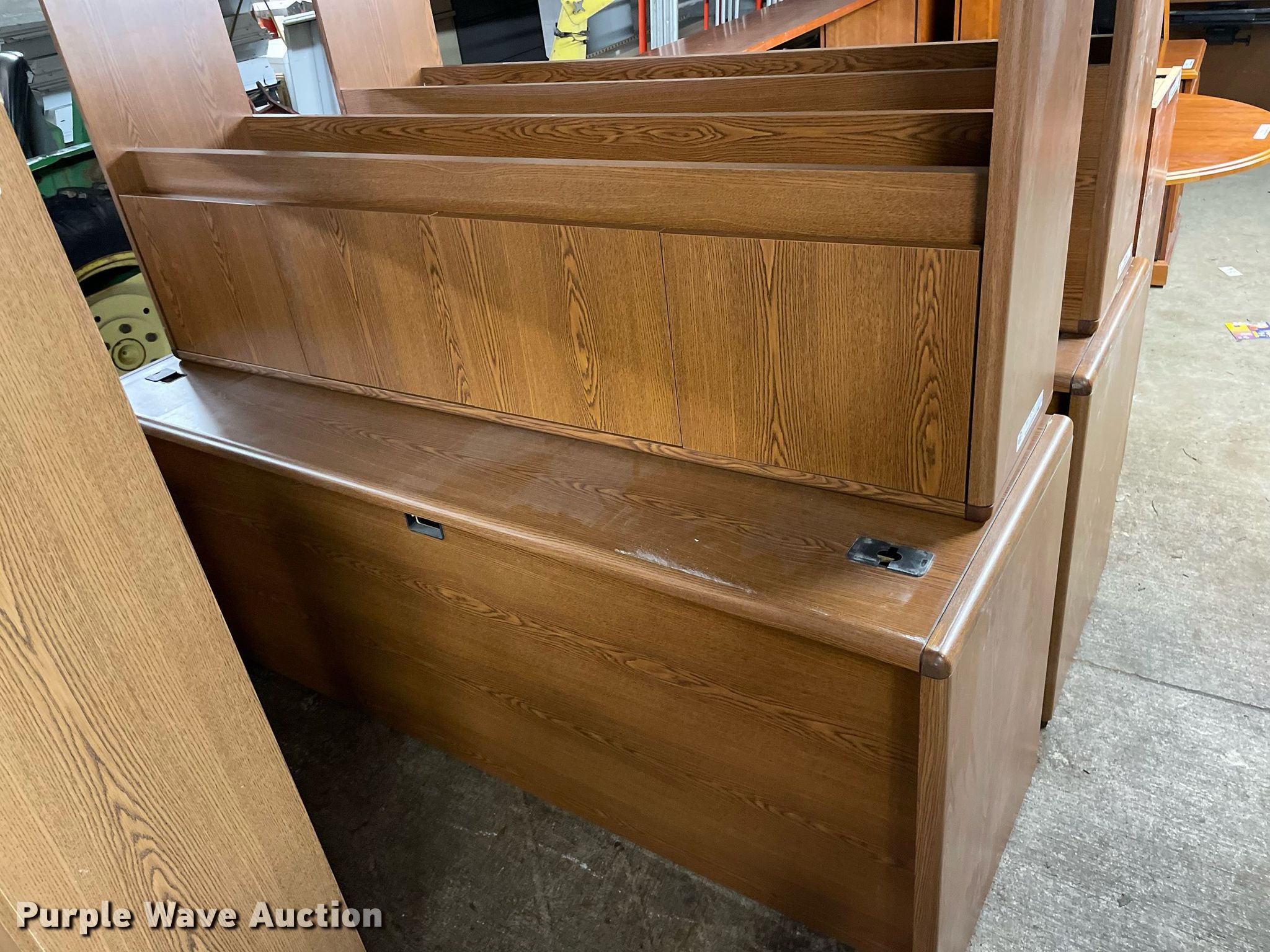 Purple Wave is selling a used Furniture in Kansas. This item is a Furniture with the following: (2) desks, Credenzas, Hutch tops, Oval return, Desktop organizer, Two drawer file cabinet