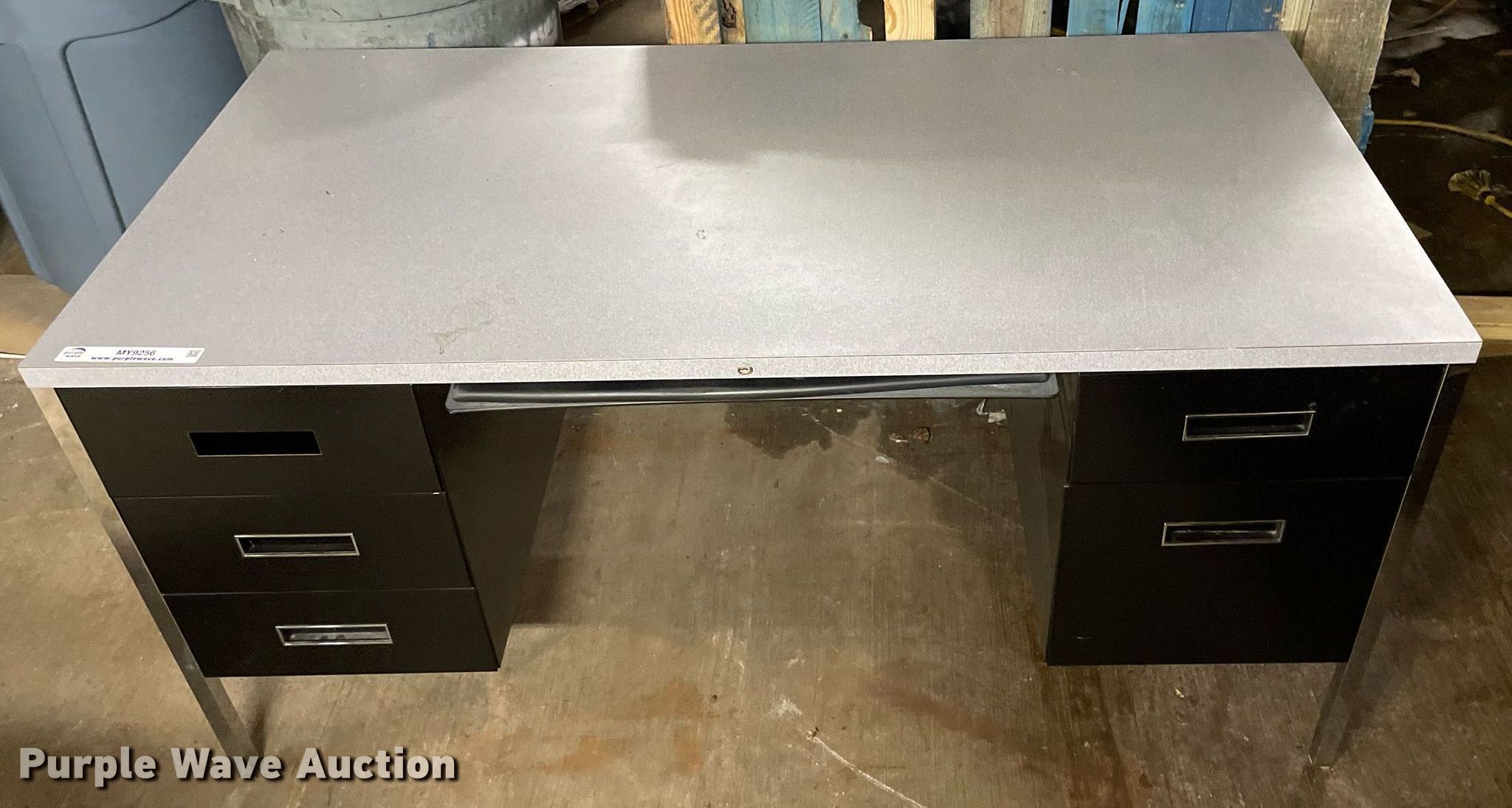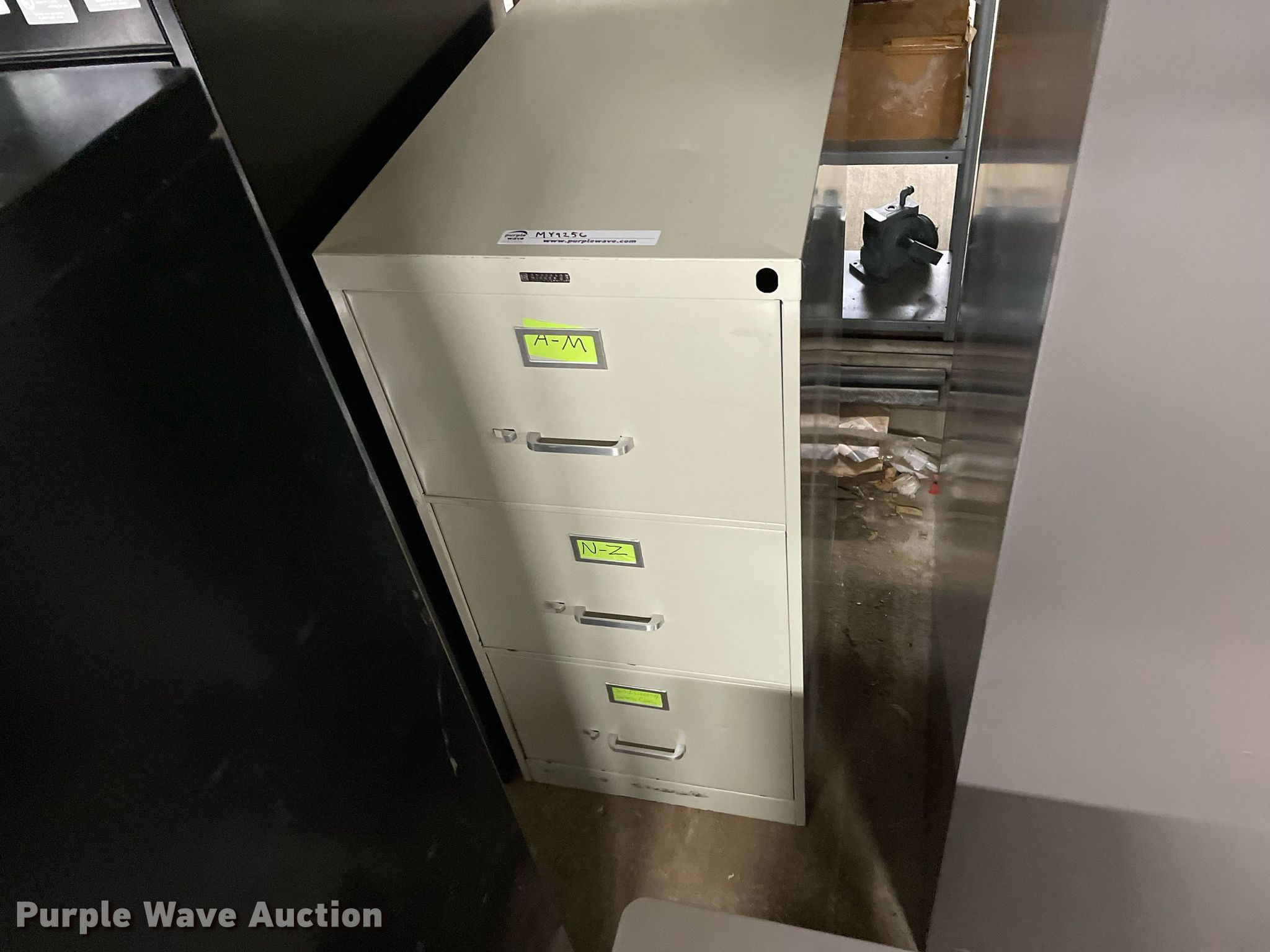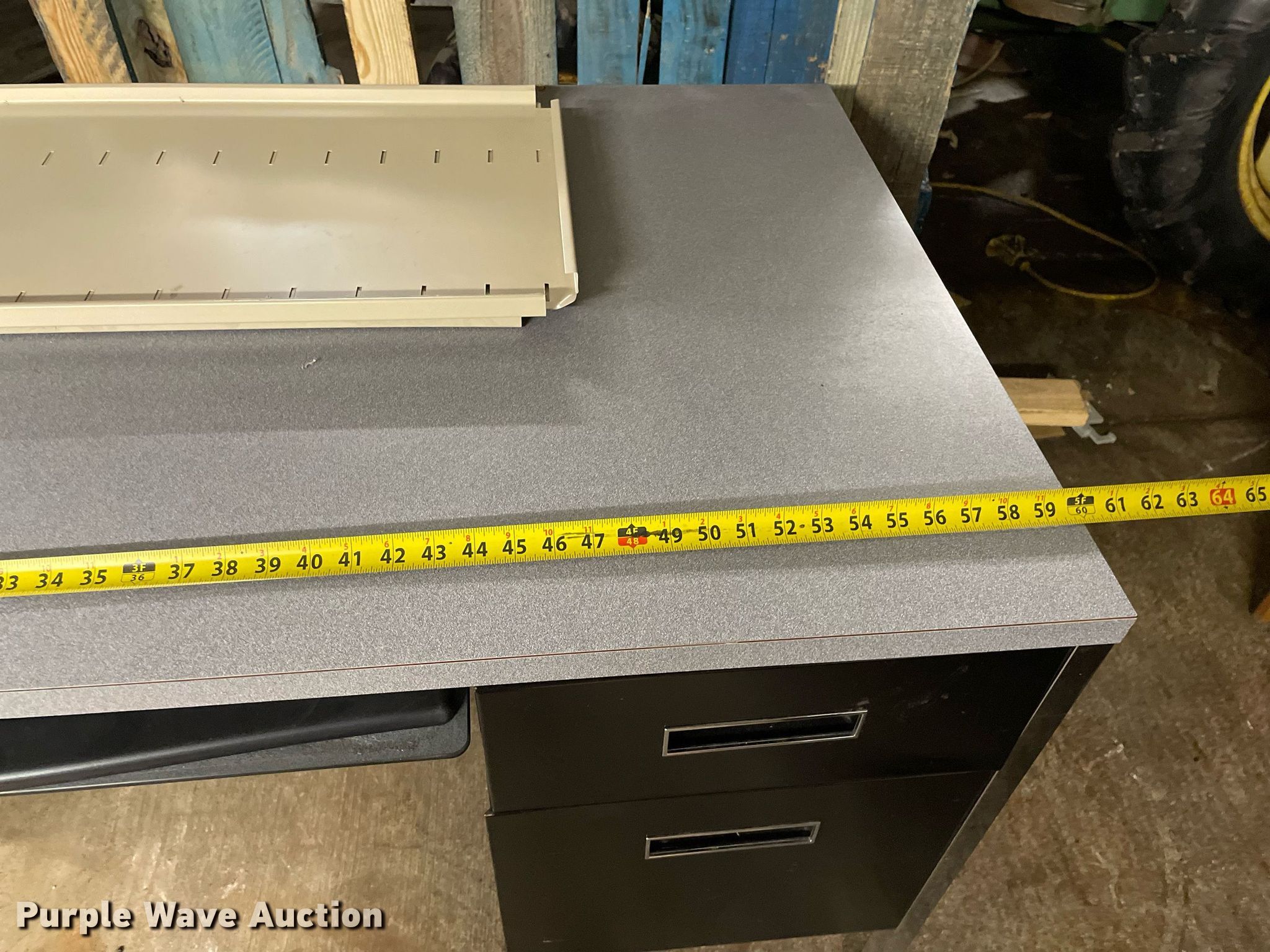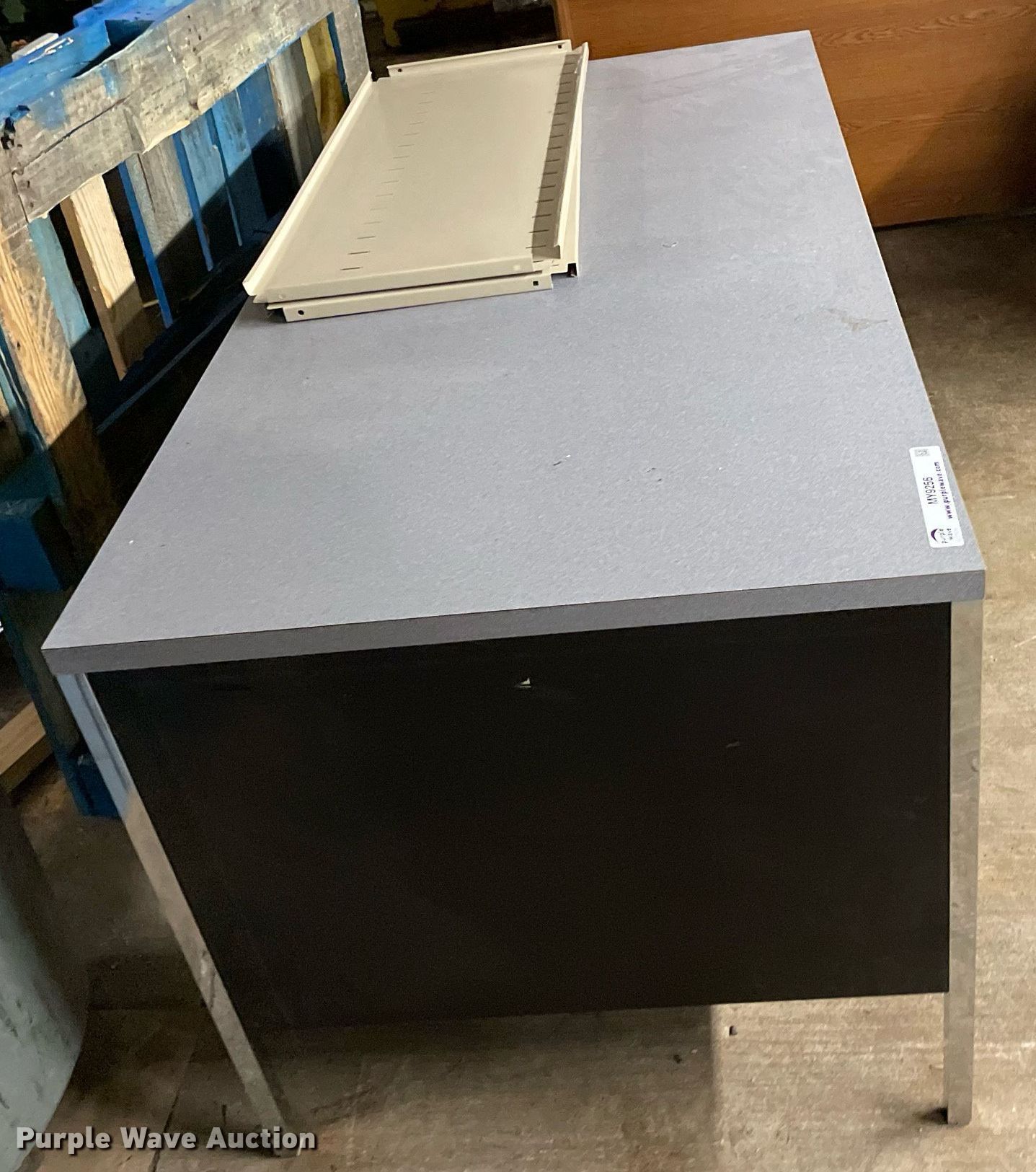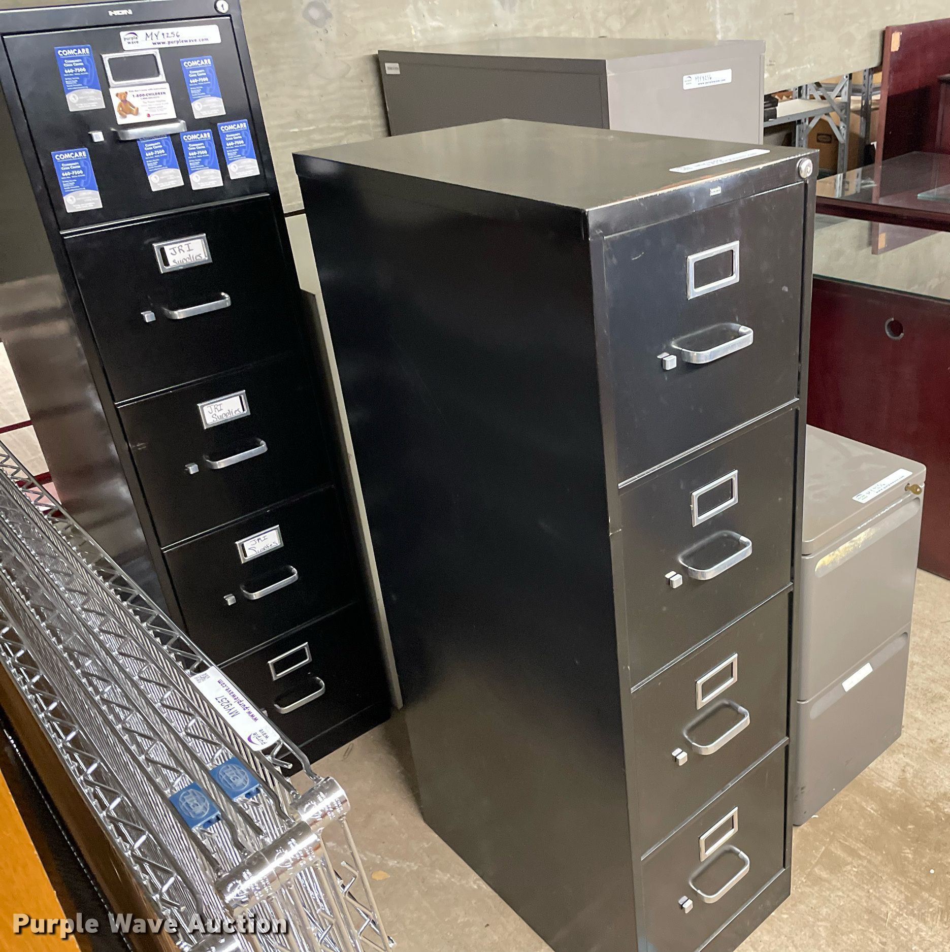 Purple Wave is selling a used Furniture in Kansas. This item is a Furniture with the following: Desk, Four drawer lateral file cabinet, Three drawer legal file cabinet, Hon five drawer letter file cabinet, Hon four drawer letter file cabinet, Two drawer file cabinet