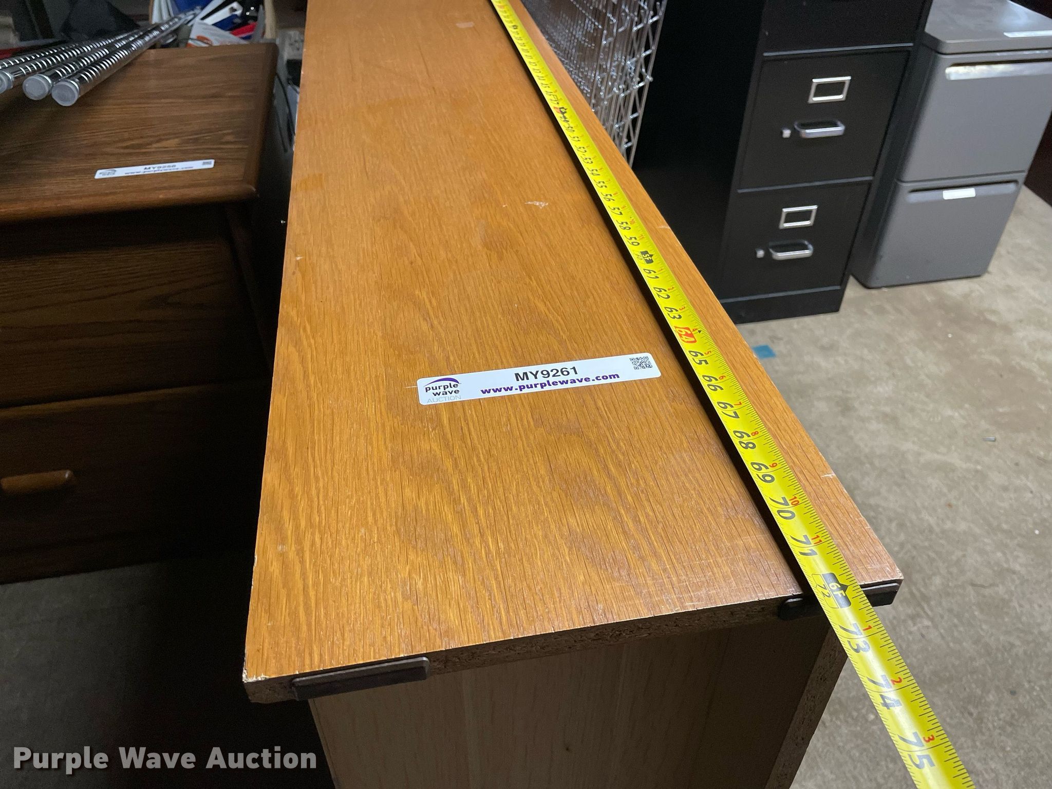 Purple Wave is selling a used Furniture in Kansas. This item is a Wood bookcase with the following: 36" x 12" x 72"H, (6) shelves