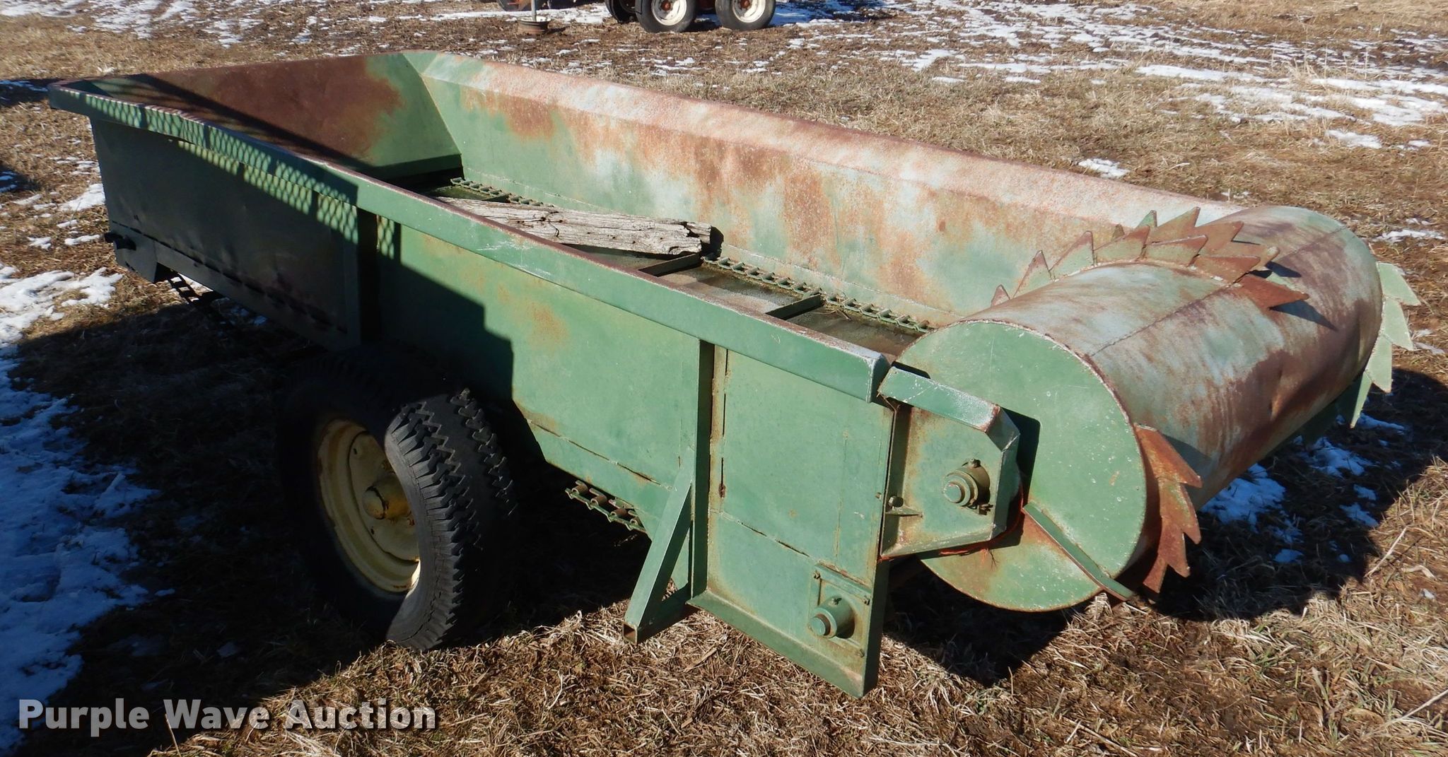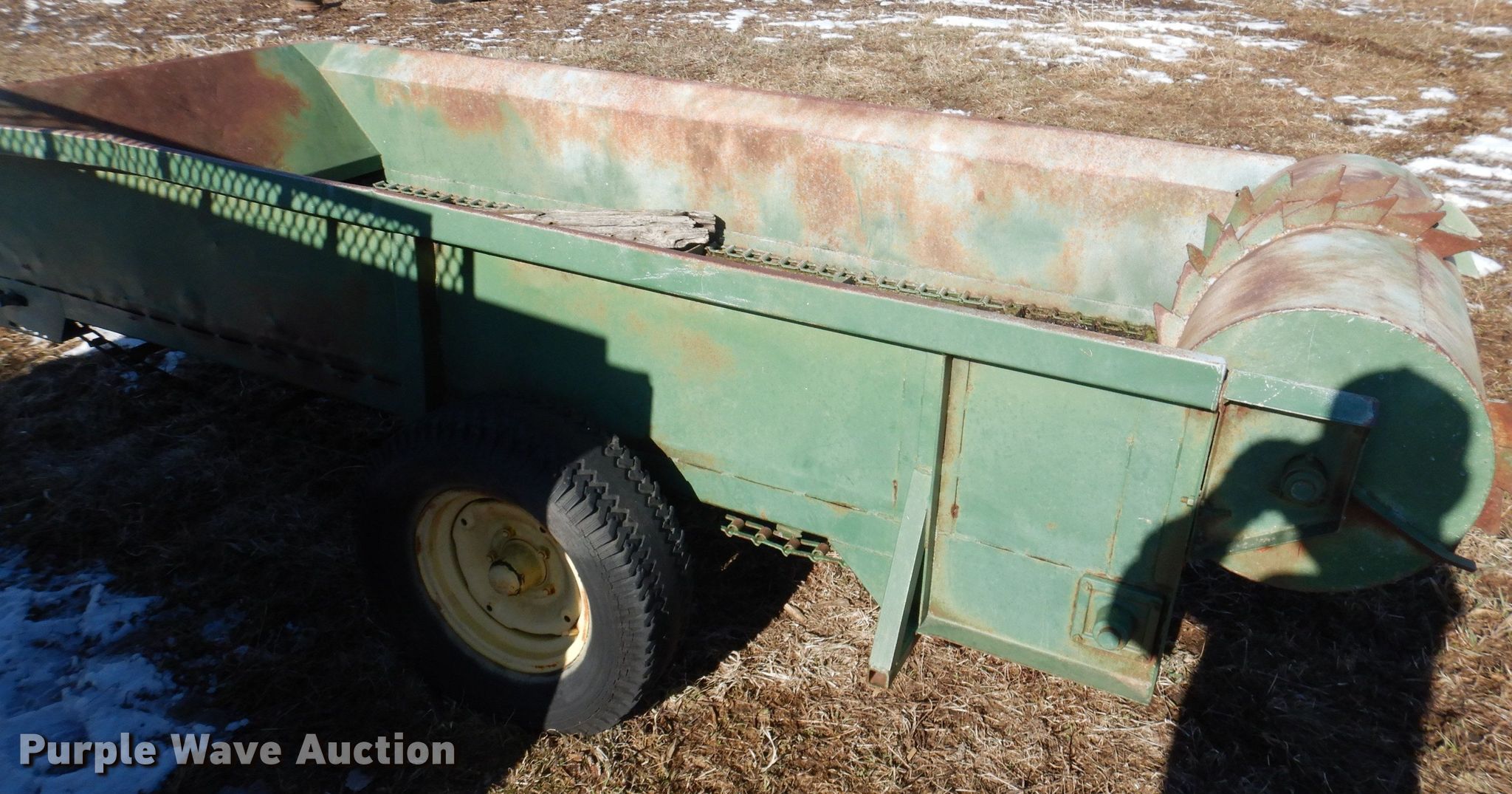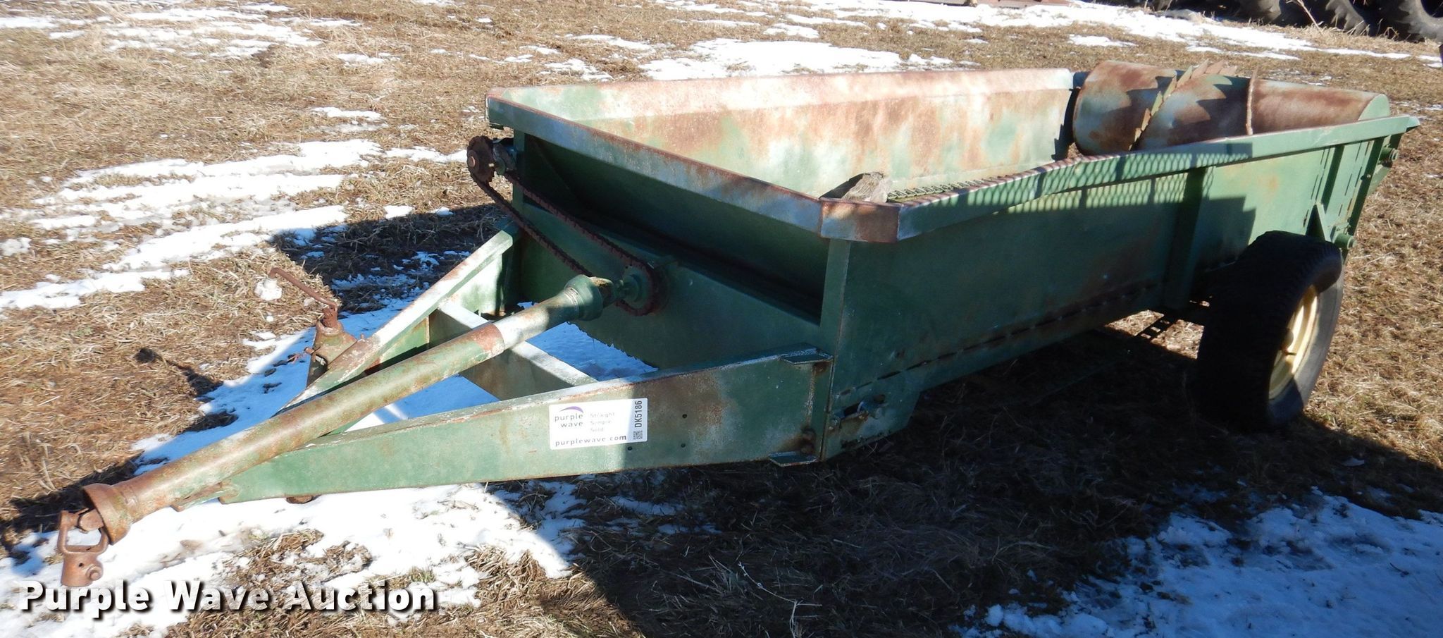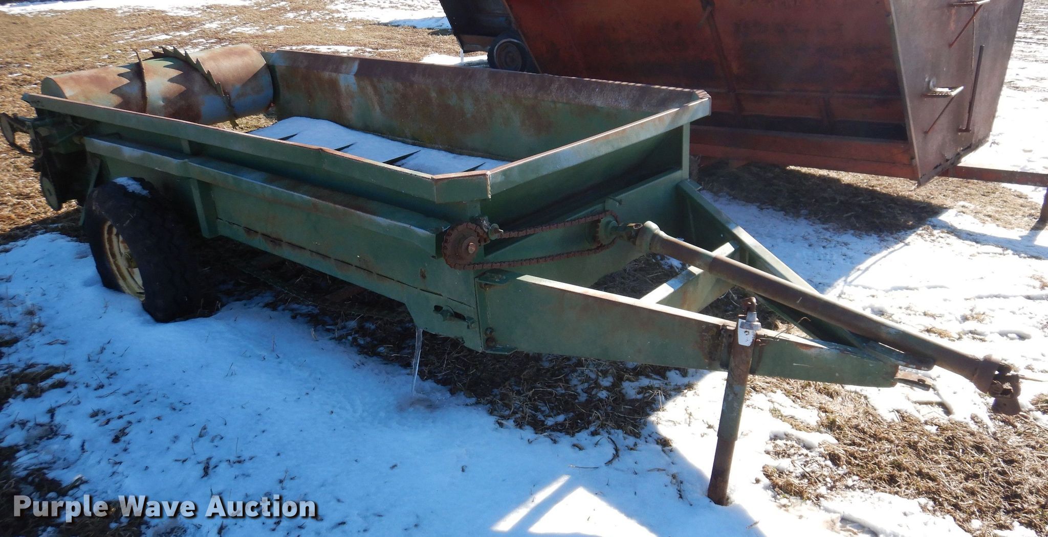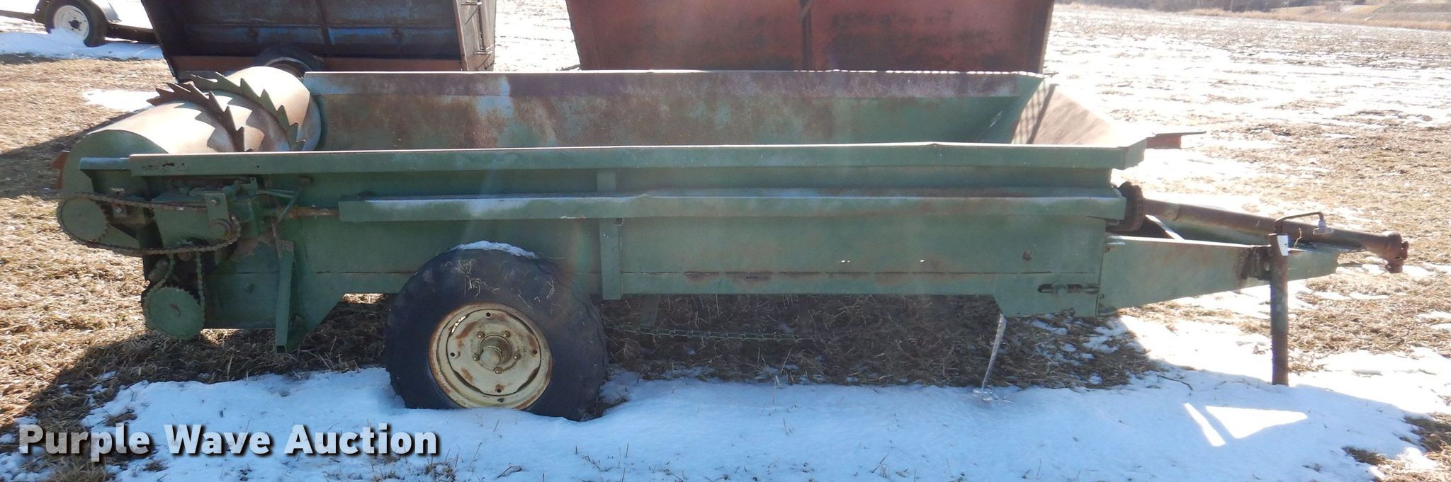 Purple Wave is selling a used Manure Spreader in Iowa. This item is a Manure spreader with the following: 10' L x 45" W, Side height: 18", Chain driven floor, Rear beaters: Horizontal, Quantity: 1, PTO: 540